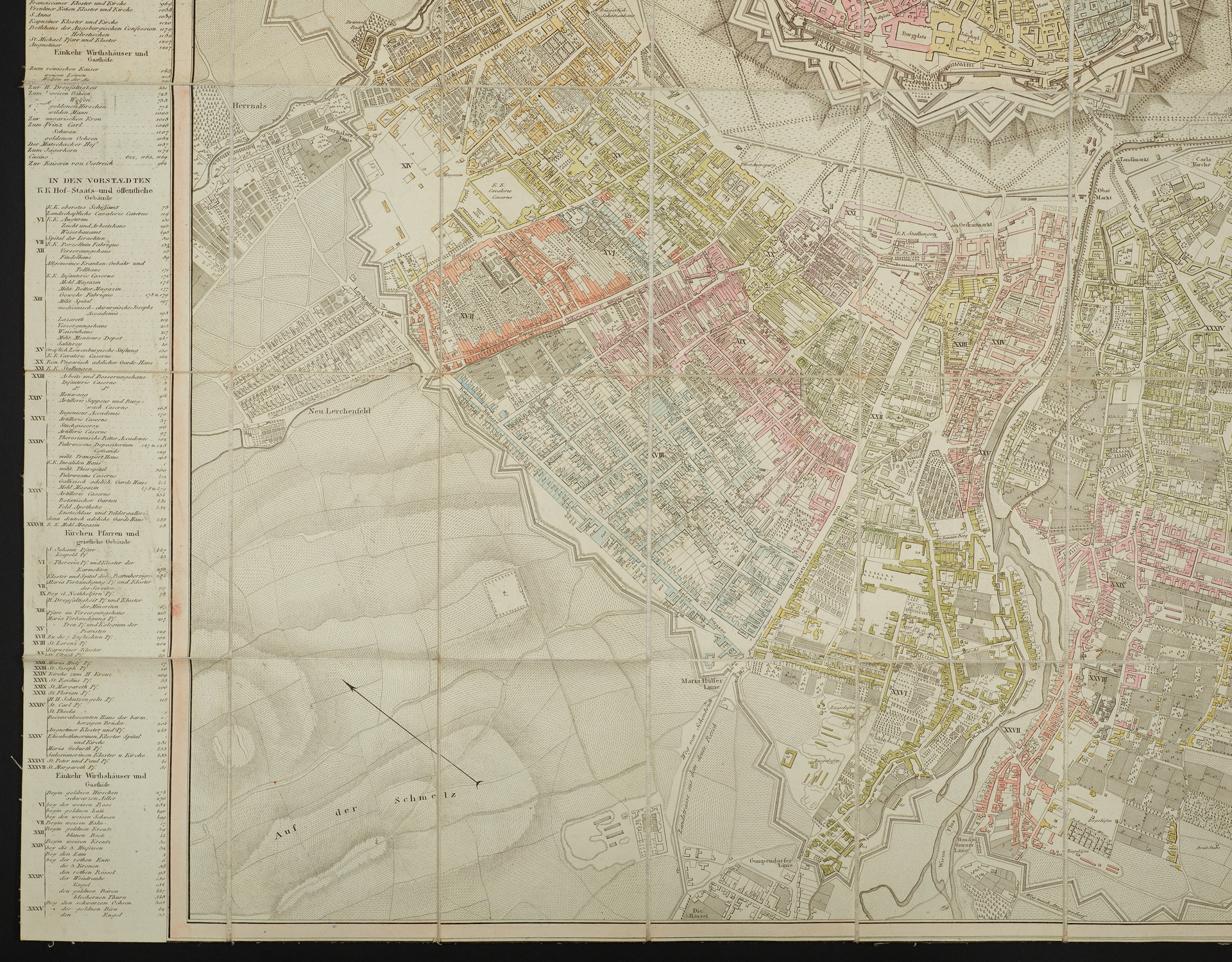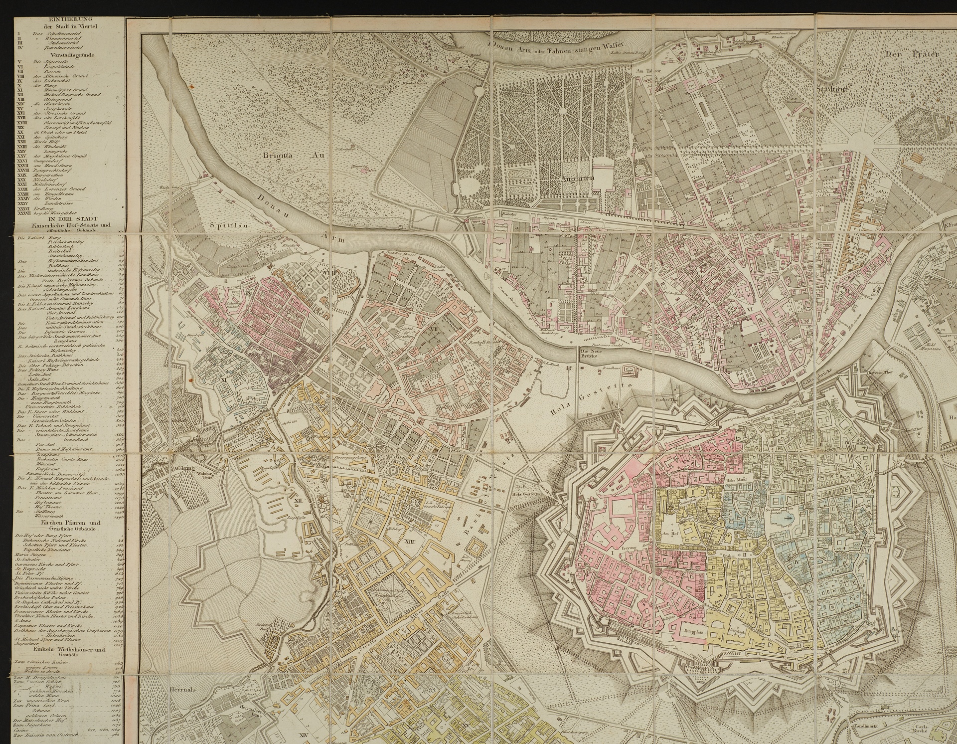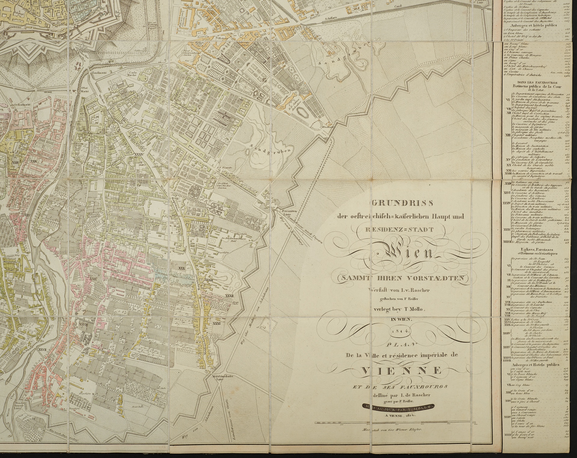 Karte der Stadt Wien. - Verfasst von I. v. Roscher, Kupferstich von F. Reisser, verlegt von Tranquillo Mollo, Wien, 1814
