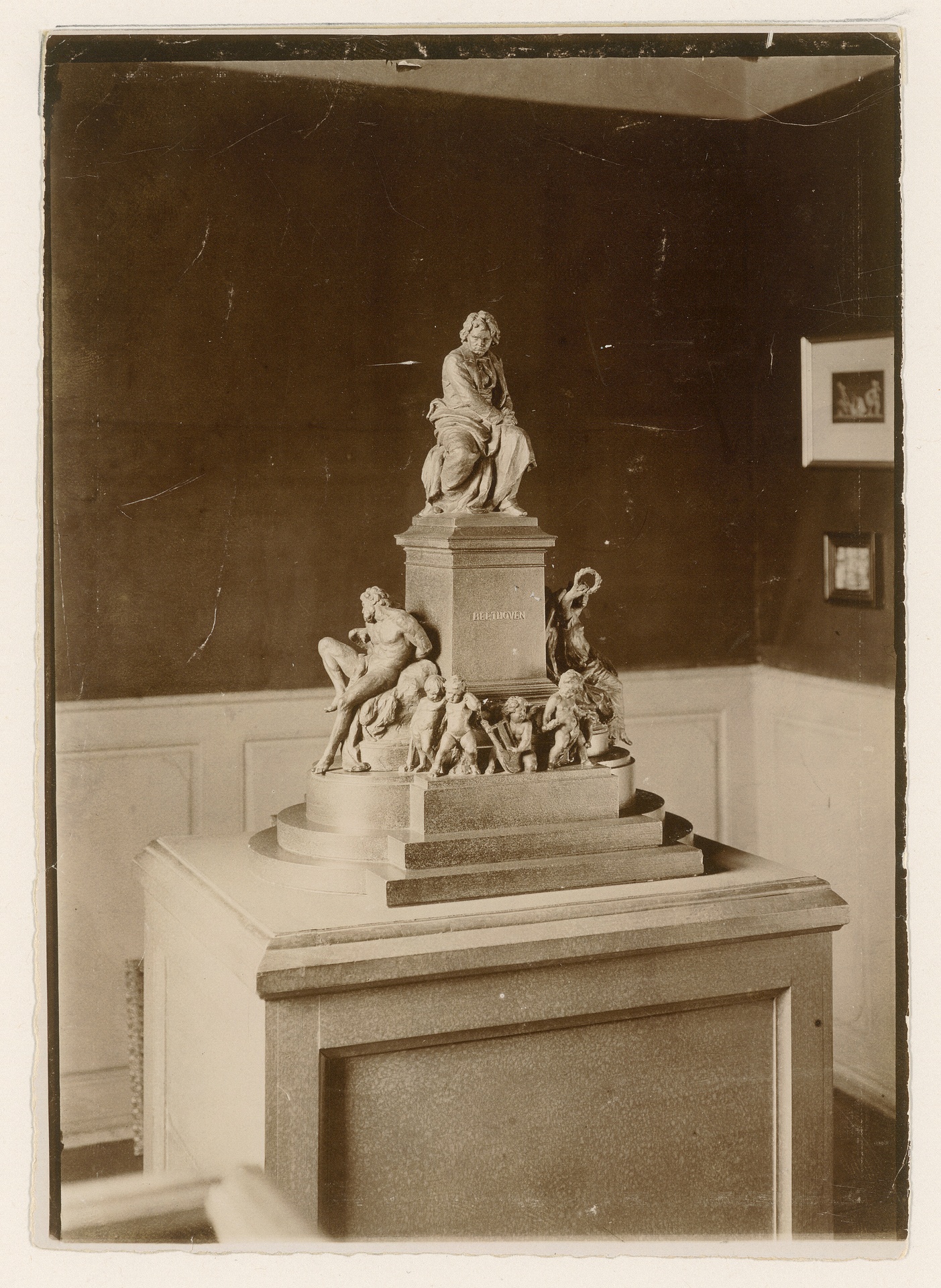 Modell des Wiener Beethoven-Denkmals in den Ausstellungsräumen des Beethoven-Hauses Bonn - Abguss des Originalmodells von Caspar von Zumbusch von 1878, Fotografie der Deutschen Photogravur Aktiengesellschaft, Siegburg, um 1910?
