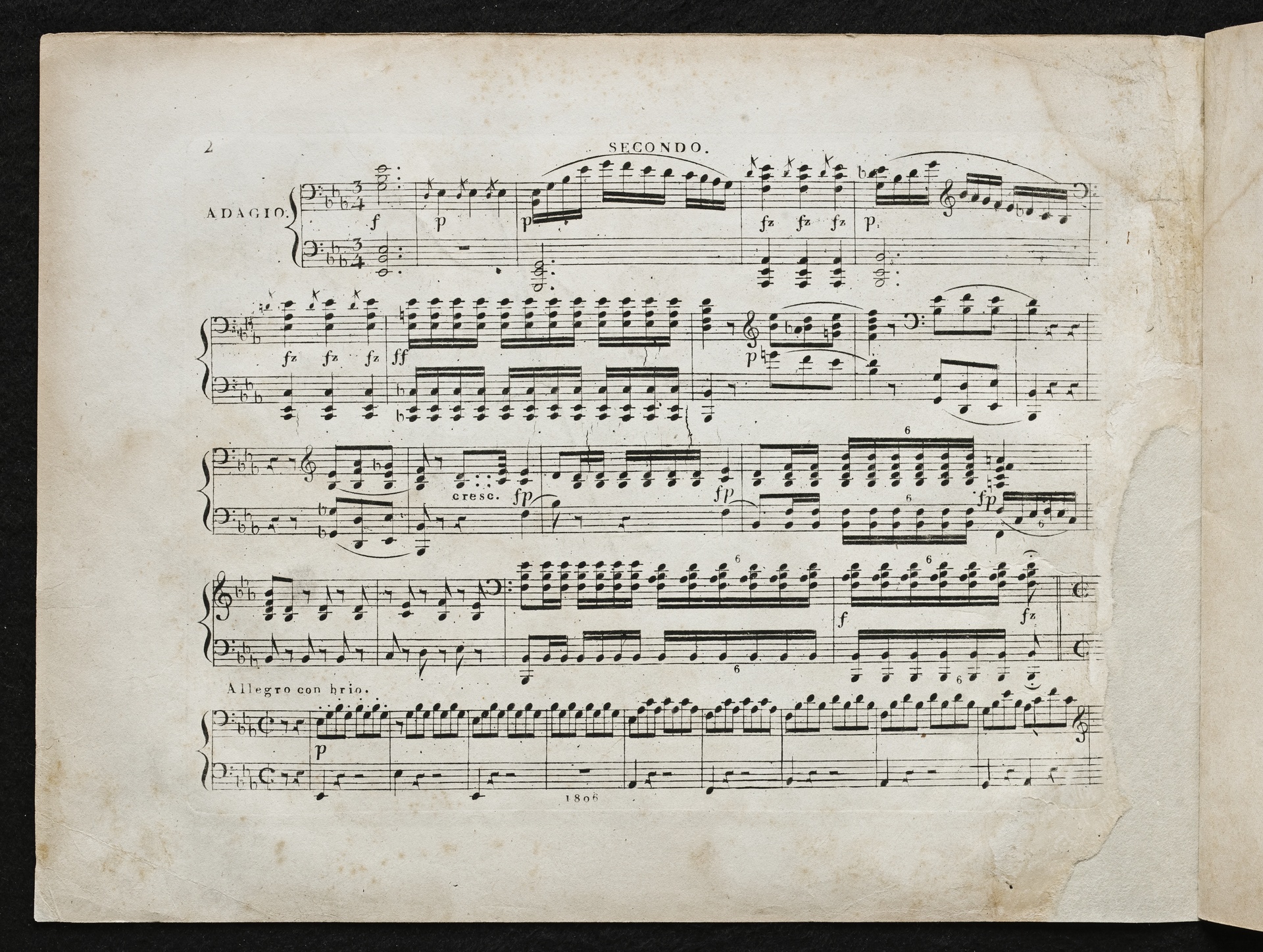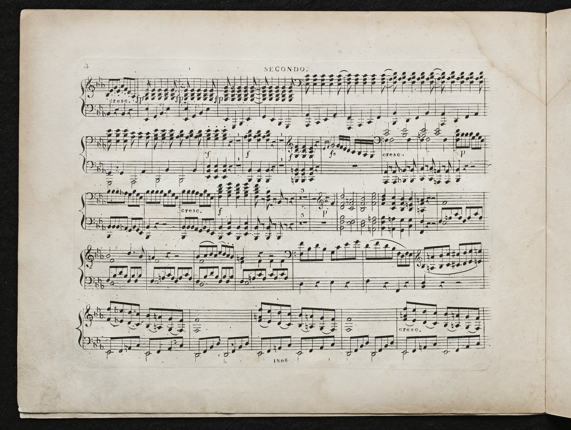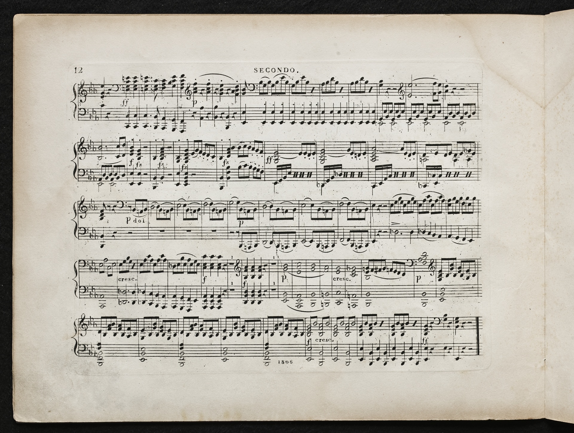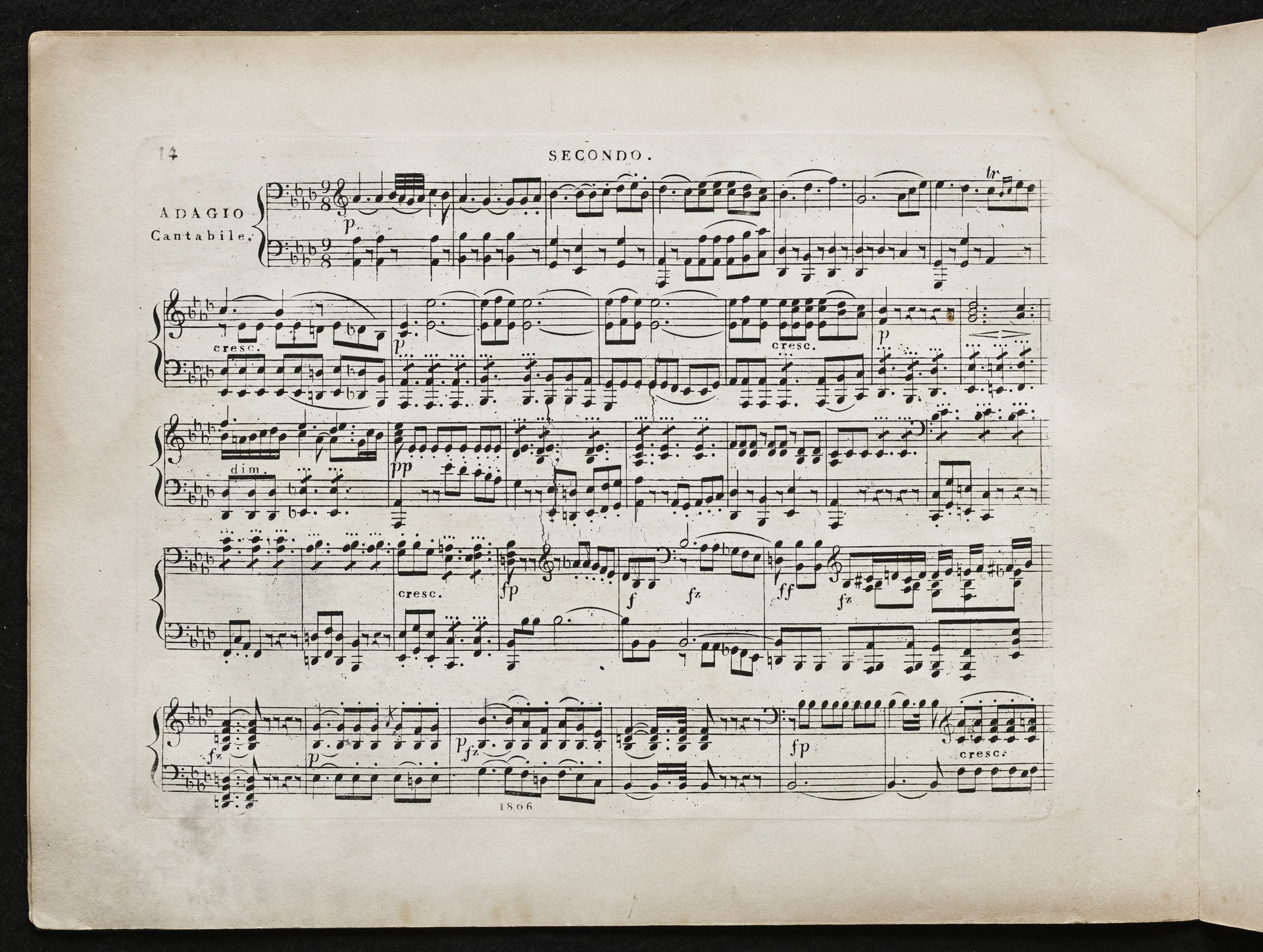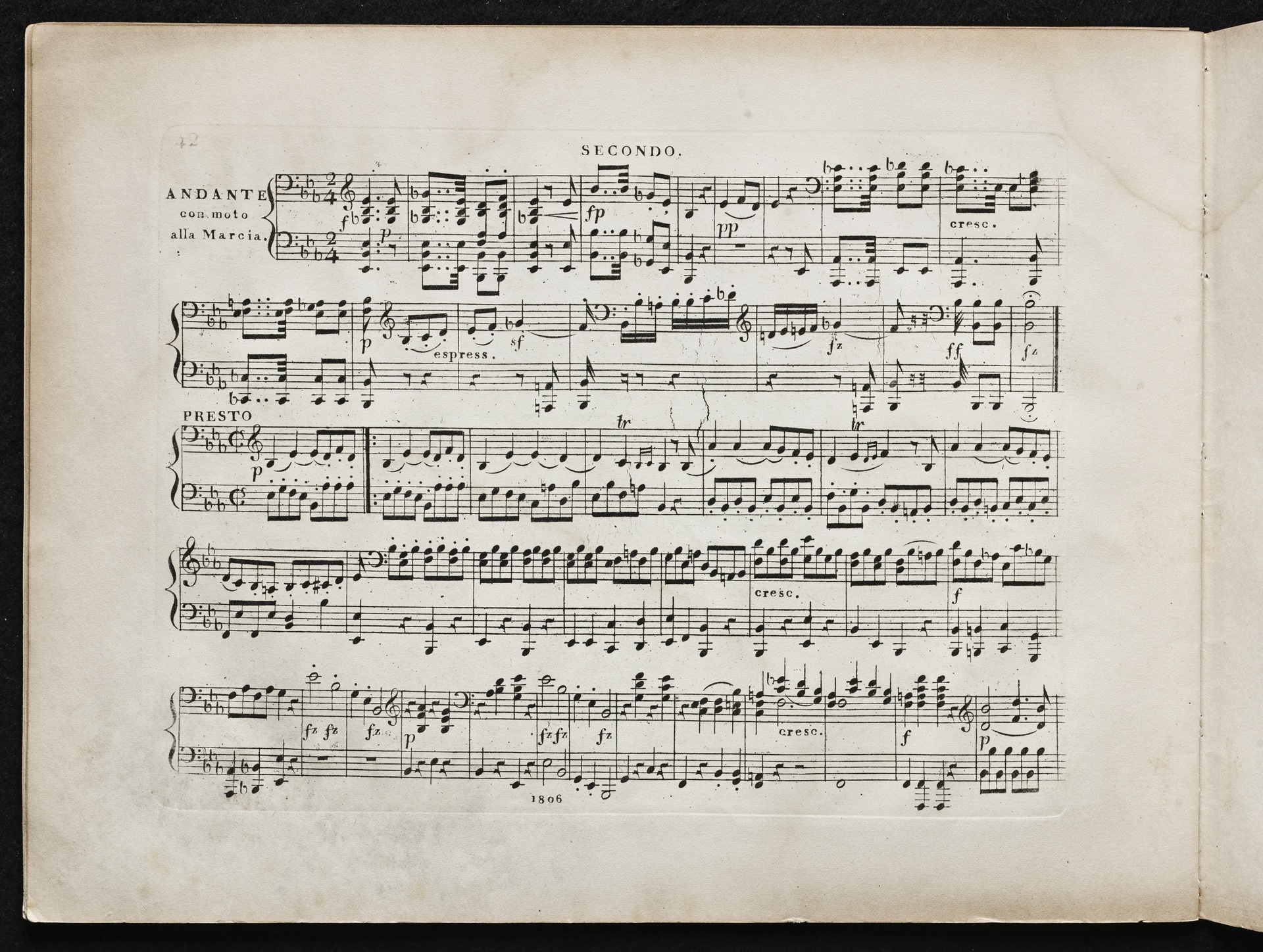 Ludwig van Beethoven, Septett für Violine, Viola, Klarinette, Horn, Fagott, Violoncello, Kontrabass (Es-Dur) op. 20, Bearbeitung für Klavier zu 4 Händen von Carl Czerny, Paez, 1806