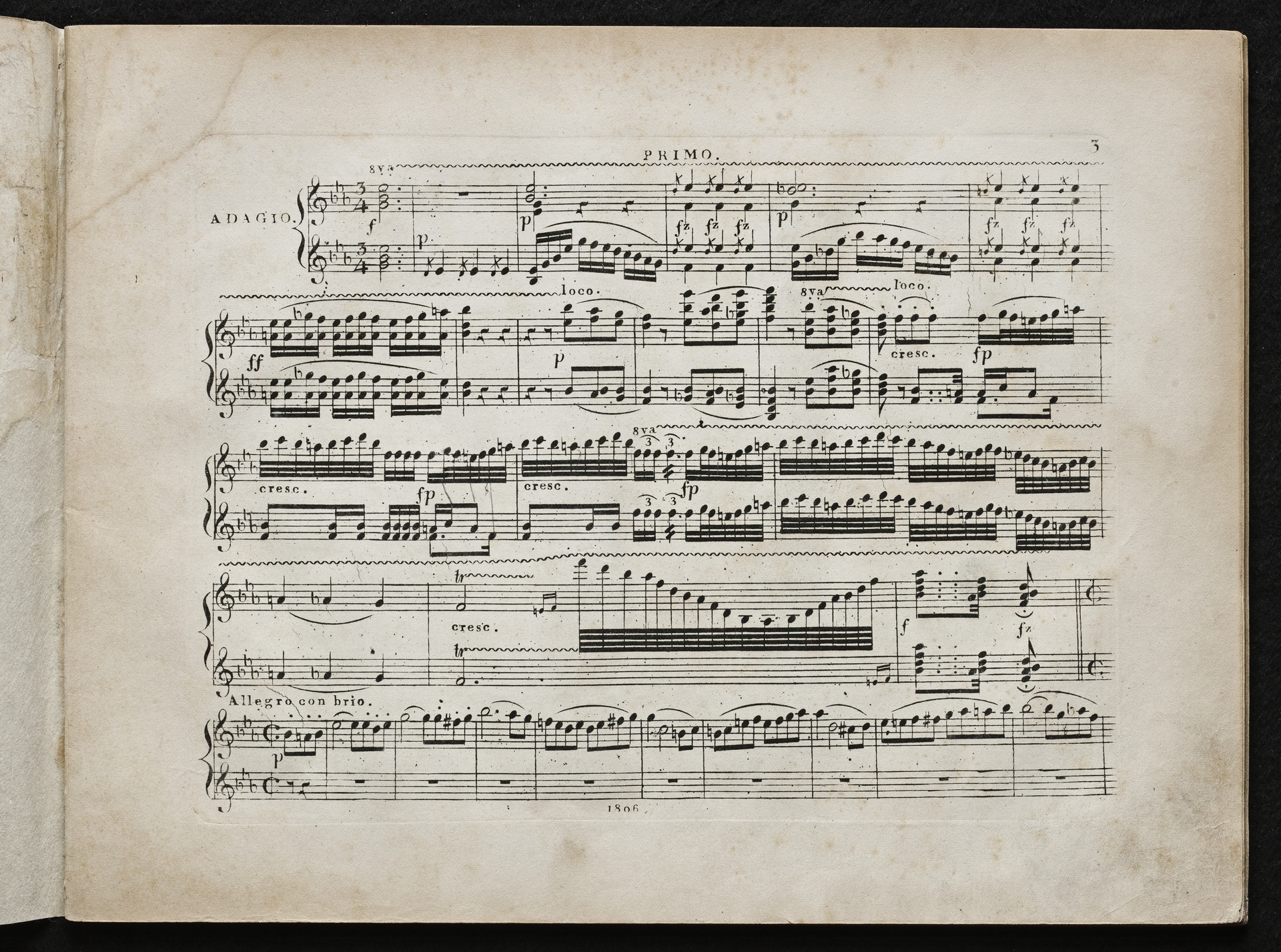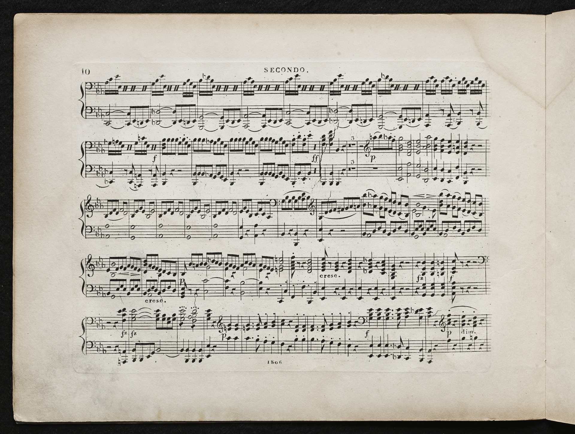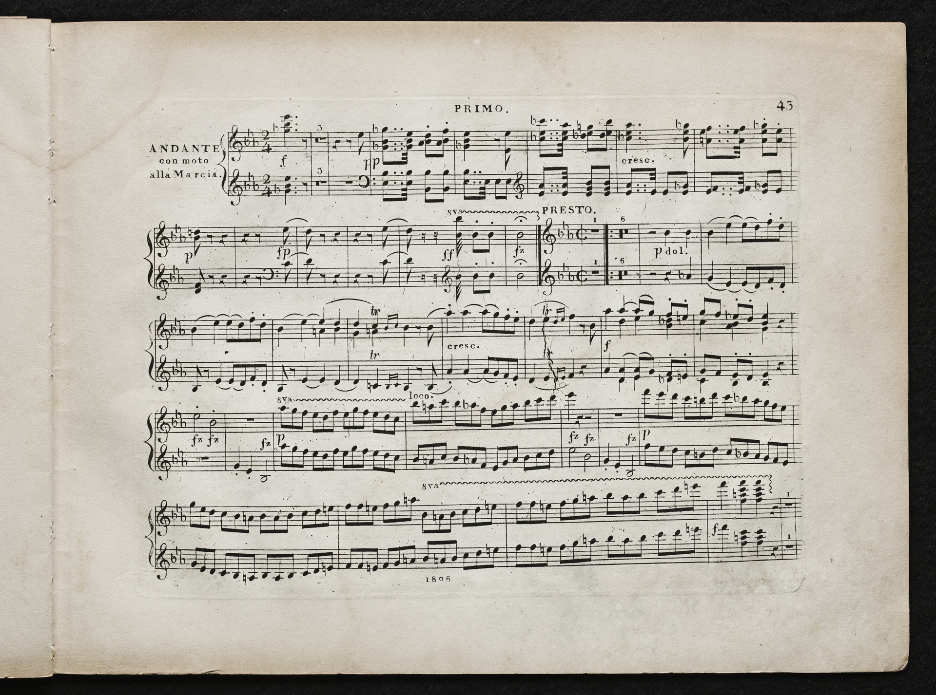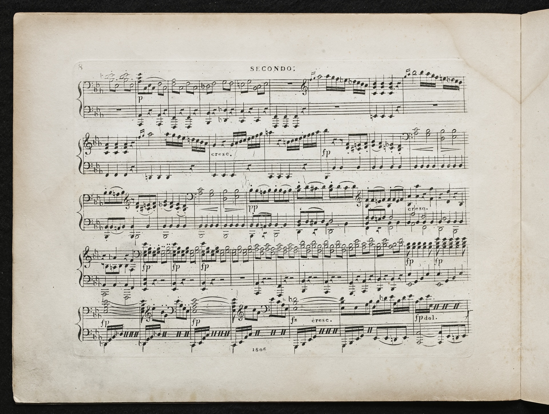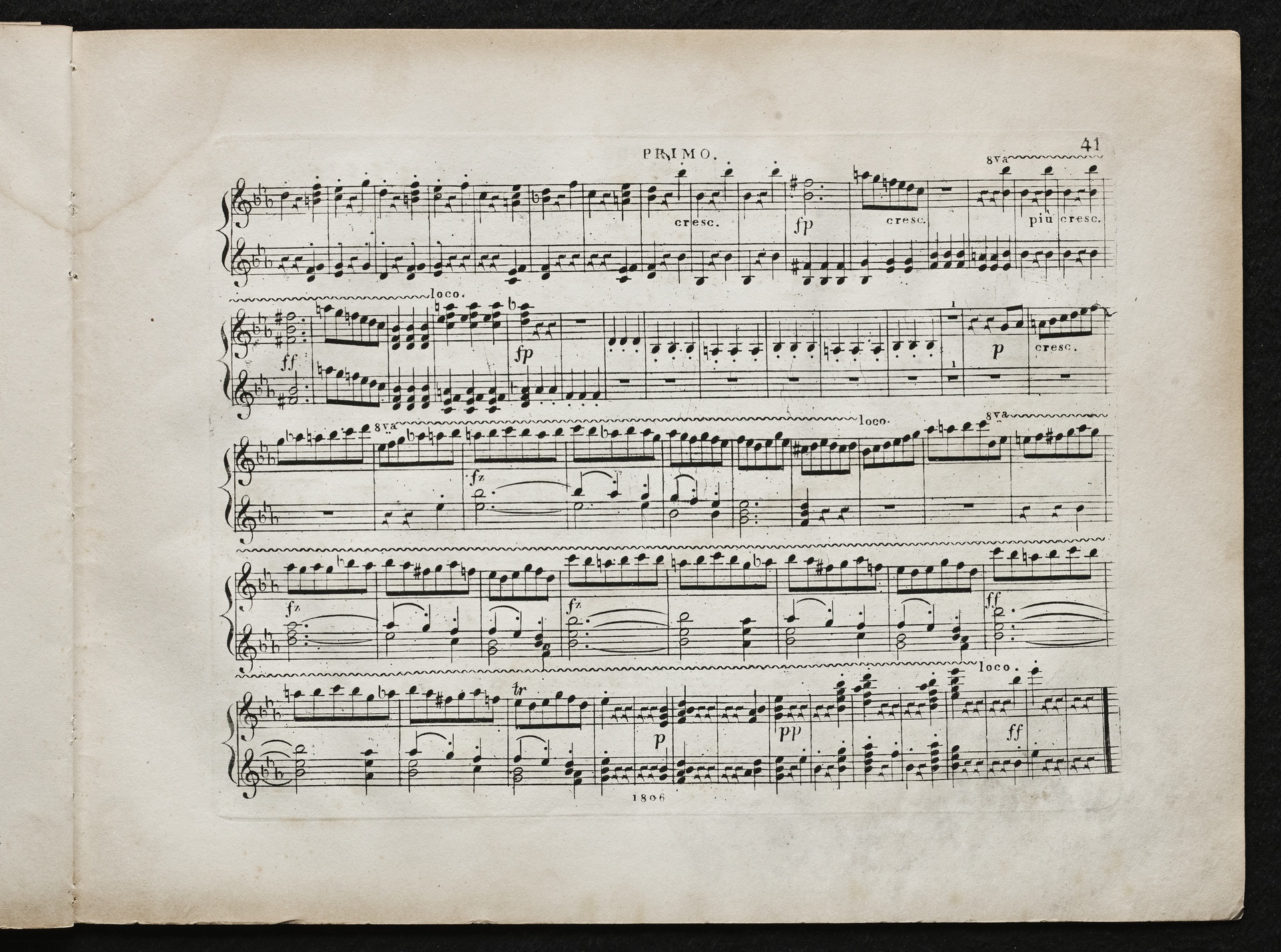 Ludwig van Beethoven, Septett für Violine, Viola, Klarinette, Horn, Fagott, Violoncello, Kontrabass (Es-Dur) op. 20, Bearbeitung für Klavier zu 4 Händen von Carl Czerny, Paez, 1806