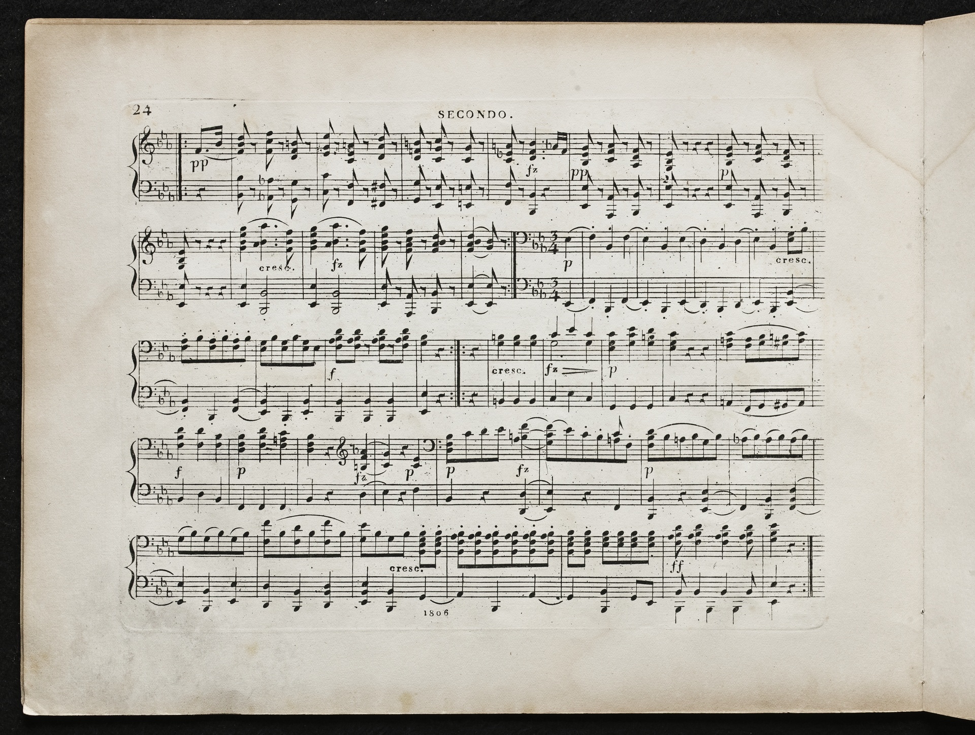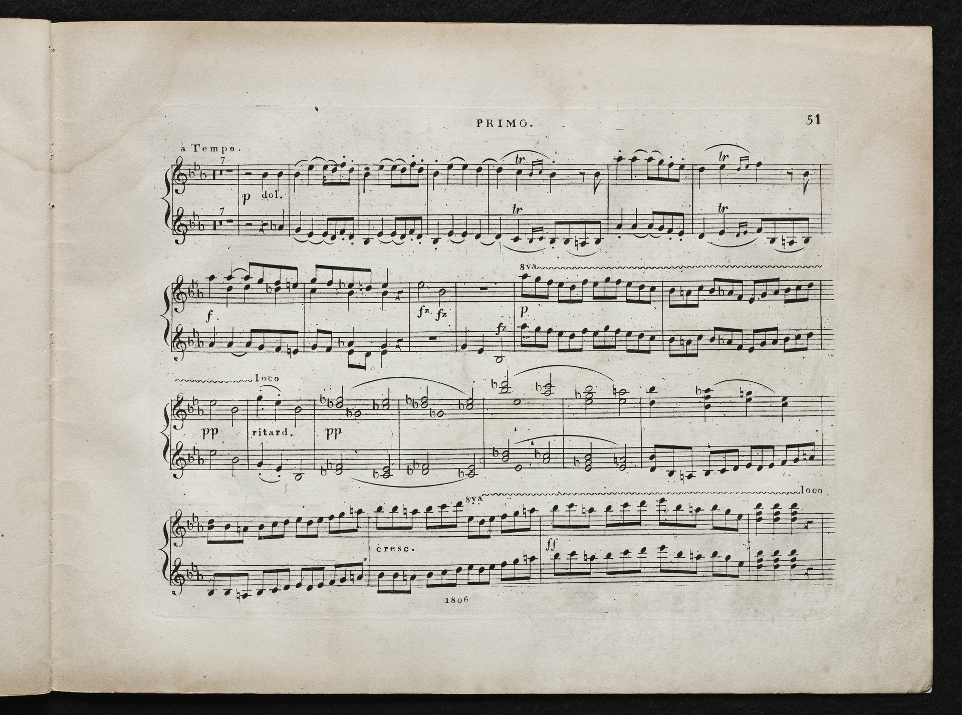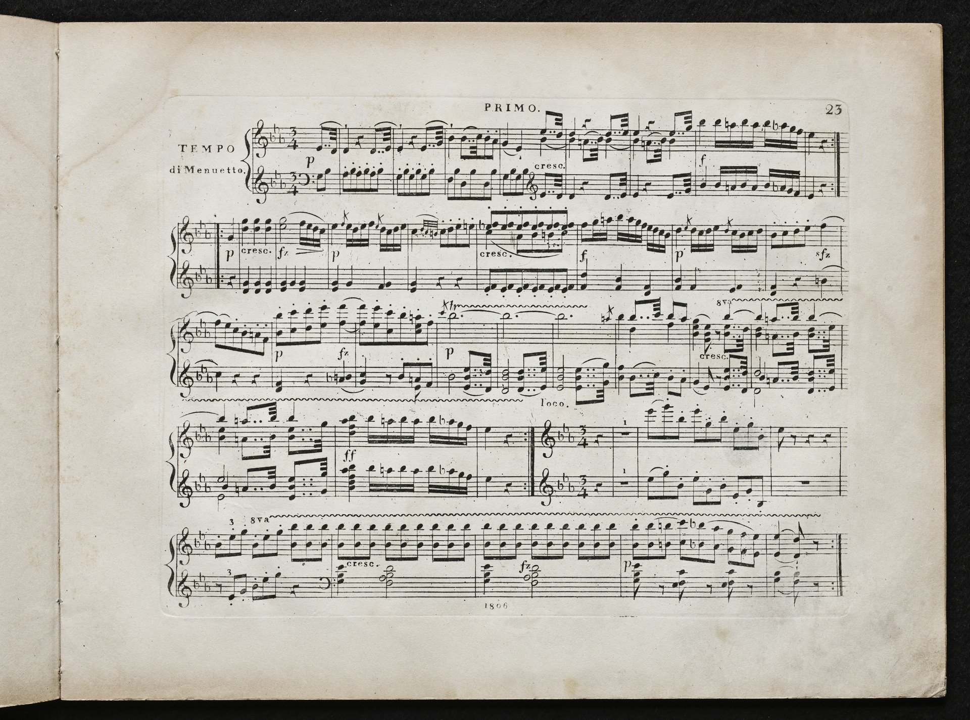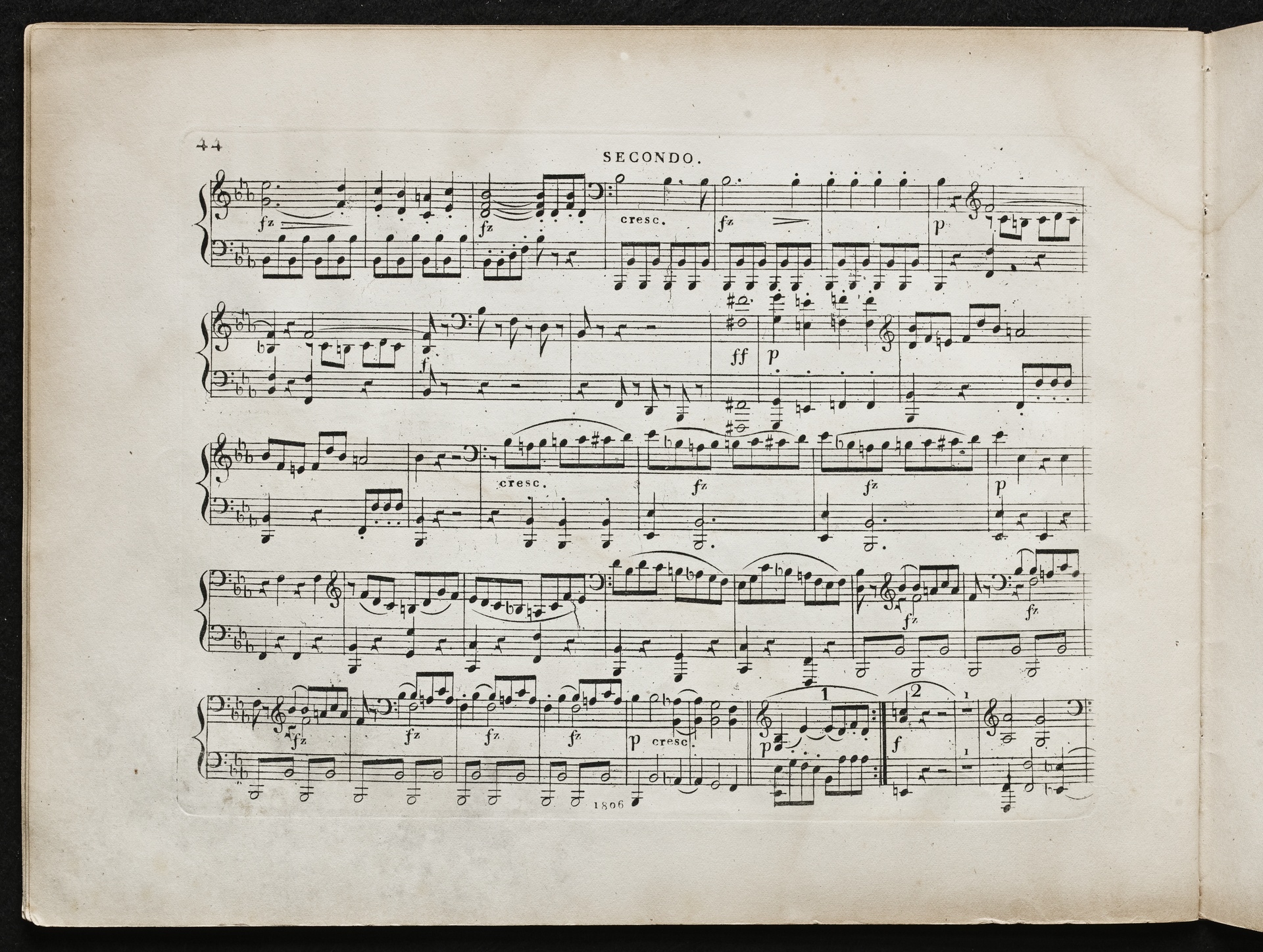 Ludwig van Beethoven, Septett für Violine, Viola, Klarinette, Horn, Fagott, Violoncello, Kontrabass (Es-Dur) op. 20, Bearbeitung für Klavier zu 4 Händen von Carl Czerny, Paez, 1806