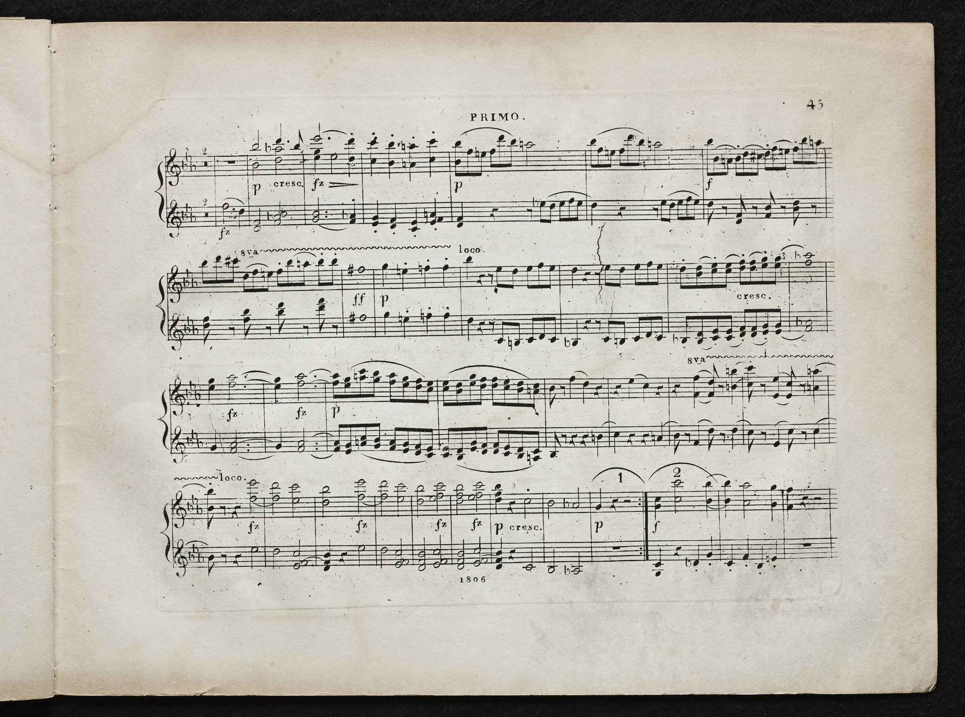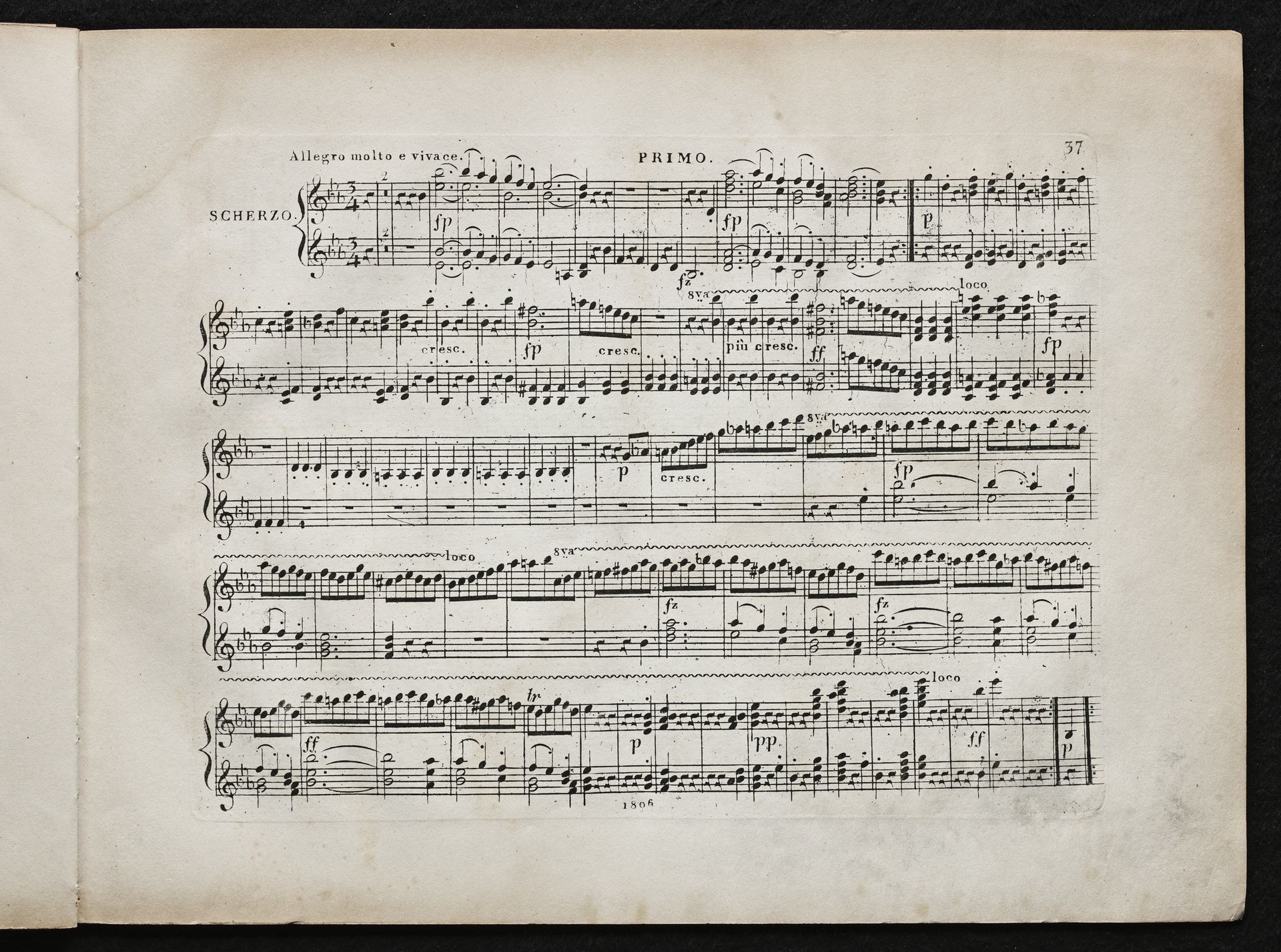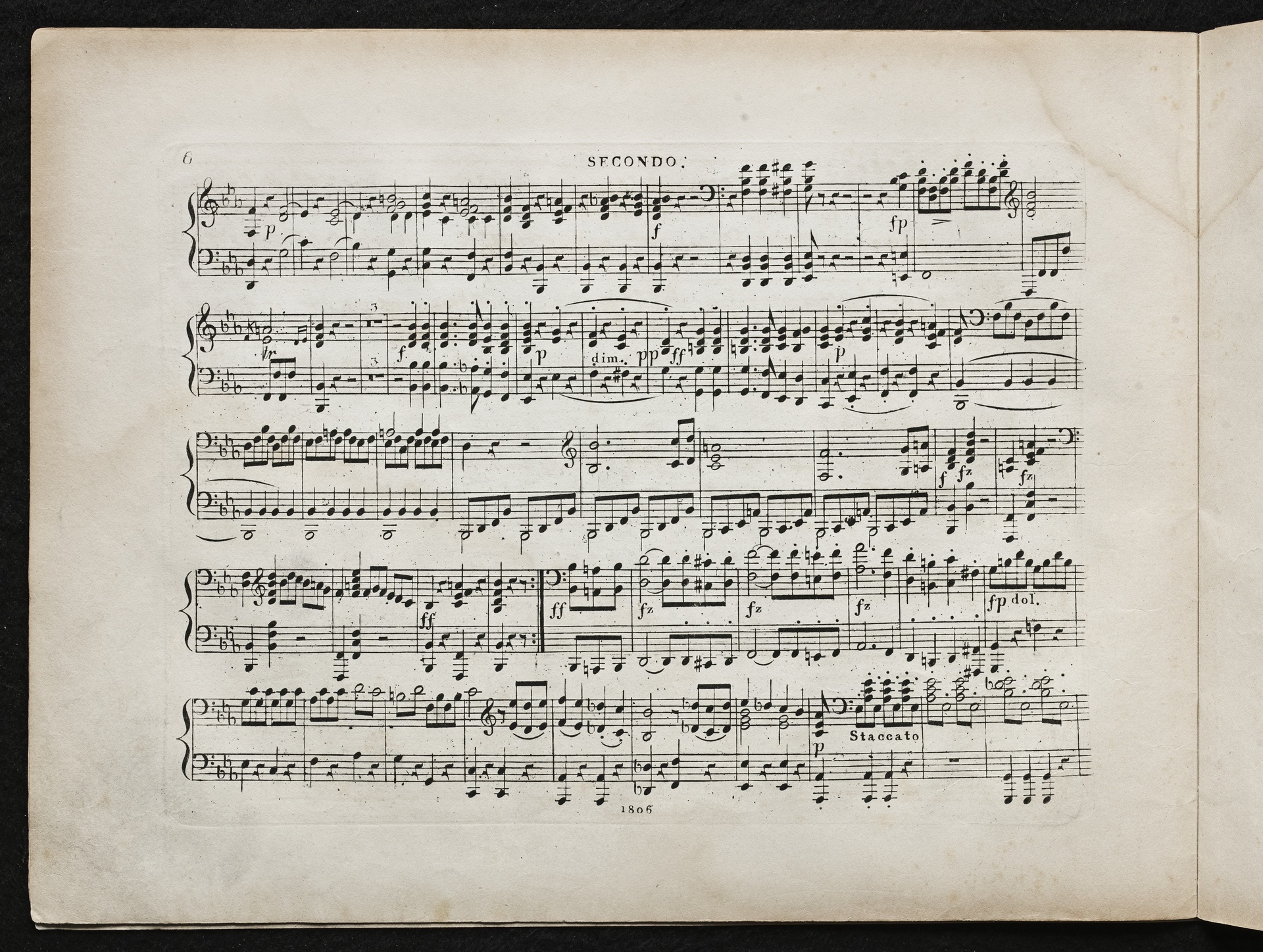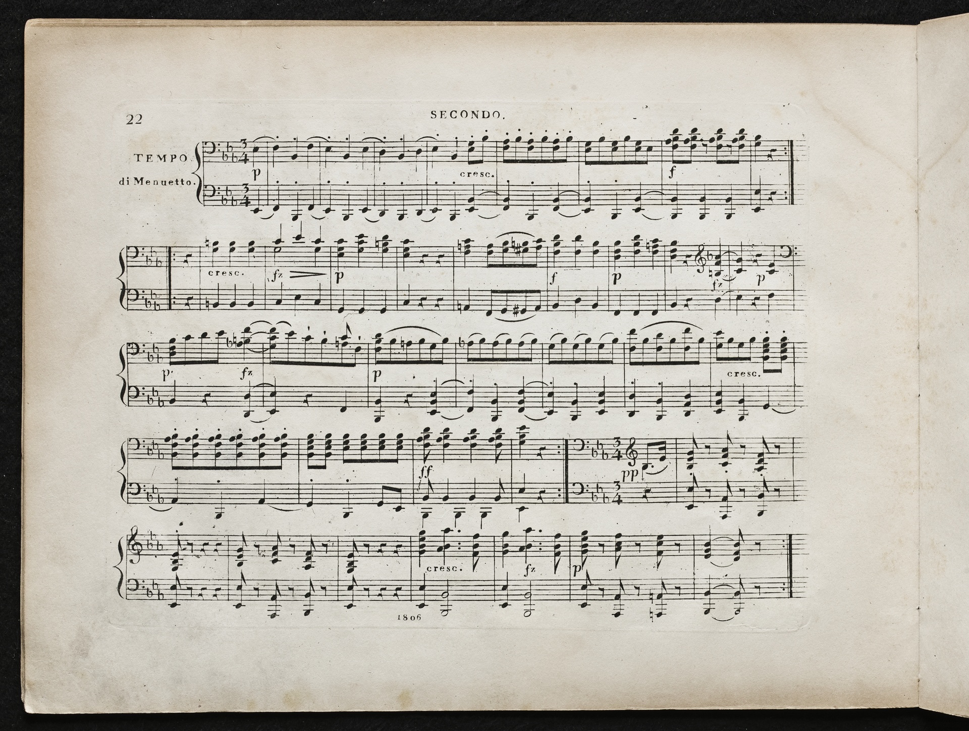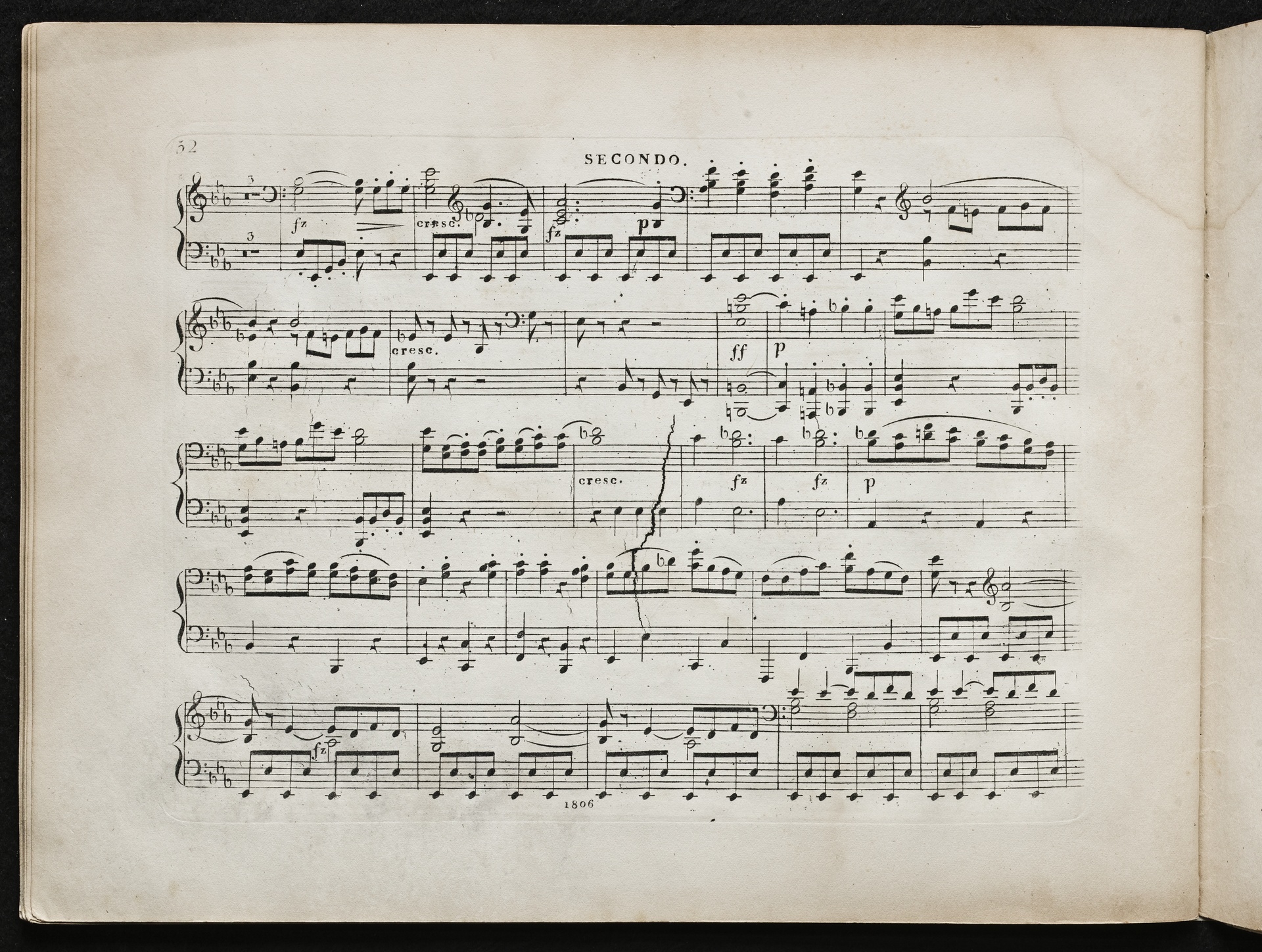 Ludwig van Beethoven, Septett für Violine, Viola, Klarinette, Horn, Fagott, Violoncello, Kontrabass (Es-Dur) op. 20, Bearbeitung für Klavier zu 4 Händen von Carl Czerny, Paez, 1806