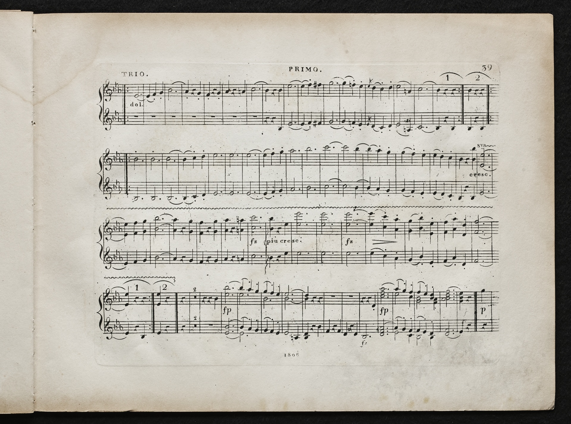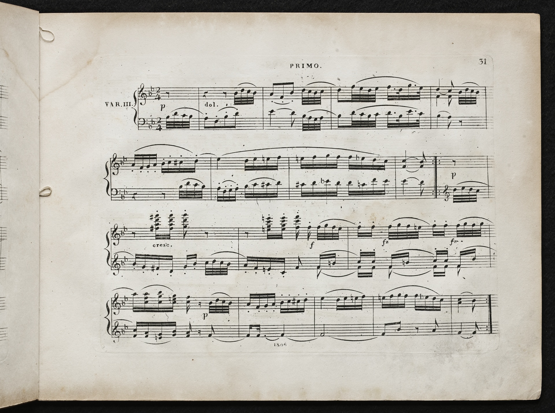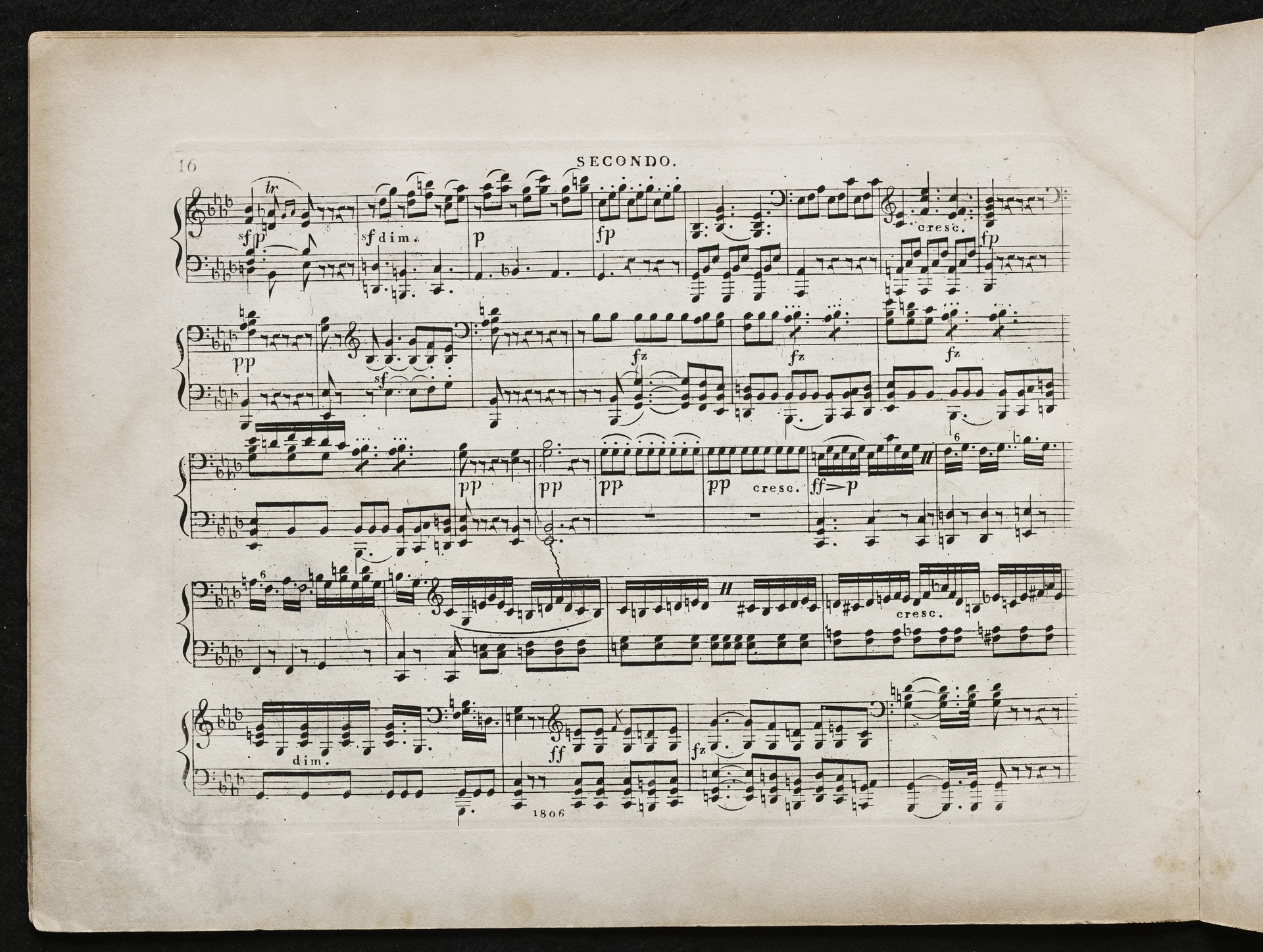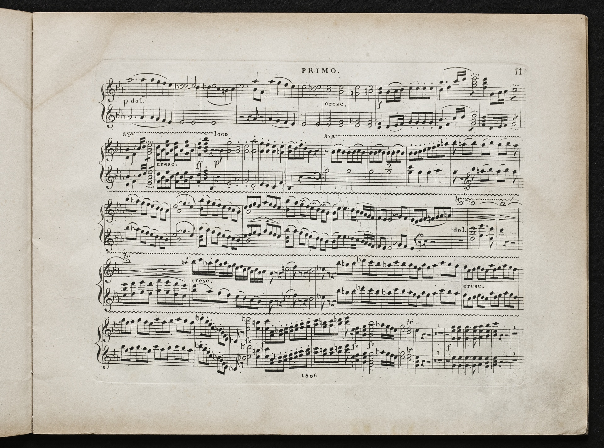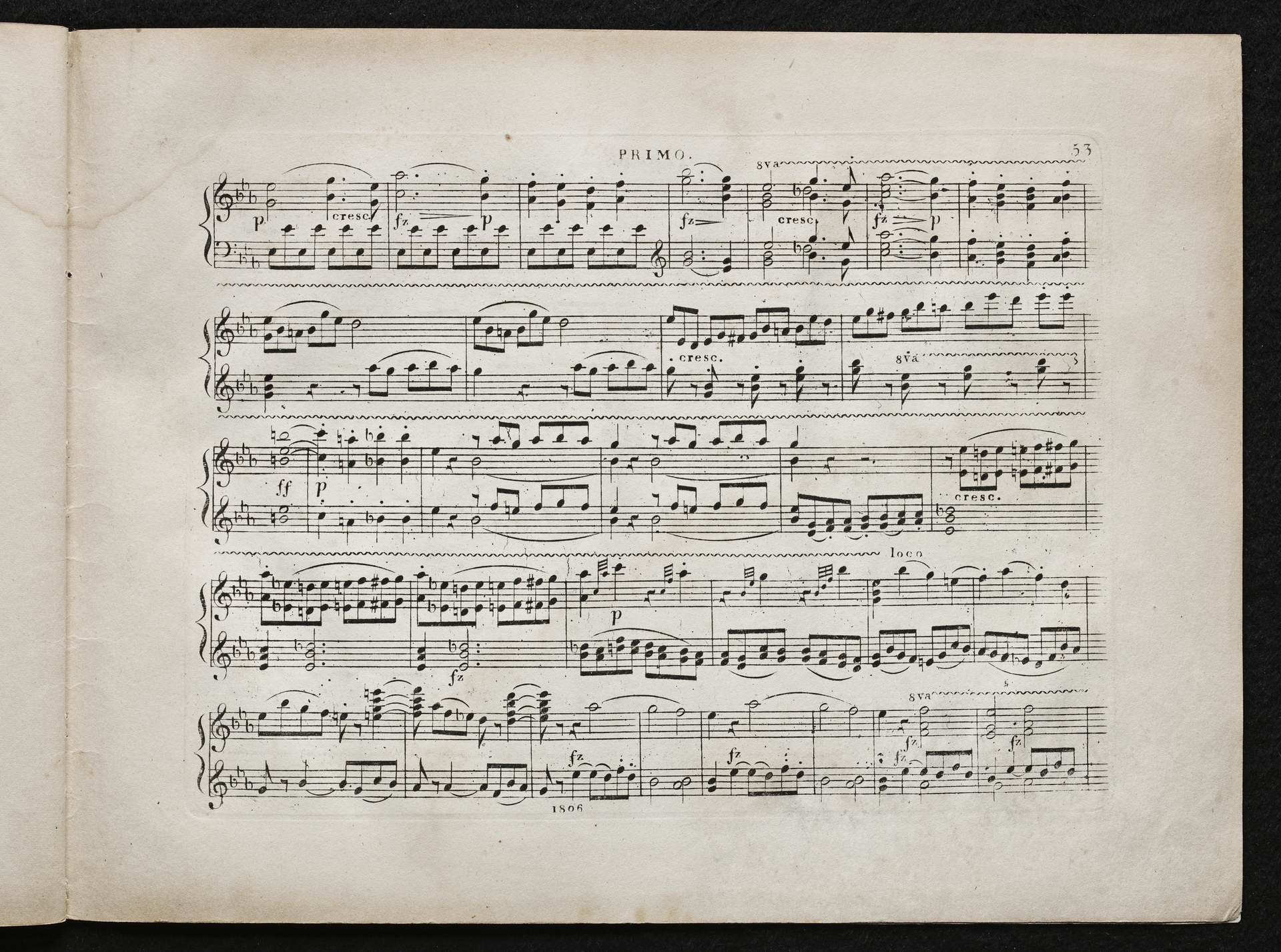 Ludwig van Beethoven, Septett für Violine, Viola, Klarinette, Horn, Fagott, Violoncello, Kontrabass (Es-Dur) op. 20, Bearbeitung für Klavier zu 4 Händen von Carl Czerny, Paez, 1806