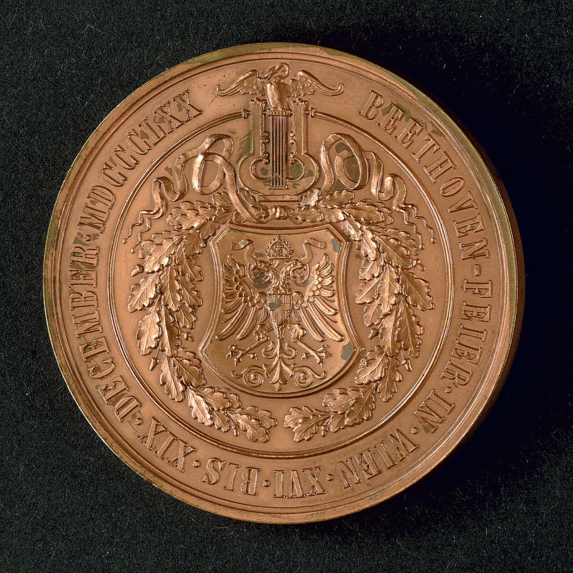 Gedenkmedaille zur Wiener Beethovenfeier 1870 - Bronzemedaille von Carl Radnitzky, unter Verwendung des Reliefs von Joseph Daniel Böhm von 1820, Wien, um 1870