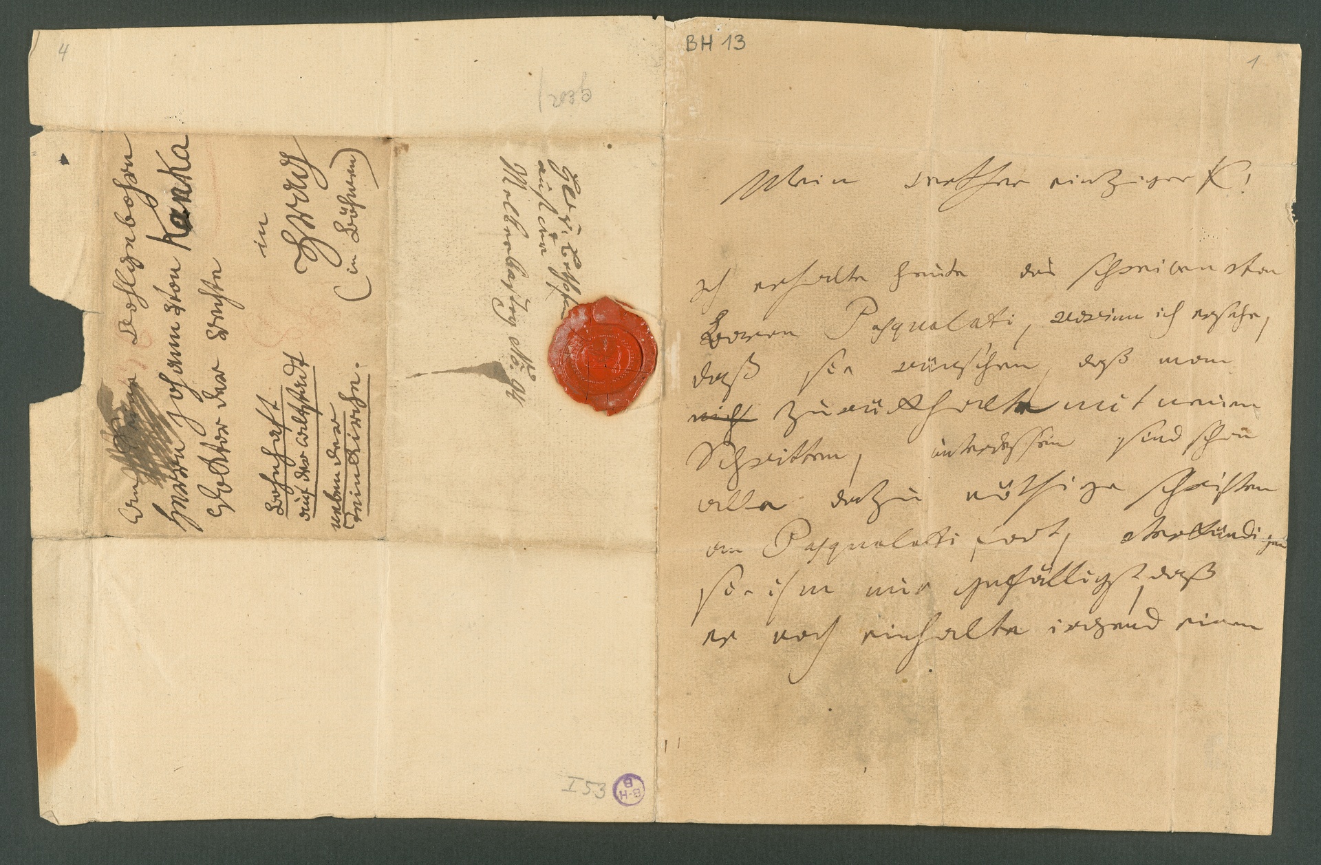 In dieser Angelegenheit ist auch der vorliegende Brief geschrieben, der sich auf ein nicht erhaltenes Schreiben von Pasqualati bezieht. Pasqualati, der sich neben dem Anwalt Kanka für Beethovens Belange einsetzte, hatte wohl von einer Klage abgeraten. Beethoven teilt nun mit, er habe die Klageschrift bereits abgeschickt, zunächst jedoch nur zur Durchsicht an Kanka, nicht an das Gericht. Auch würde eine bevorstehende Ratssitzung in Wien dieses Thema behandeln, eventuelle Resultate würde er mitteilen.