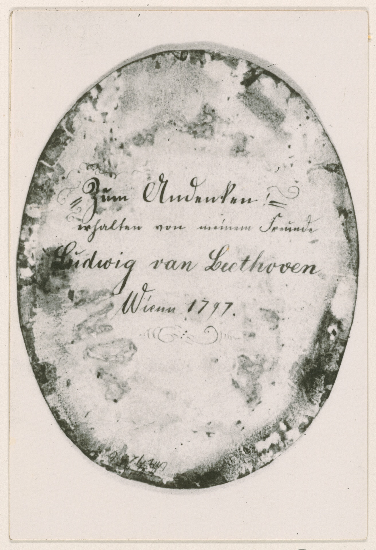 Bildnis eines unbekannten jungen Mannes (angeblich Ludwig van Beethoven), Rückseite - Fotografie eines anonymen Gemäldes