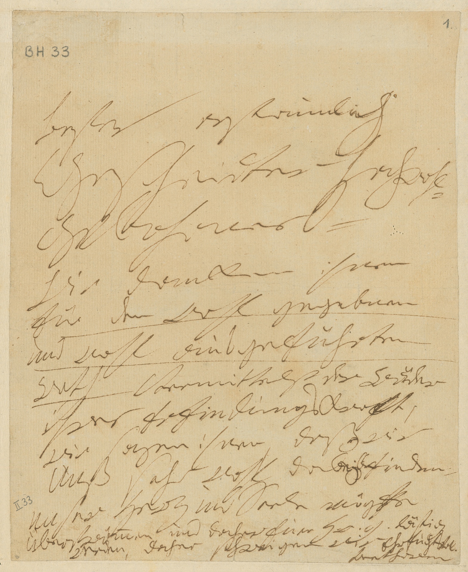 Überschwänglich und geschraubt dankt Beethoven für einen guten Rat. Der Brief ist in Beethovens charakteristischer wortspielerischer Sprache abgefasst, die er ihm nahe stehenden Personen gegenüber häufig verwendete. (J.R.)
