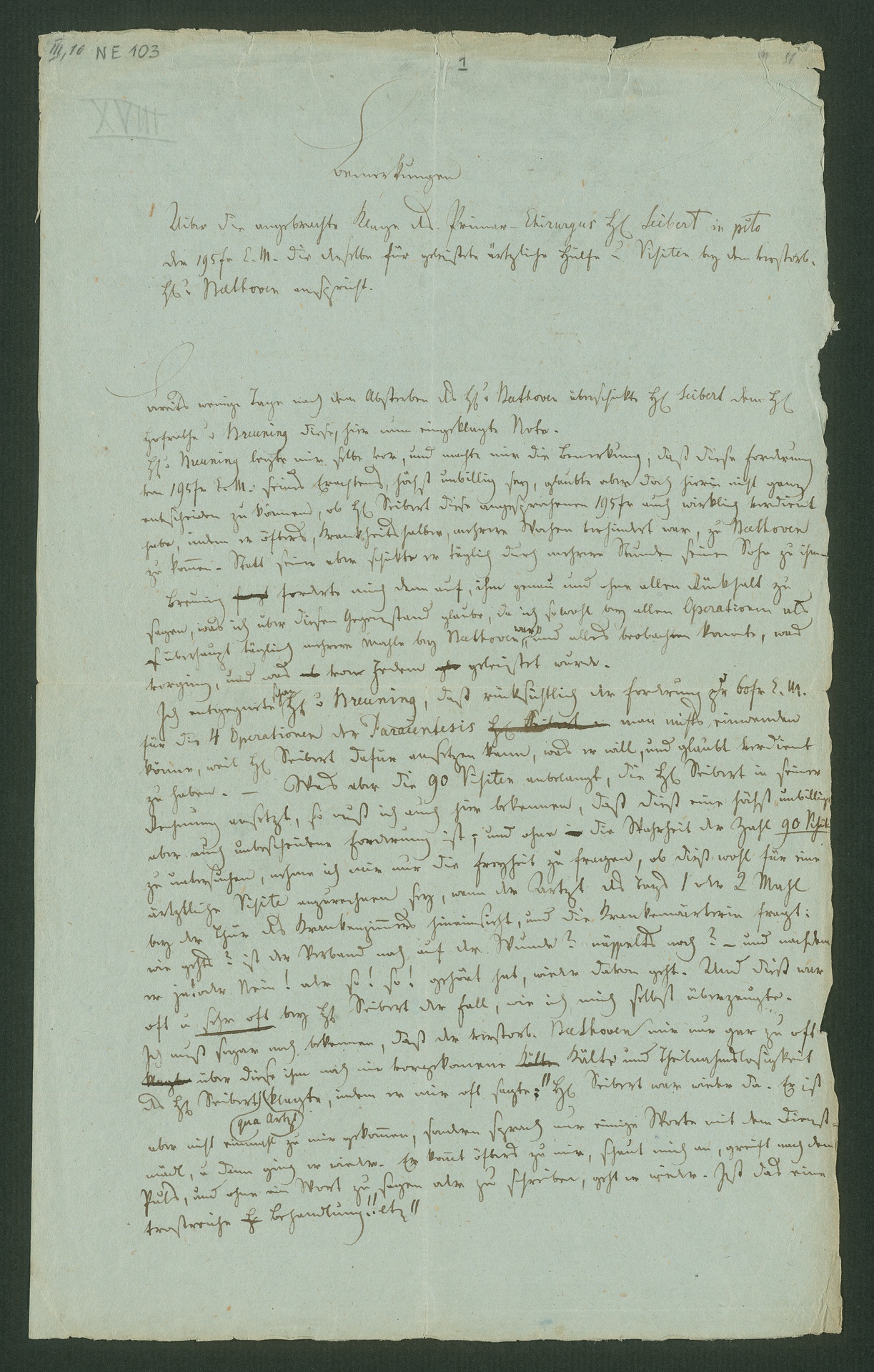 Anton Schindler, Erwiderung zu der von Johann Seibert gestellten Rechnung für die Behandlung Ludwig van Beethovens, Autograph, Erstschrift