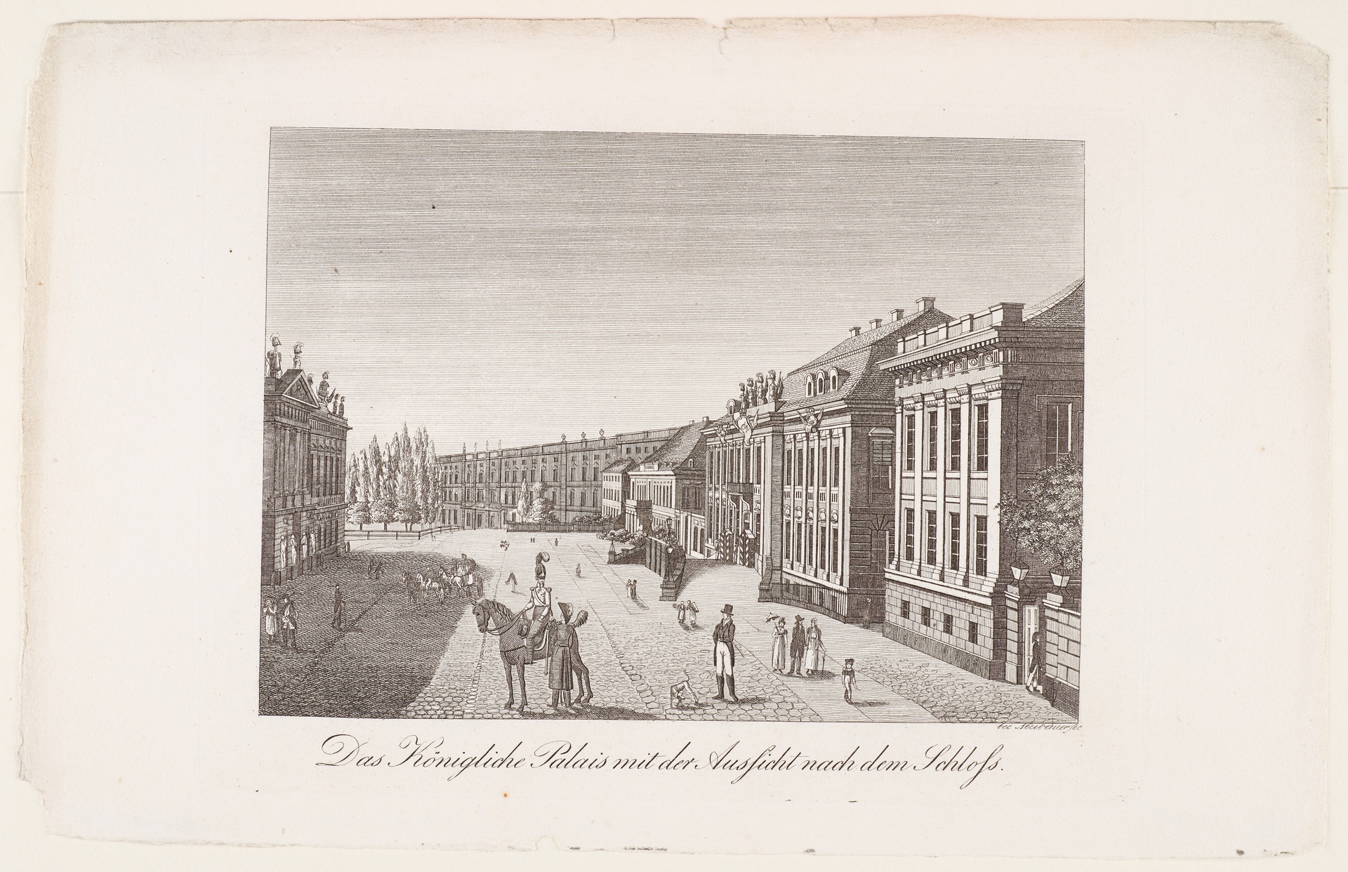 Blick auf das Kronprinzenpalais in Berlin - Stahlstich von Friedrich Ludwig Neubauer, Frankfurt a. M., 1832