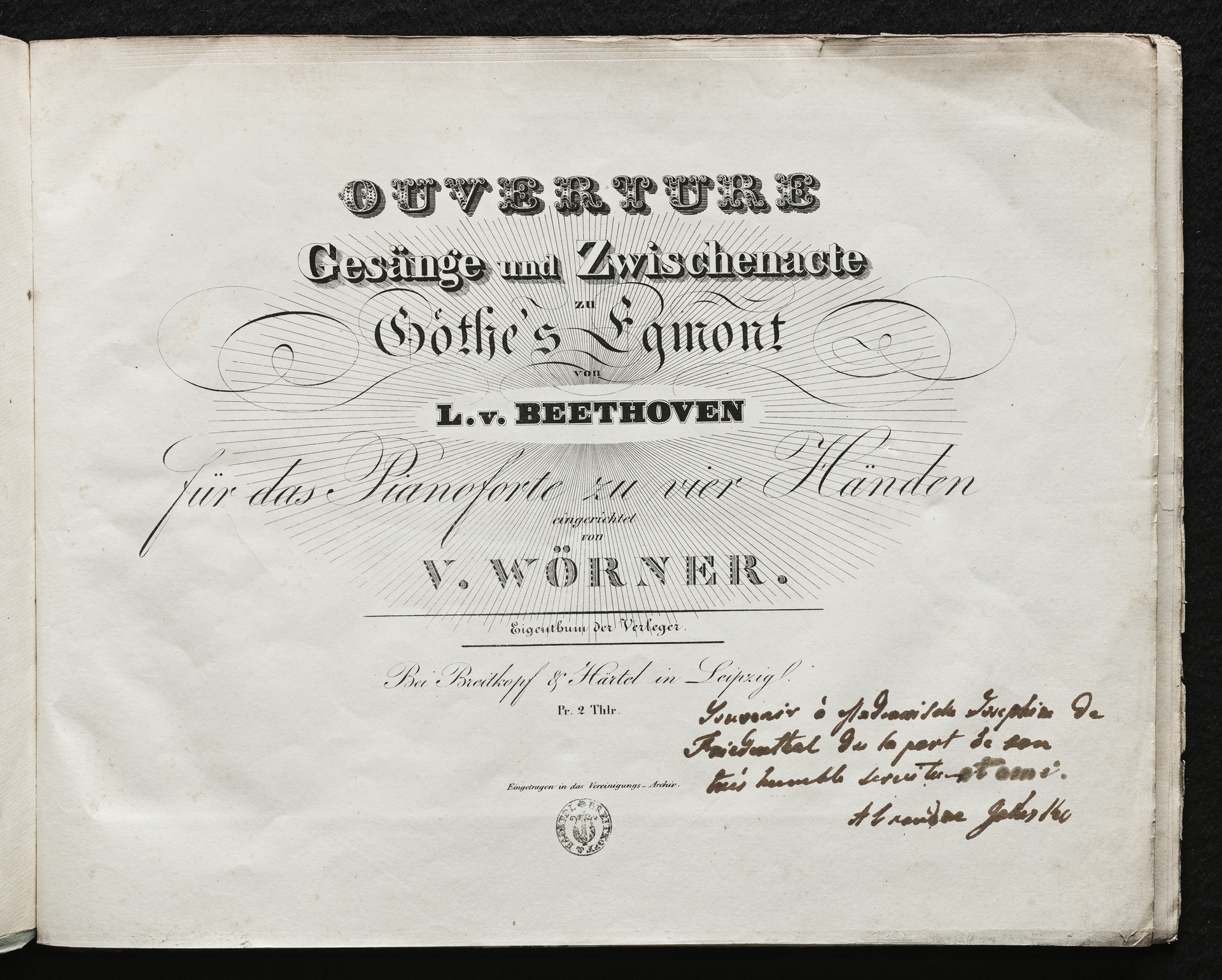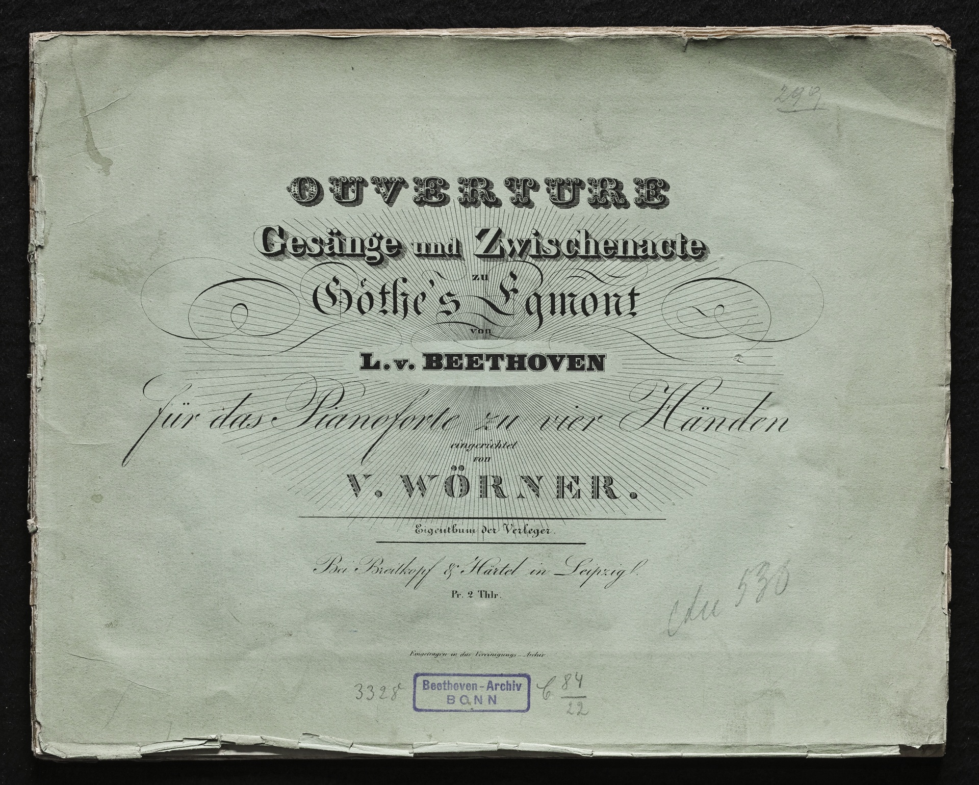 Ludwig van Beethoven, Musik zu Johann Wolfgang von Goethes Trauerspiel "Egmont" op. 84, Bearbeitung für Klavier zu 4 Händen von V. Wörner, Breitkopf und Härtel, 5476