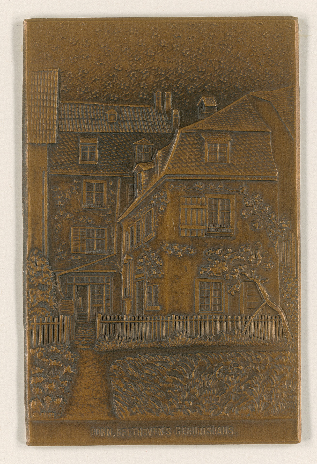 Beethoven-Haus, Bonn, Bonngasse, Gartenansicht, um 1900 - Prägedruck nach einer anonymen Zeichnung, erschienen bei Hermann A. Peters, Bonn, um 1910?
