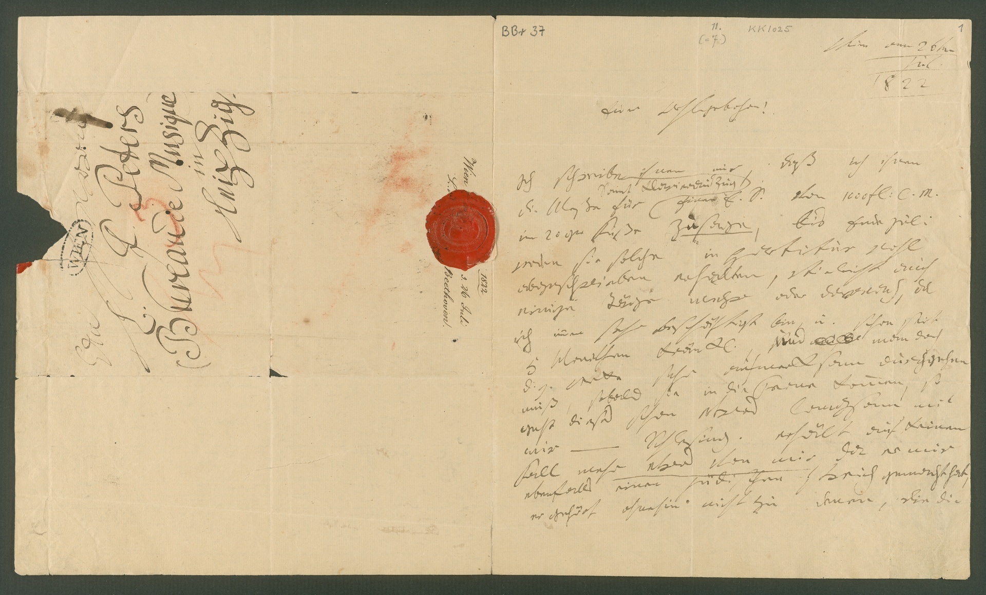 Ludwig van Beethoven, Brief an Carl Friedrich Peters in Leipzig, Wien, 26. Juni 1822, Autograph