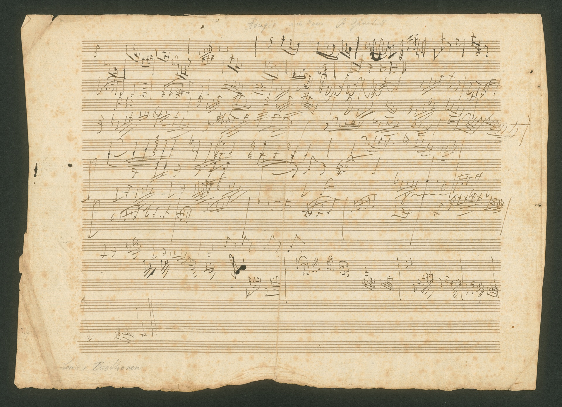 Ludwig van Beethoven, Skizzenblatt zum Streichquartett op. 18,6 und anderen Werken, Autograph