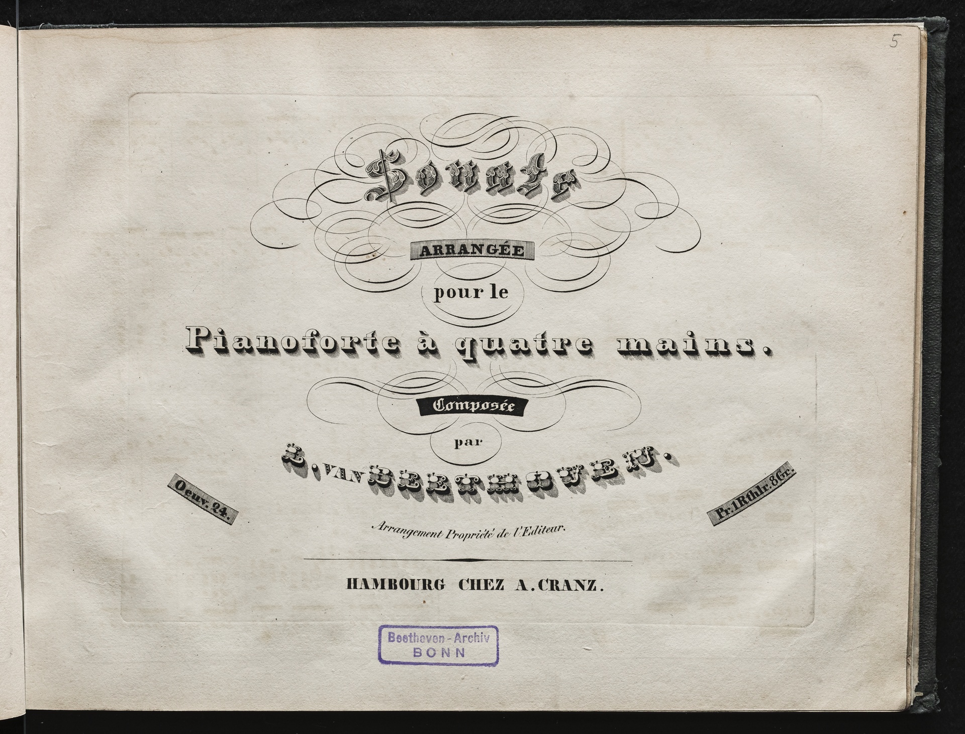 Ludwig van Beethoven, Sonate für Klavier und Violine (F-Dur) op. 24, Bearbeitung für Klavier zu 4 Händen, Cranz