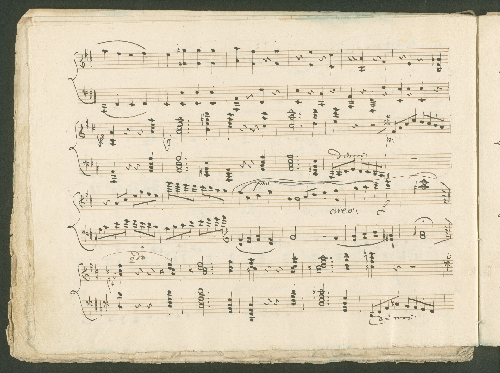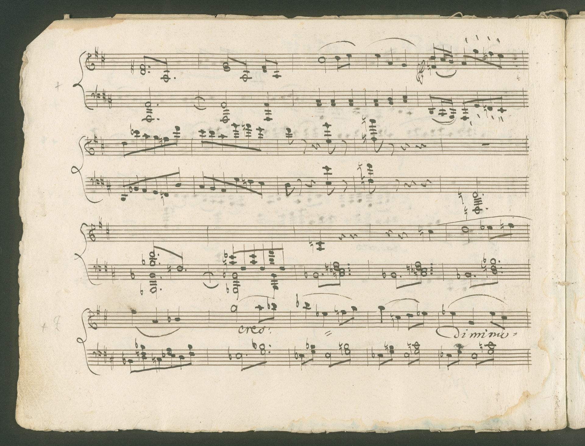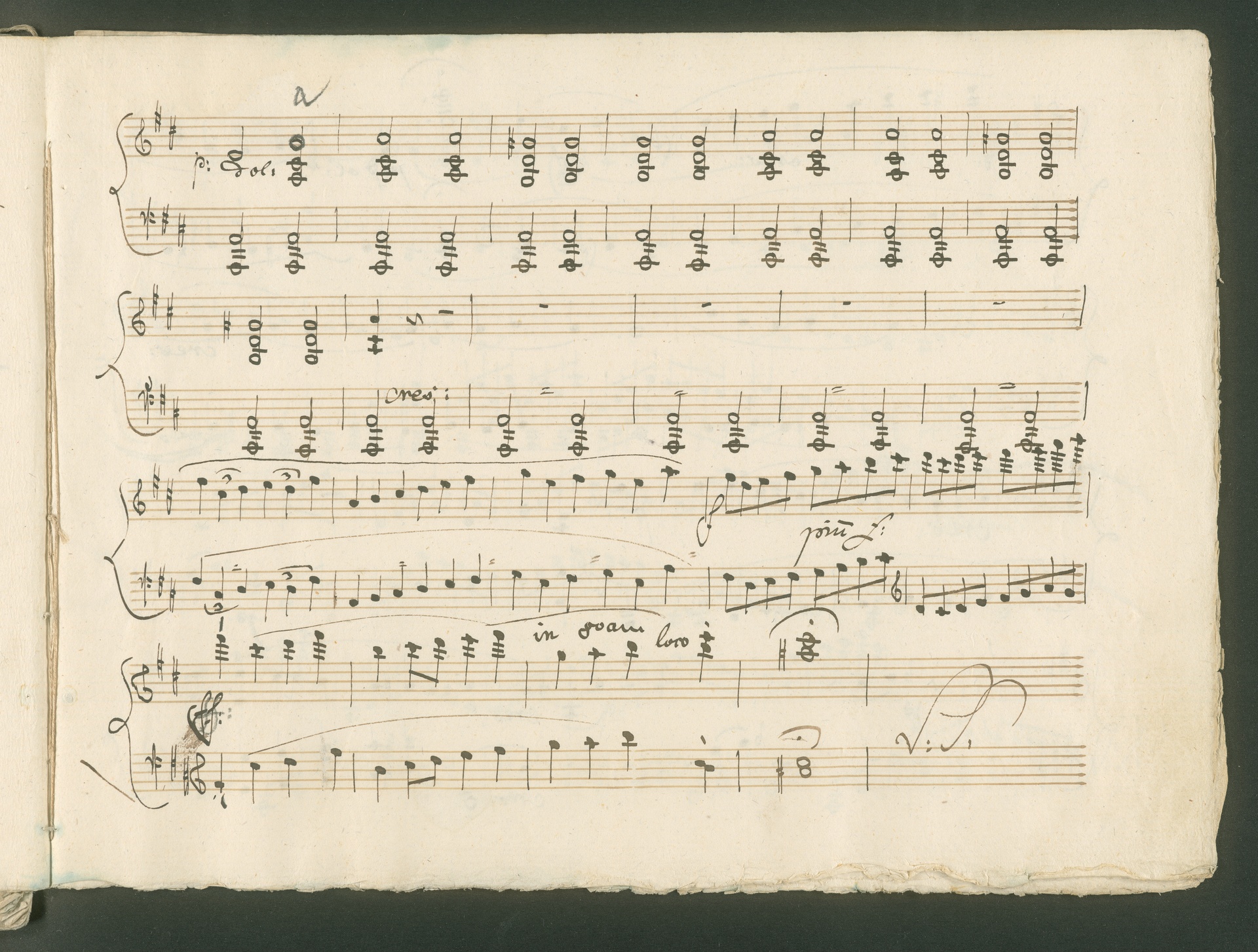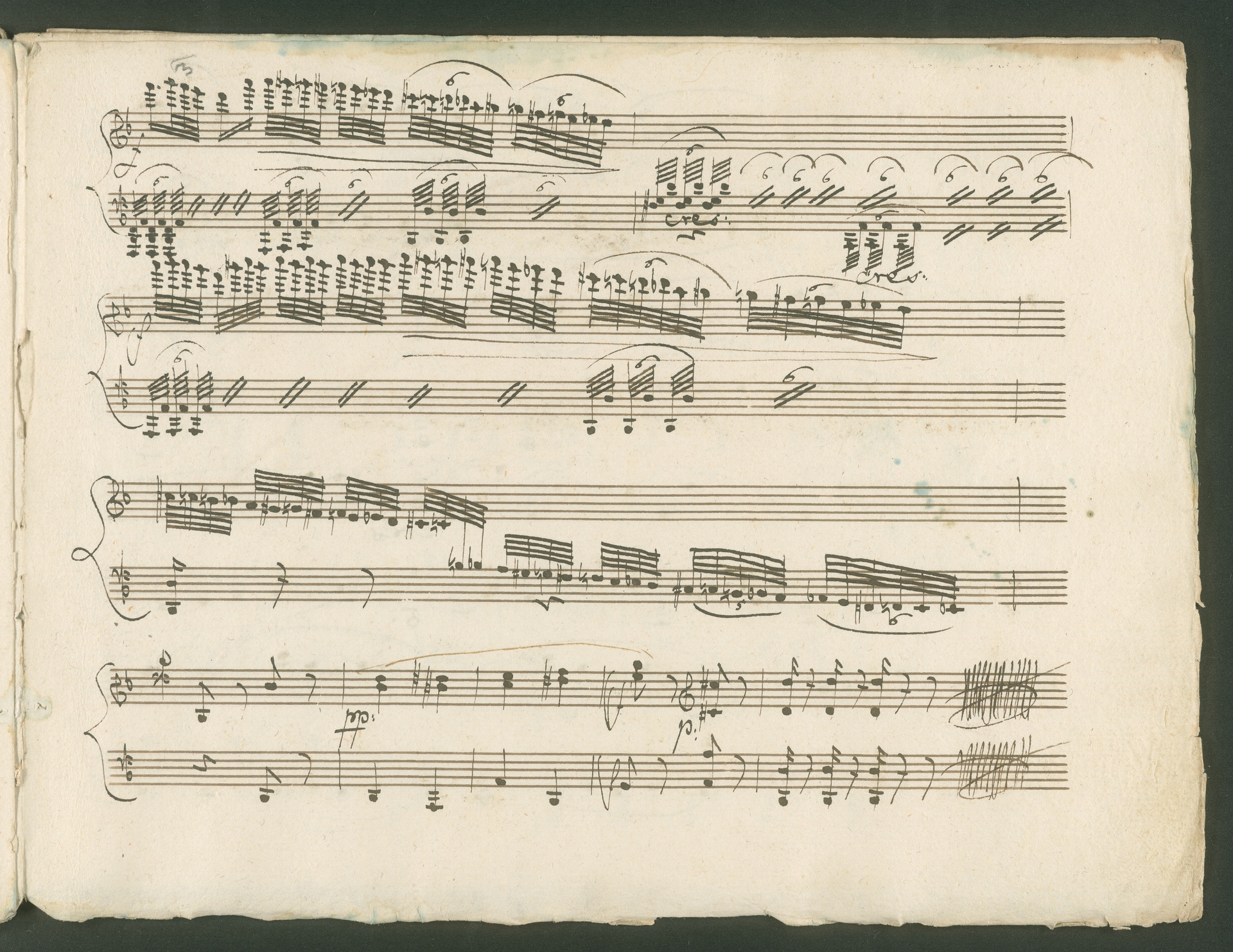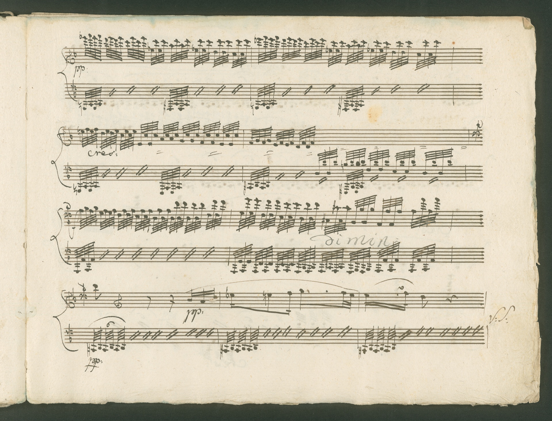 Die Abschrift hat zwei Titelblätter. Nachdem die erste Fassung (jetzt Bl. 2) mehrfach korrigiert und durch Rasuren nahezu unleserlich geworden ist, entschloss sich Beethoven offensichtlich zu einer "ordentlichen" Version, also zu einem zweiten Titelblatt (jetzt Bl. 1). Dieses zweite Blatt - aus einer anderen Papiersorte - wurde auf den ursprünglichen Titel aufgenäht (die Naht ist mittlerweile weitgehend geöffnet). Neben Titel, Widmung (an die Gräfin Erdödy) und Unterschrift ist darauf rechts quer und durchgestrichen eine weitere Bemerkung von Beethovens Hand verzeichnet: "Dieses wird die Baronin Ertmann den kommenden Dinstag spielen". Freifrau Dorothea von Ertmann war eine begabte und virtuose Pianistin, die Beethoven nicht nur als Interpretin sehr schätzte - er widmete ihr auch die Klaviersonate op. 101. Möglicherweise spricht Beethoven von der vorliegenden Abschrift, als er seinen Freund Nikolaus Zmeskall am 16. April 1809 brieflich bittet: "Wenn ich nicht komme lieber Z, welches leicht geschehen kann, bitten sie die Baronin Ertmann daß sie ihnen die Klawierstimme von dem Terzett da läßt, und haben sie hernach die Gefälligkeit mir solche mit den übrigen Stimmen noch heute zu schicken" (BGA 377, Beethoven an Nikolaus Zmeskall [Wien, 16. April 1809]). Die überprüfte Abschrift trägt zahlreiche dynamische Vorschriften, teilweise ausführlicher als das Autograph oder die Originalausgabe. Zudem enthält sie auf Bl. 7r (Bild 13) eigenhändige Fingersätze Beethovens. Hat die Freifrau Ertmann aus dieser Stimme musiziert, von Beethoven für sie eingerichtet? (J.R.)