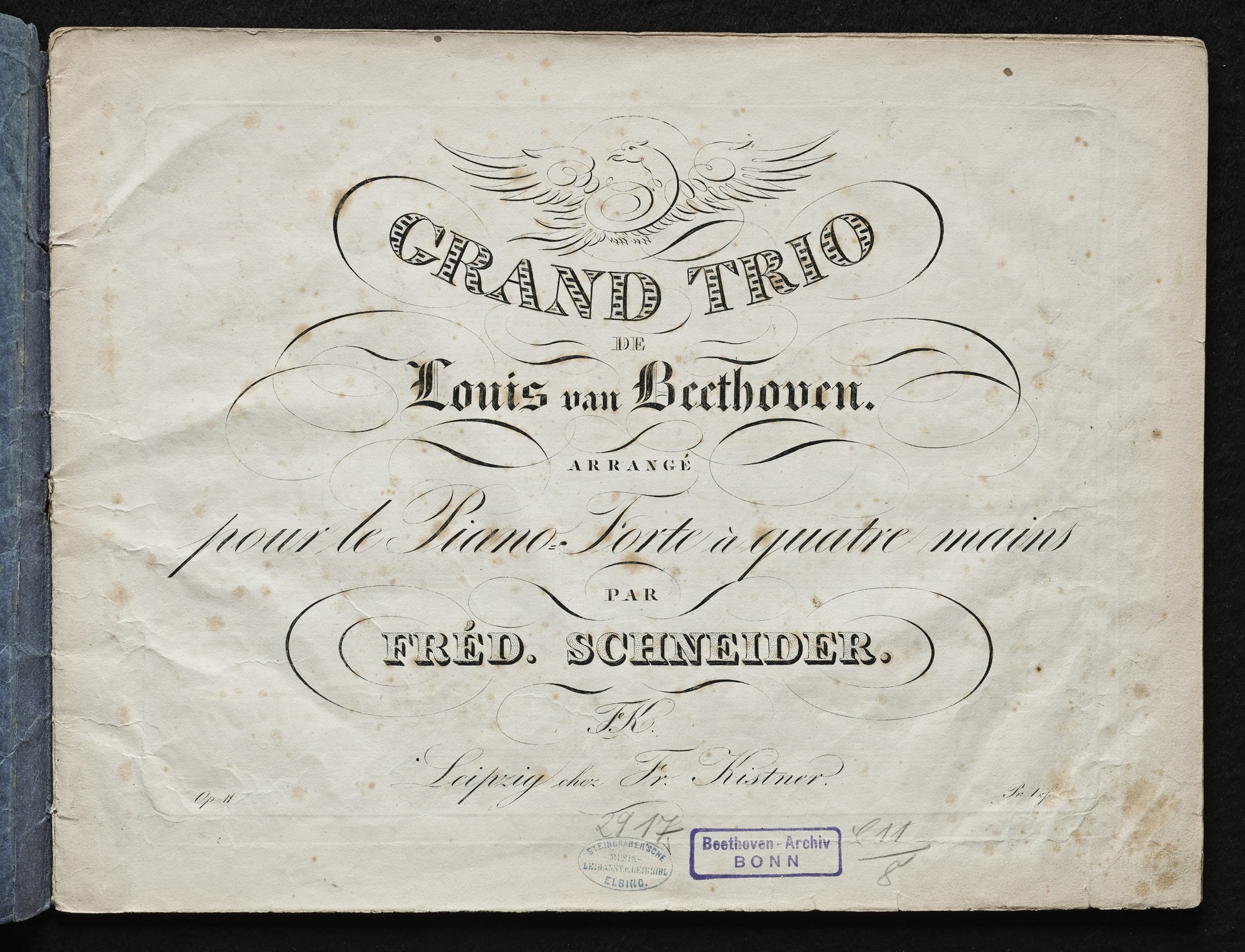 Ludwig van Beethoven, Trio für Klavier, Klarinette (Violine), Violoncello (B-Dur) op. 11, Bearbeitung für Klavier zu 4 Händen von Friedrich Schneider, Kistner, 87