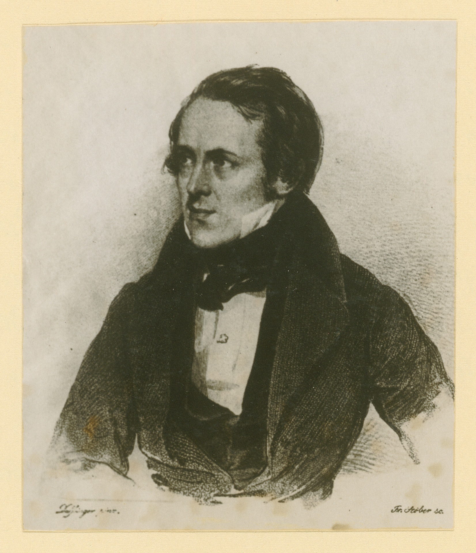 Eduard von Bauernfeld (1802-1890) - Lithographie von Franz Xaver Stöber, wohl nach einem Aquarell von Moritz Michael Daffinger, Fotografie, Wien, um 1910