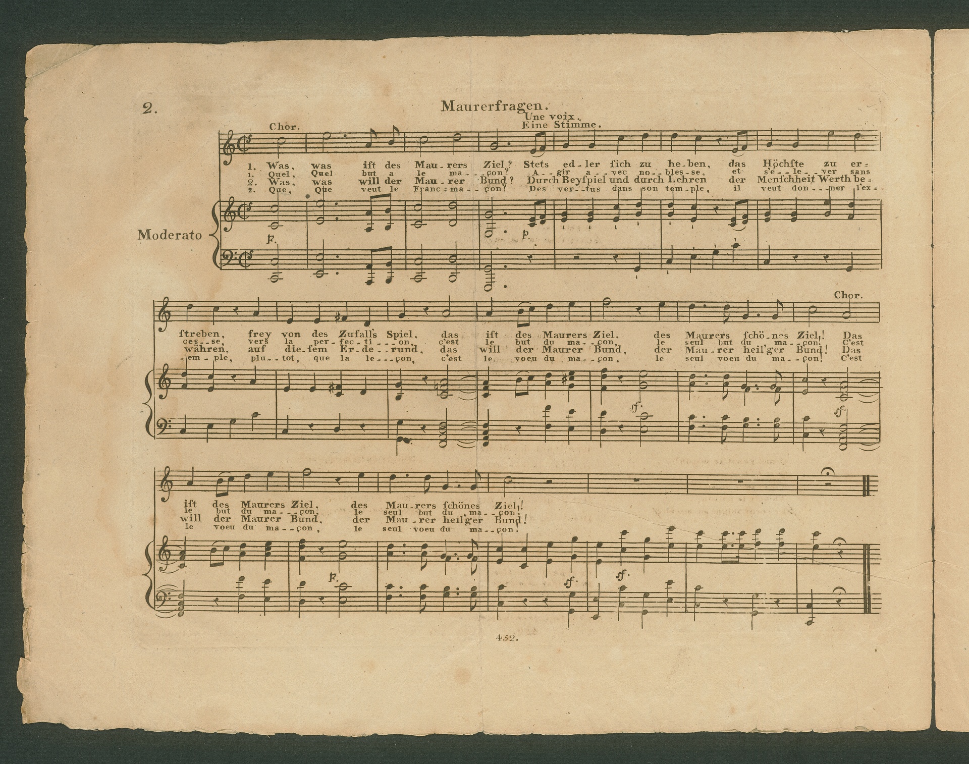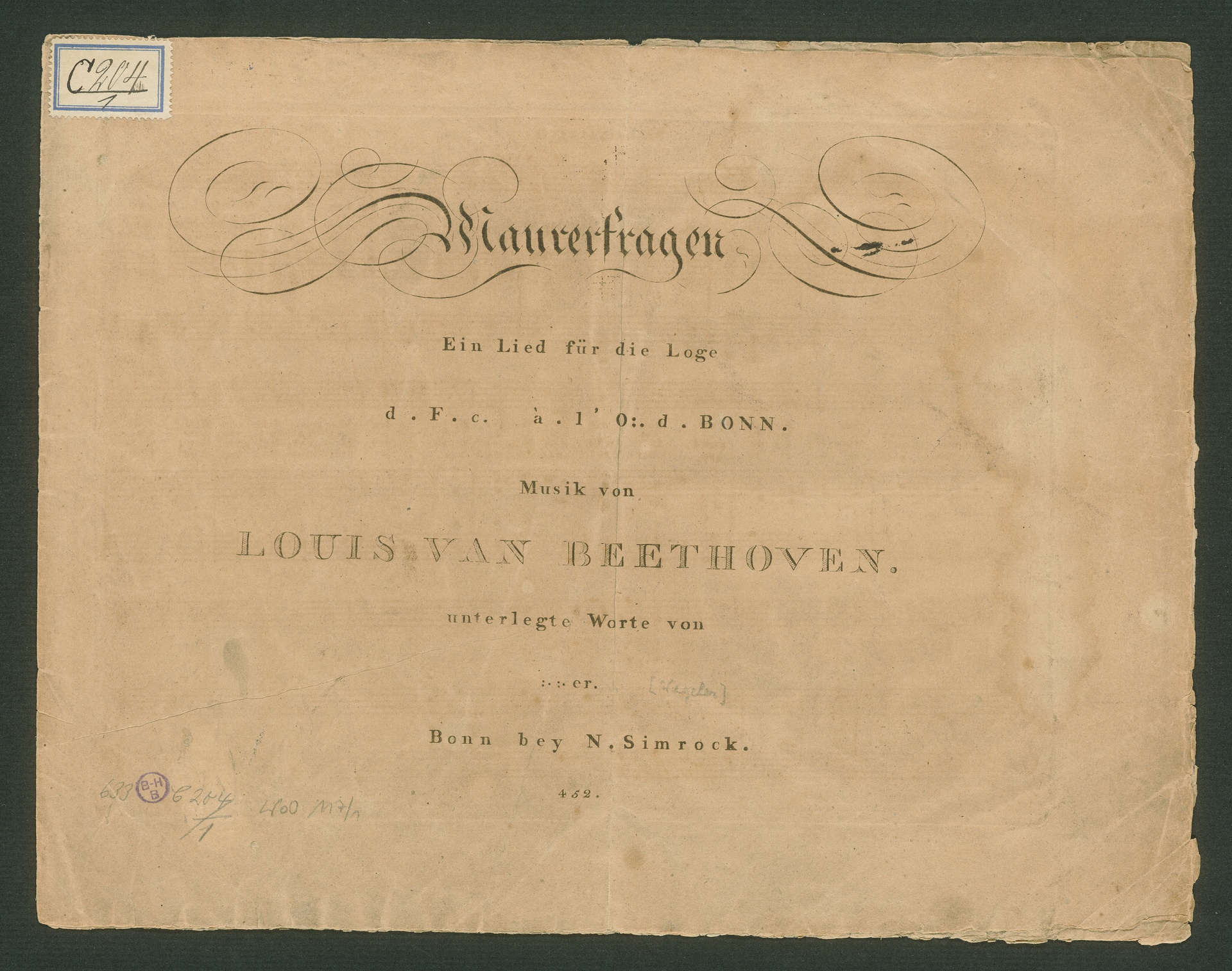 Ludwig van Beethoven, "Der freie Mann", Lied für Singstimme, einstimmigen Chor und Klavier WoO 117, Simrock, 452