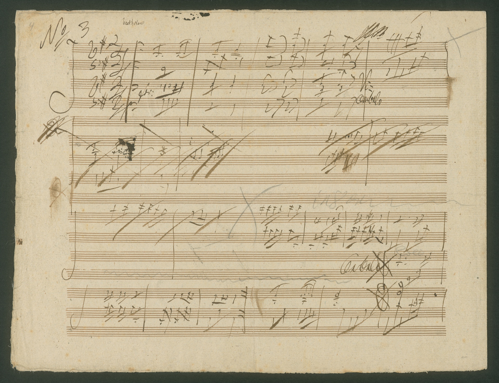Ludwig van Beethoven, Skizzenblatt zu Lieder verschiedener Völker, WoO 158, Nr. 7, Nr. 17 und Nr. 22, Partitur, Autograph