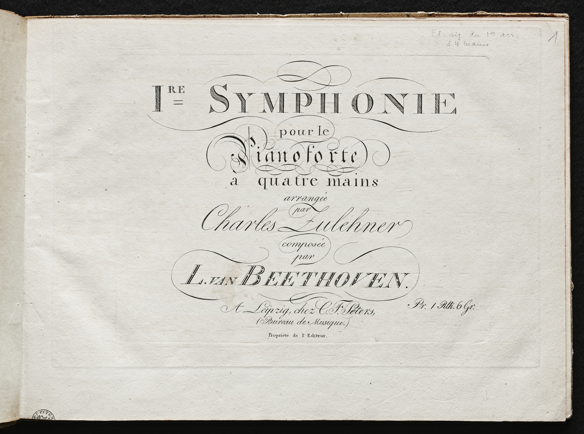 Ludwig van Beethoven, Sinfonie Nr. 1 (C-Dur) op. 21, Bearbeitung für Klavier zu 4 Händen von Carl Zulehner, Peters, 1033