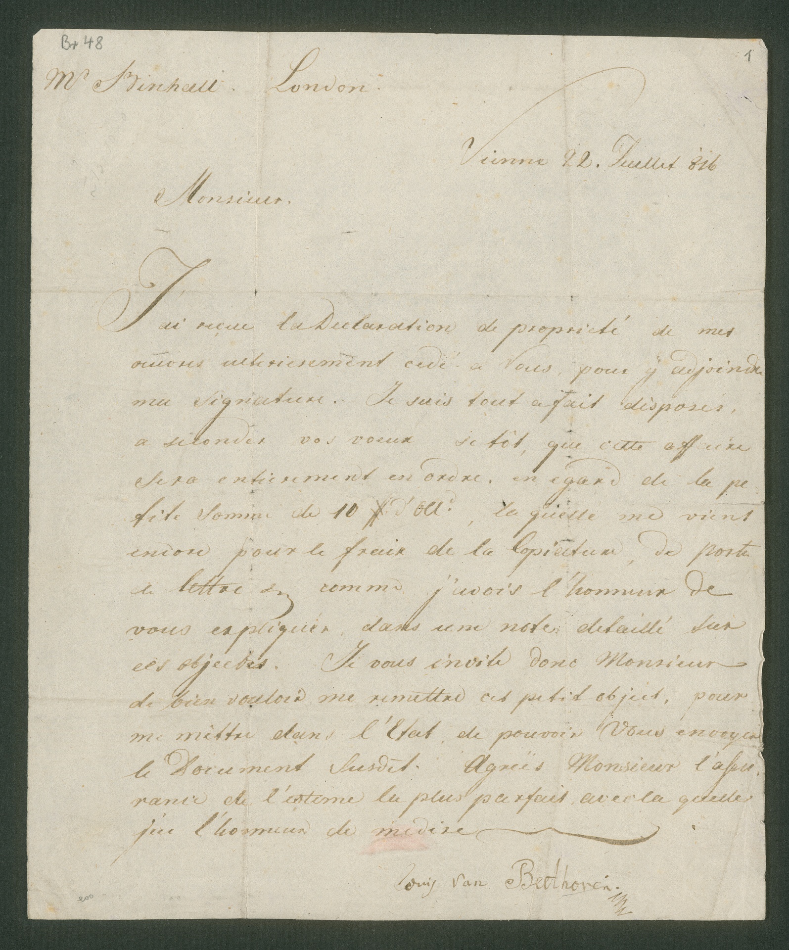 Ludwig van Beethoven, Brief an Robert Birchall in London, Wien, 22. Juli 1816