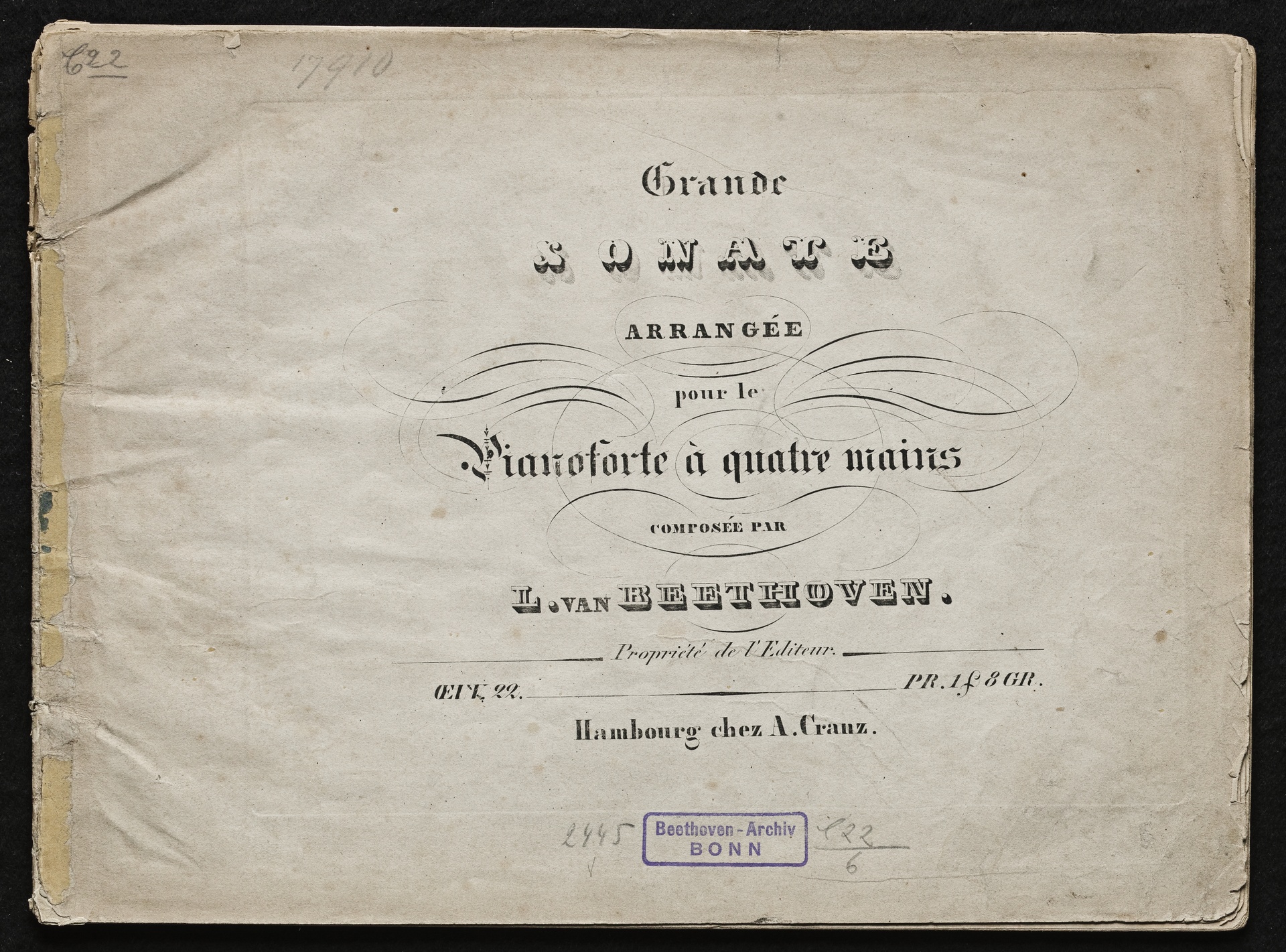 Ludwig van Beethoven, Sonate für Klavier (B-Dur) op. 22, Cranz