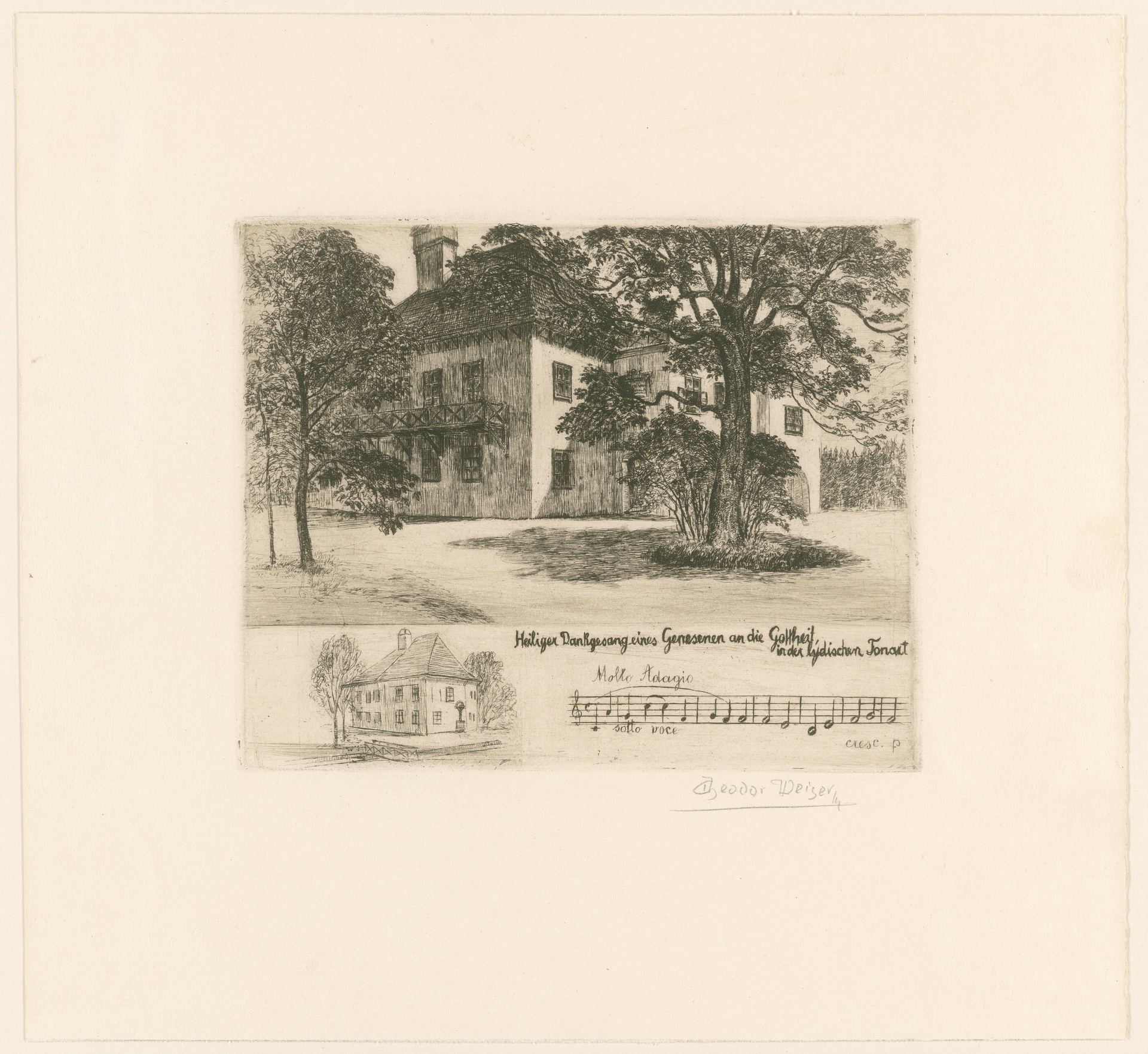 Baden, Schloss Gutenbrunn, Eremitage, Wohnung von Ludwig van Beethoven - Radierung von Theodor Weiser, wohl nach einer eigenen Zeichnung, Wien, um 1920?