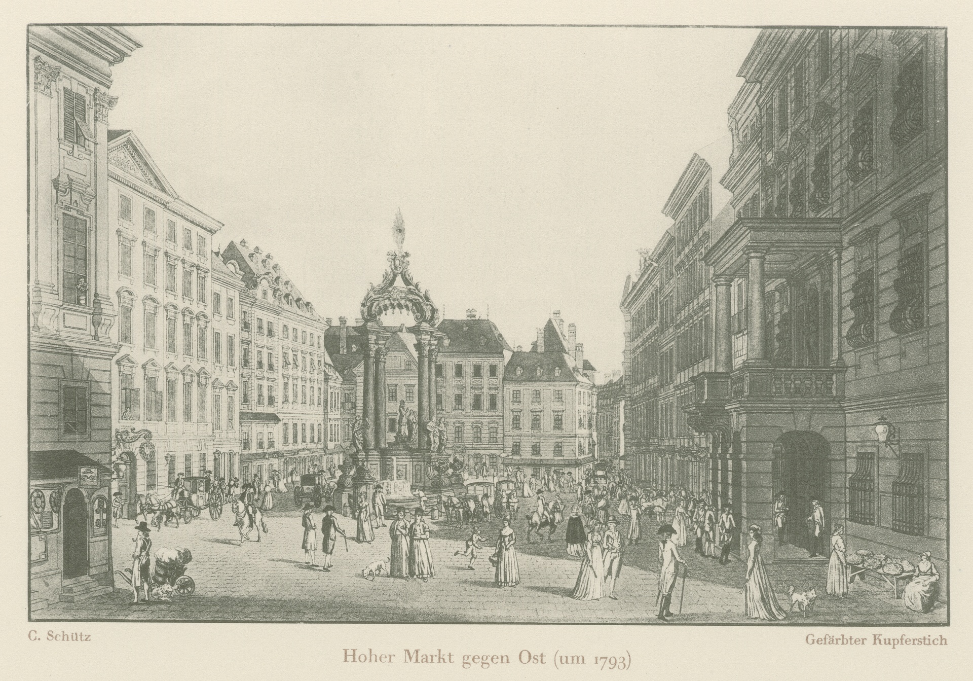 Der Hohe Markt in Wien, um 1793 - Reproduktion eines Stichs von Carl Schütz nach einer eigenen Zeichnung