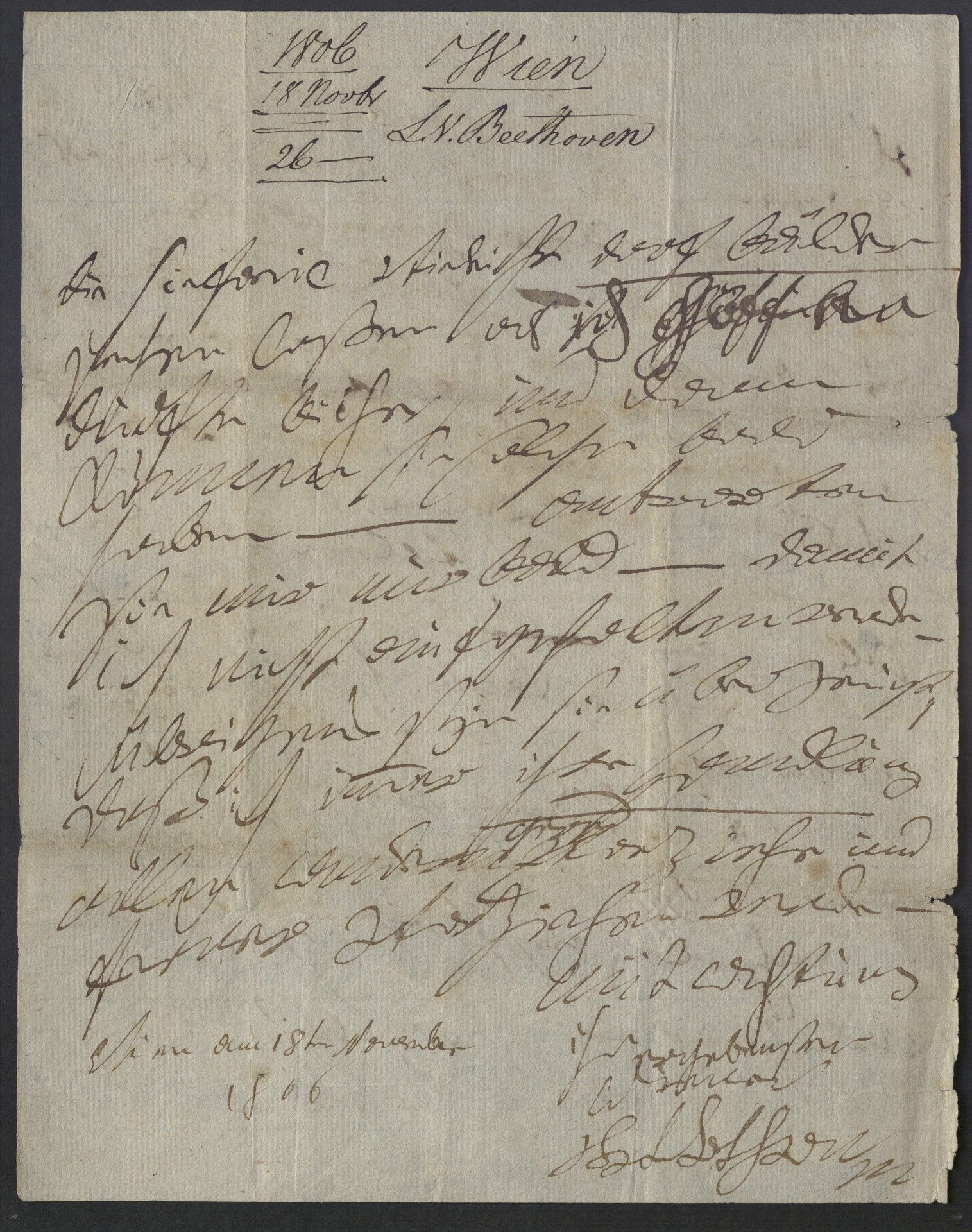 Ludwig van Beethoven, Brief an Breitkopf und Härtel in Leipzig, Wien, 18. November 1806, Autograph
