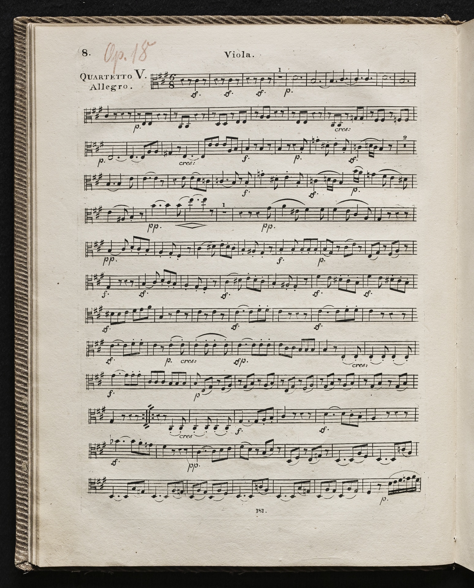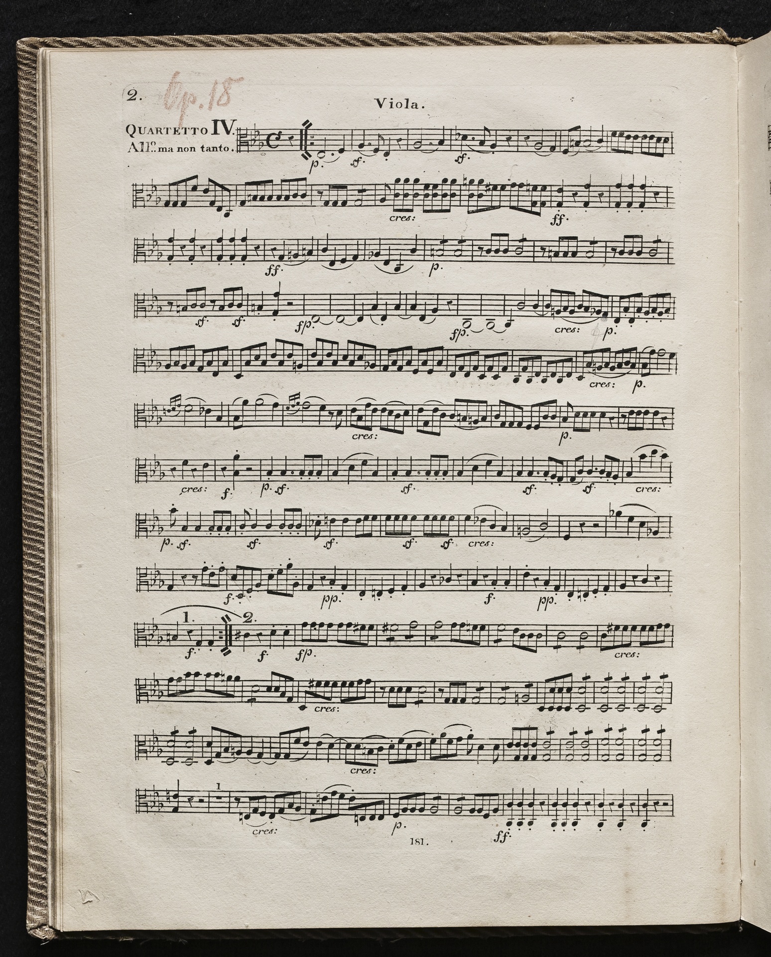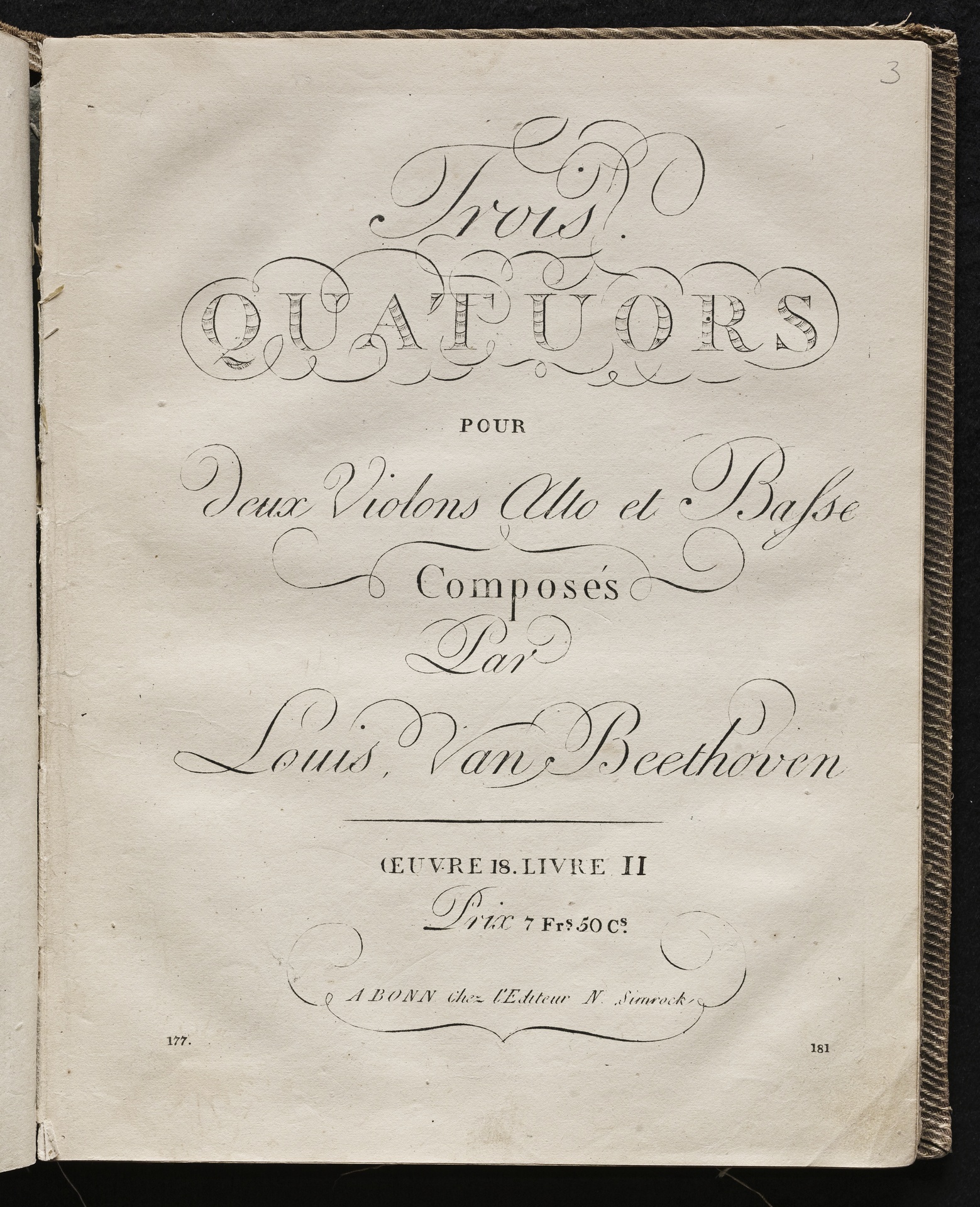 Ludwig van Beethoven, Quartette für 2 Violinen, Viola, Violoncello (c-Moll, A-Dur, B-Dur) op. 18, 4-6, Stimmen, Simrock, 181