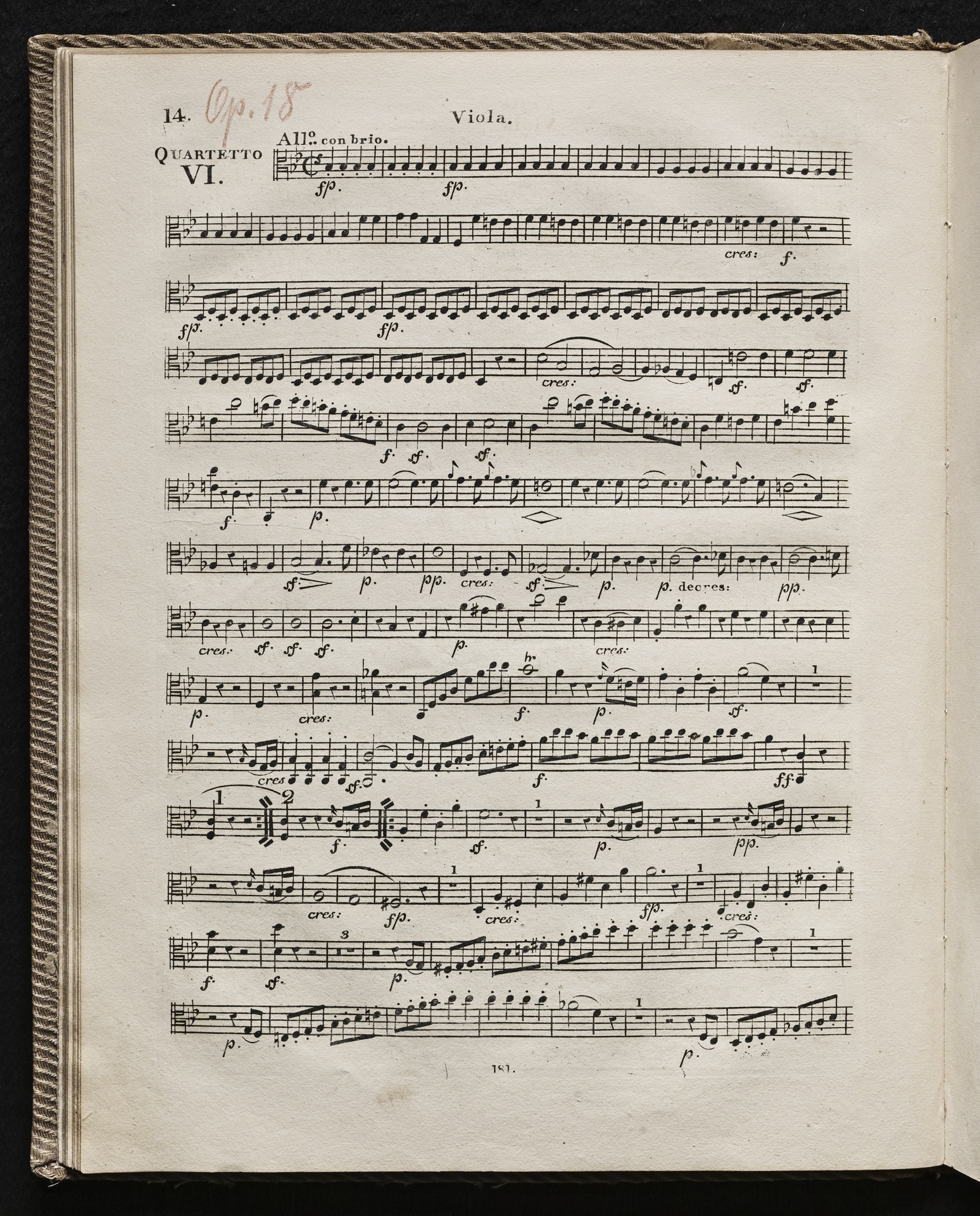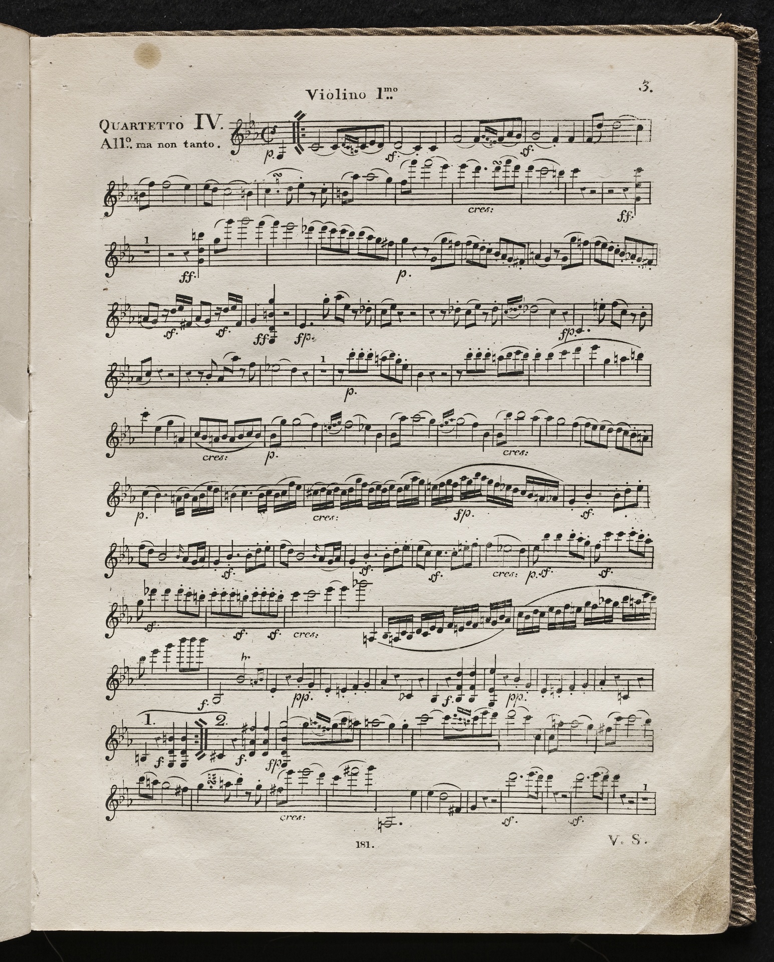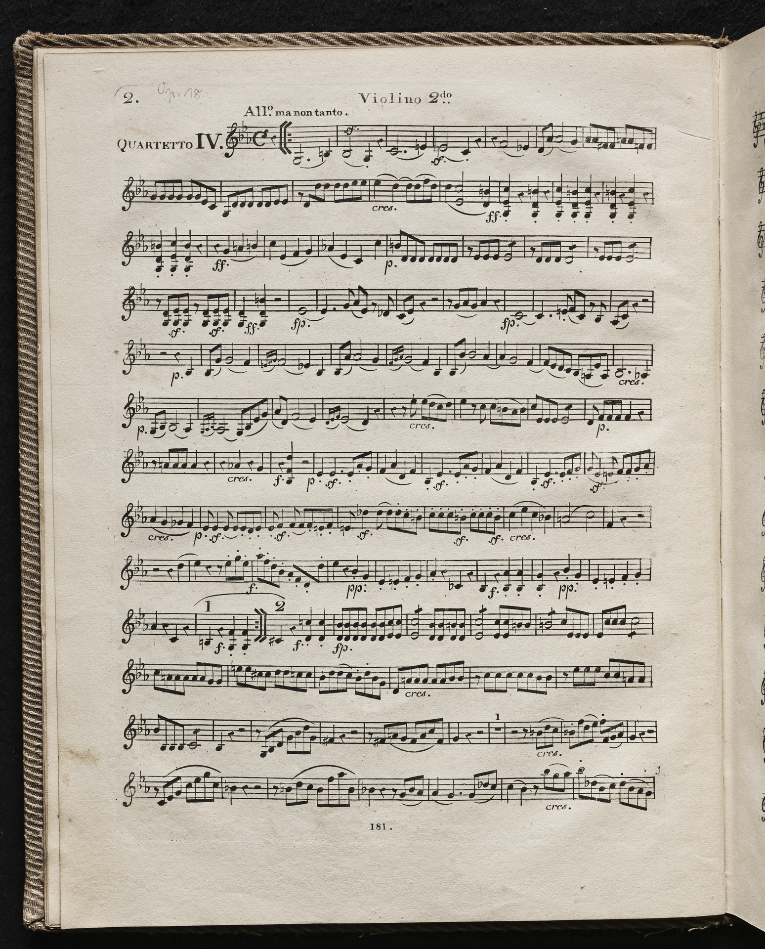 Ludwig van Beethoven, Quartette für 2 Violinen, Viola, Violoncello (c-Moll, A-Dur, B-Dur) op. 18, 4-6, Stimmen, Simrock, 181