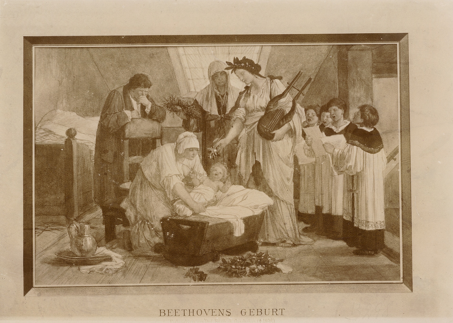 "Beethovens Geburt" - Studie von Friedrich Geselschap für ein allegorisches Gemälde, um 1895, Fotografie, Bonn, 1899