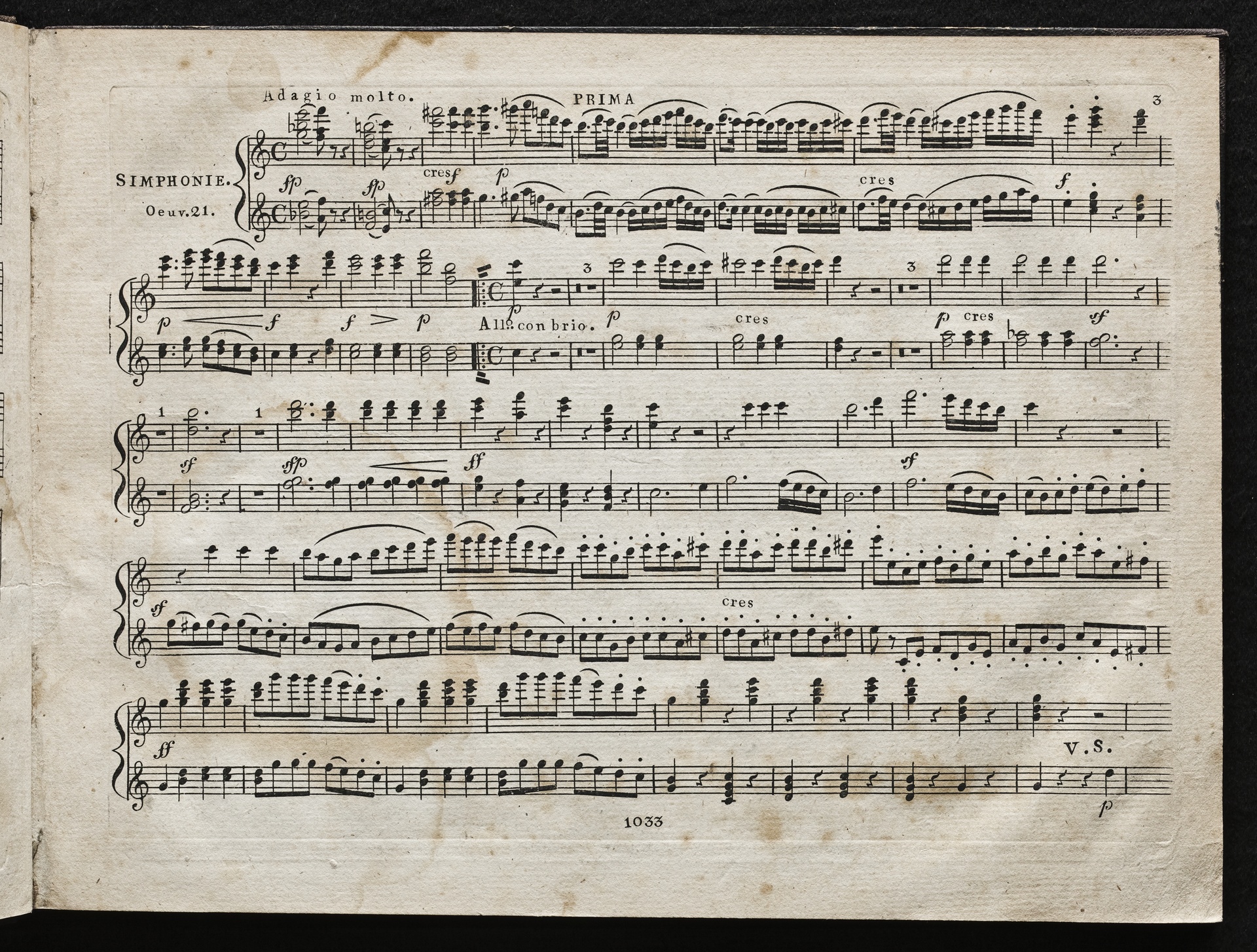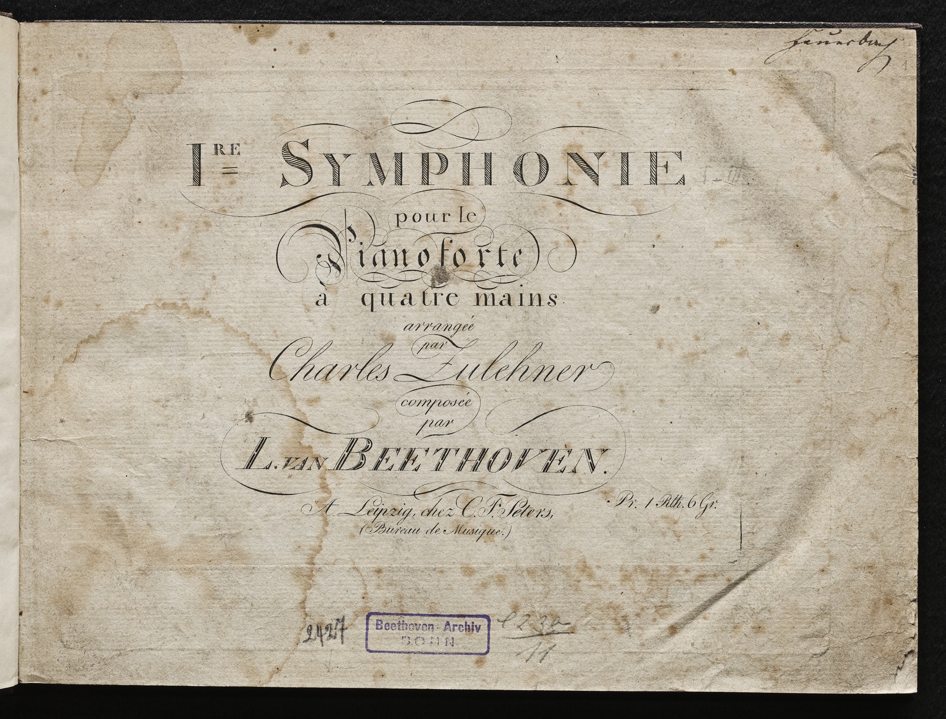 Ludwig van Beethoven, Sinfonie Nr. 1 (C-Dur) op. 21, Bearbeitung für Klavier zu 4 Händen von Carl Zulehner, Peters, 1033