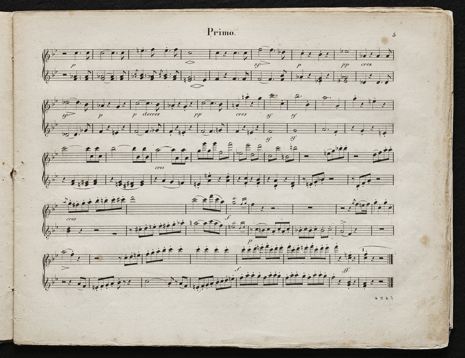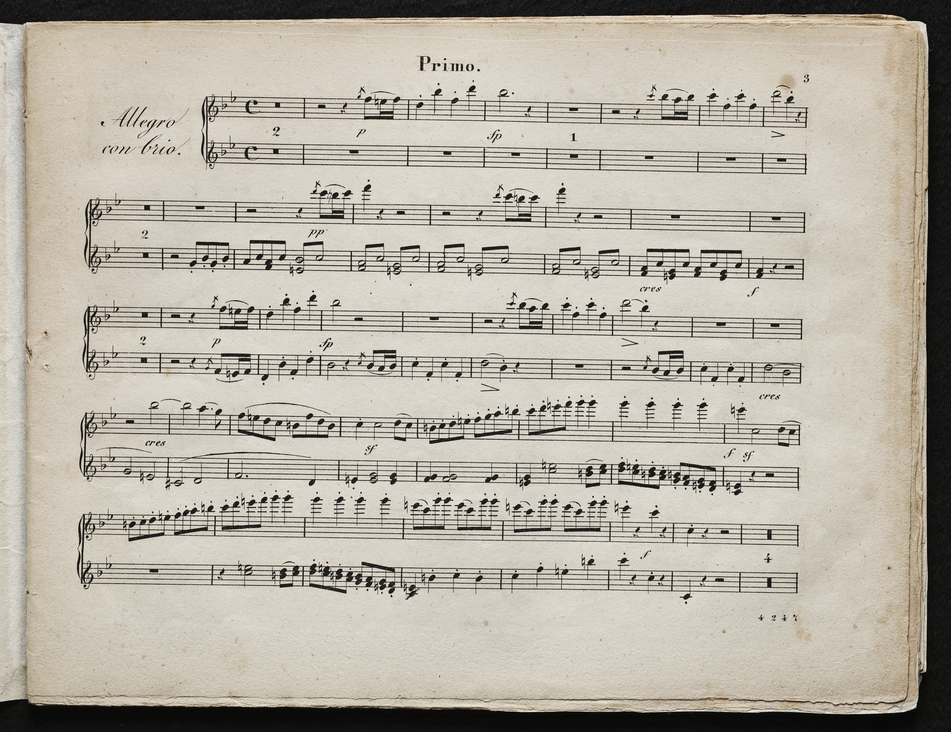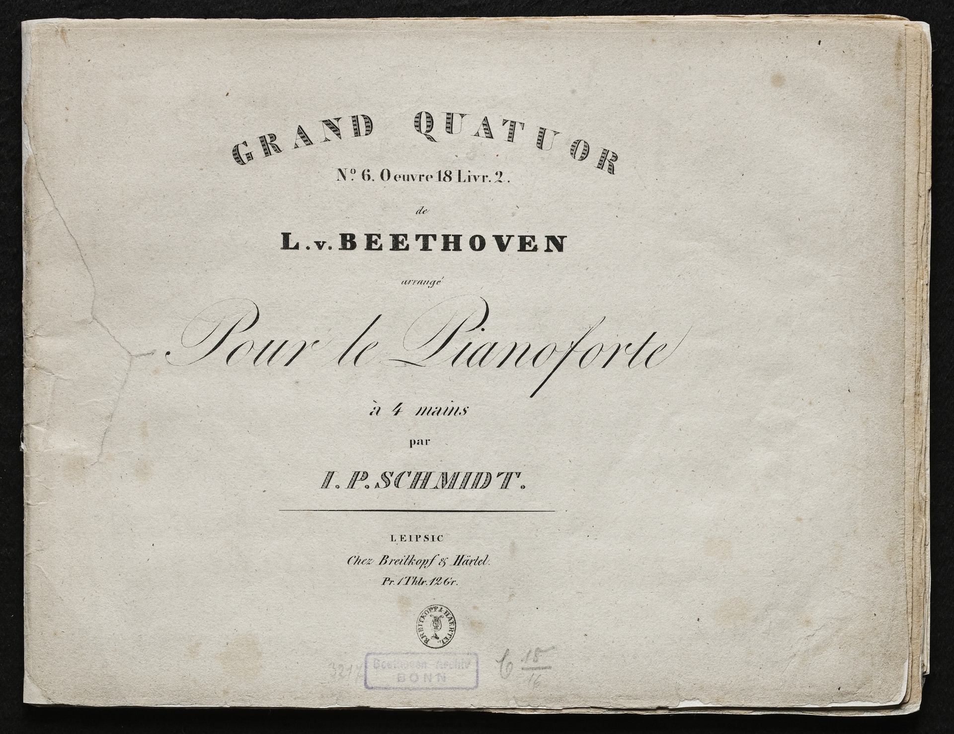 Ludwig van Beethoven, Quartett für 2 Violinen, Viola, Violoncello (B-Dur) op. 18, 6, Bearbeitung für Klavier zu 4 Händen von Johann Philipp Samuel Scmidt, Breitkopf und Härtel, 4247