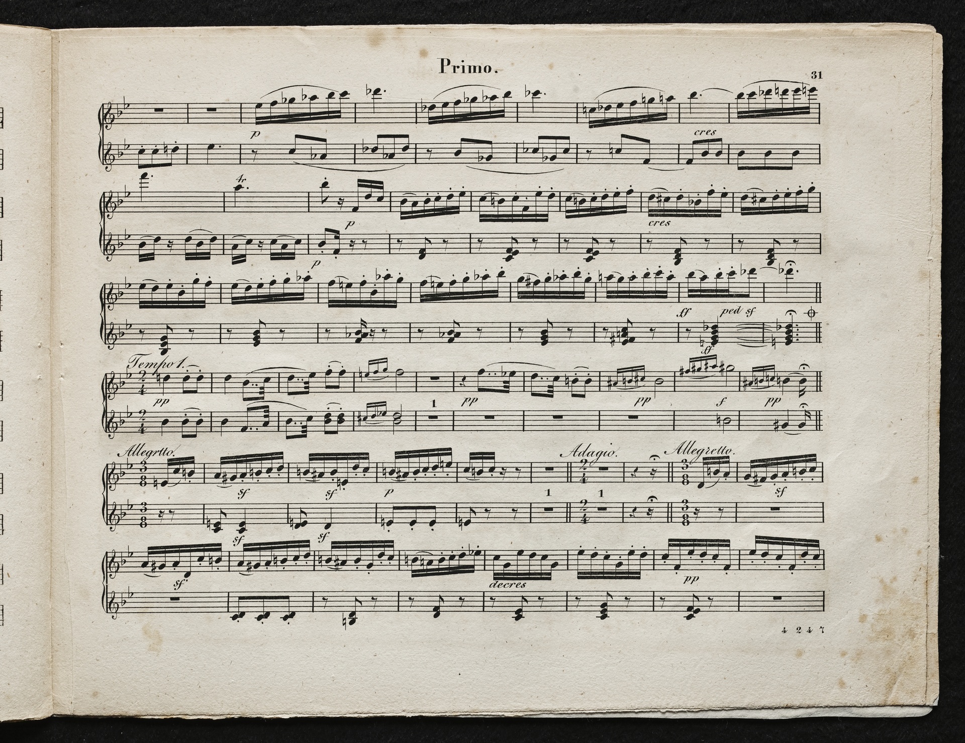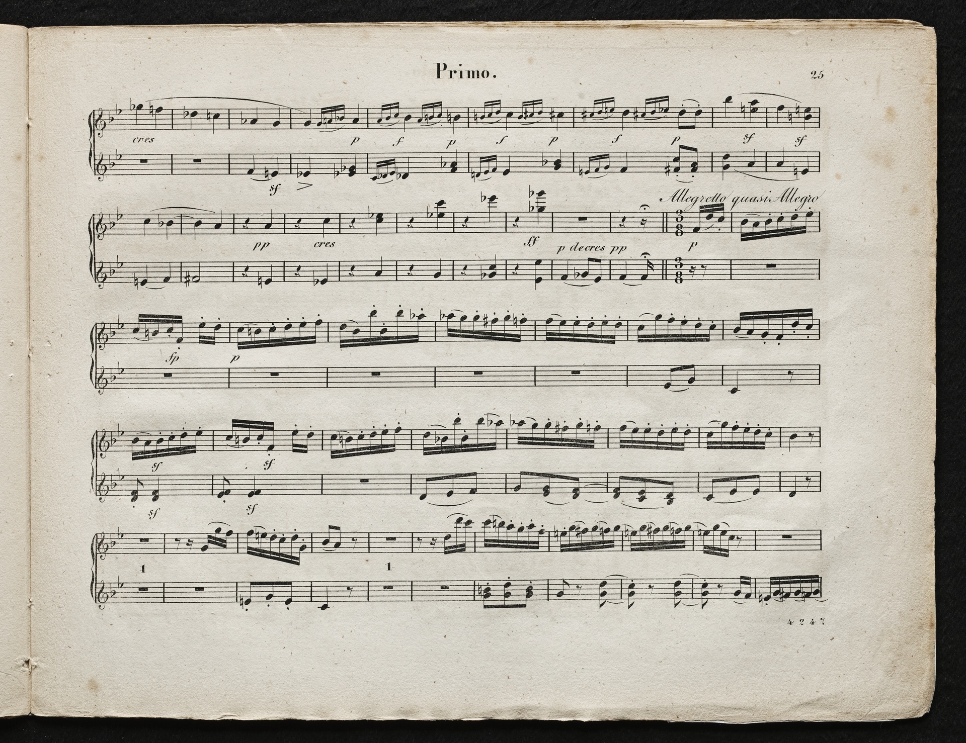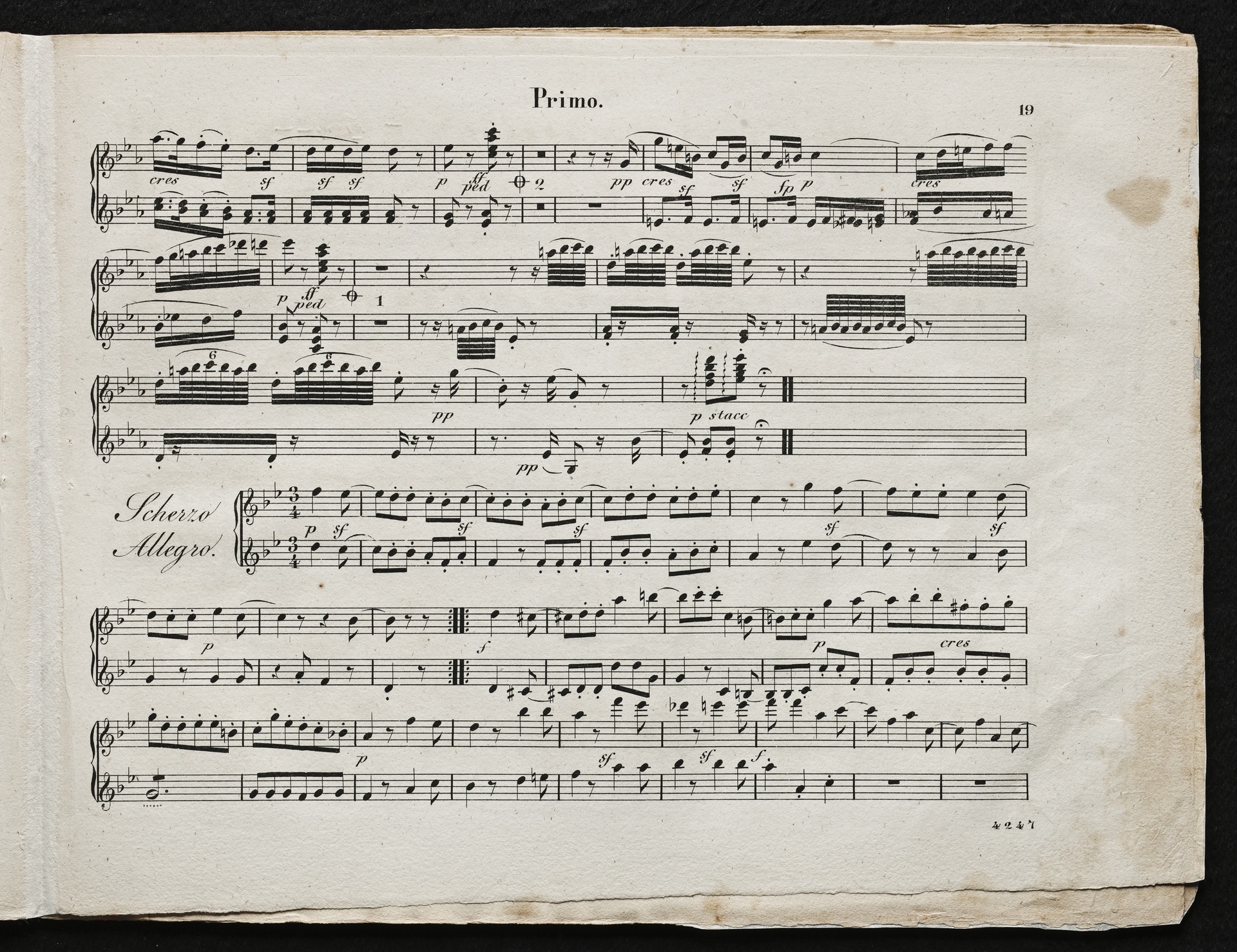 Ludwig van Beethoven, Quartett für 2 Violinen, Viola, Violoncello (B-Dur) op. 18, 6, Bearbeitung für Klavier zu 4 Händen von Johann Philipp Samuel Scmidt, Breitkopf und Härtel, 4247