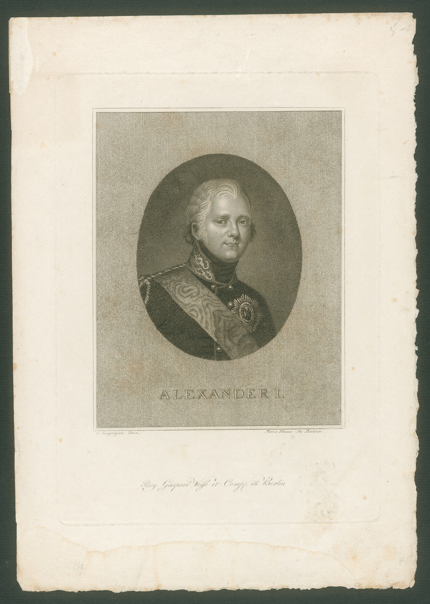 Zar Aleksandr I., Zar von Russland (1777-1825) - Stich von Meno Haas nach einem Gemälde von Gerhard von Kügelgen, Berlin, um 1815-1820