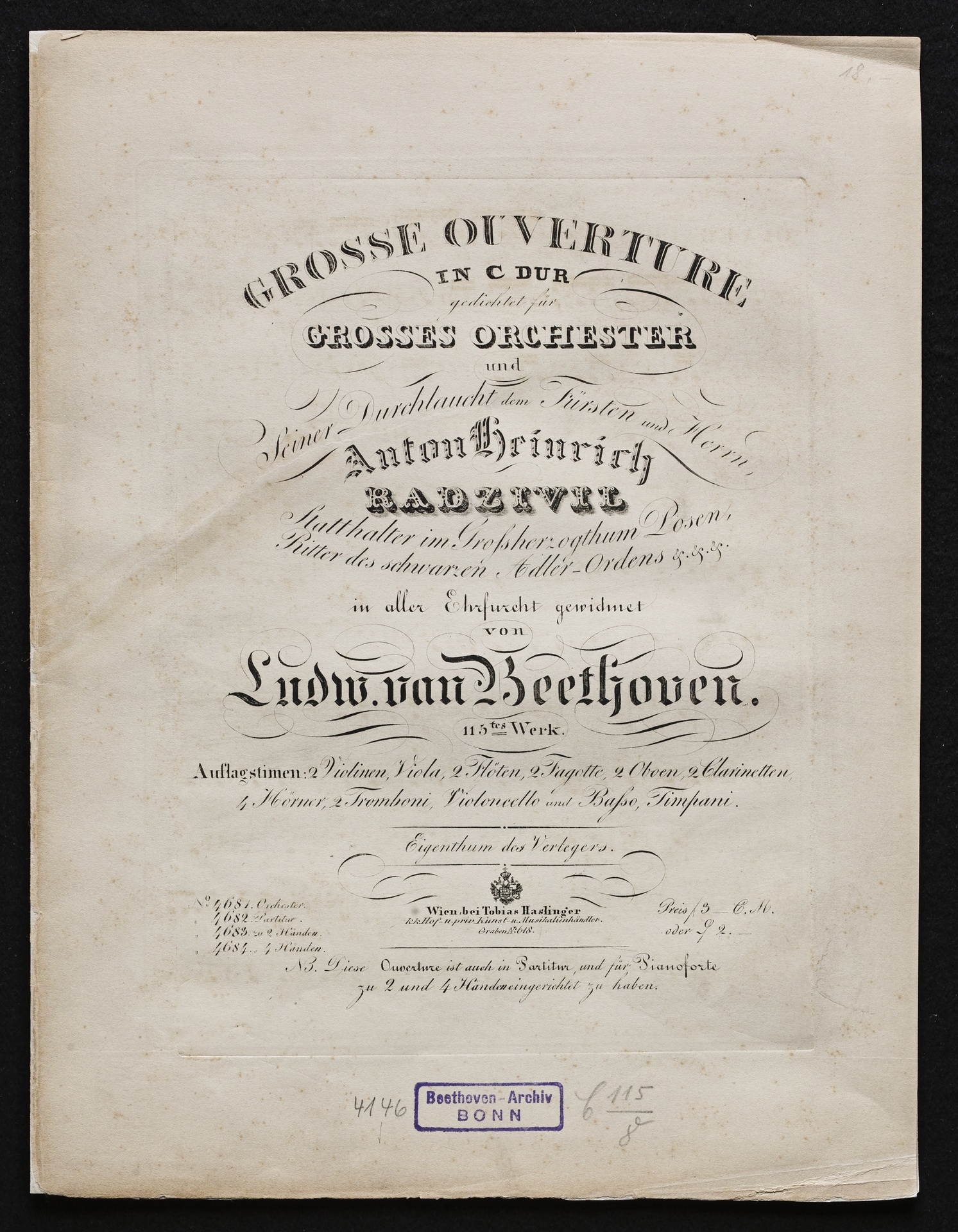 Ludwig van Beethoven, Ouvertüre "Zur Namensfeier" (C-Dur) op. 115, Stimmen, Haslinger, 4681