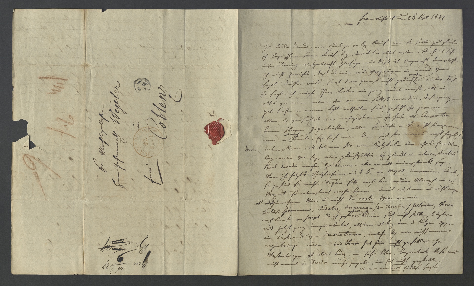 Ferdinand Ries, Brief an Franz Gerhard Wegeler in Koblenz, Frankfurt am Main, 26. September 1827, Autograph