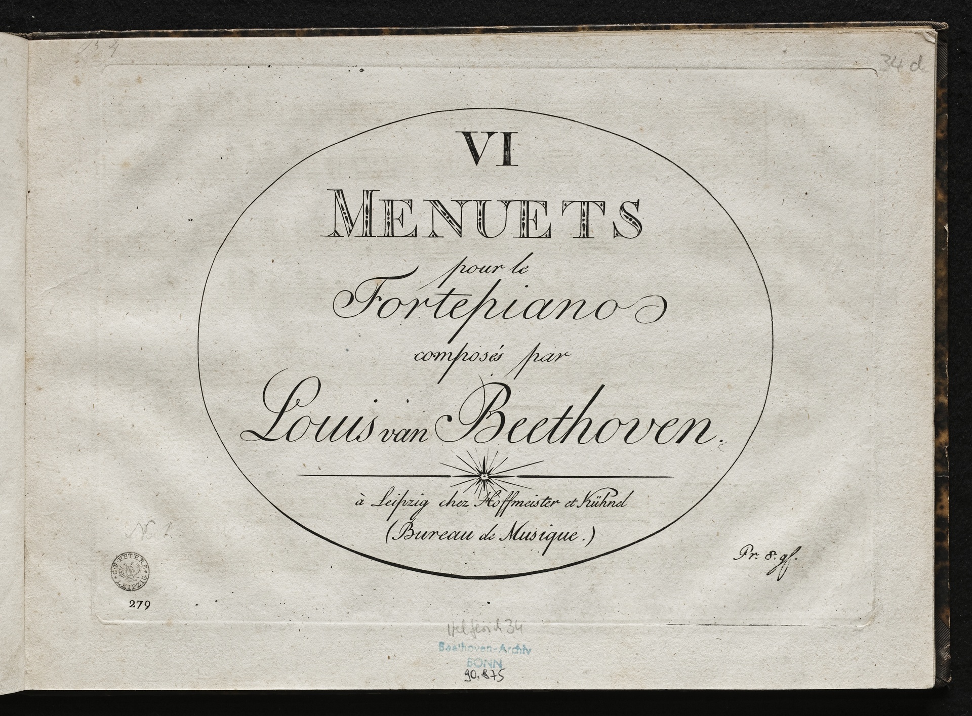 Ludwig van Beethoven, Menuette für Orchester (C-Dur, G-Dur, Es-Dur, B-Dur, D-Dur, C-Dur) WoO 10, 1-6, Fassung für Klavier, Hoffmeister und Kühnel, 279