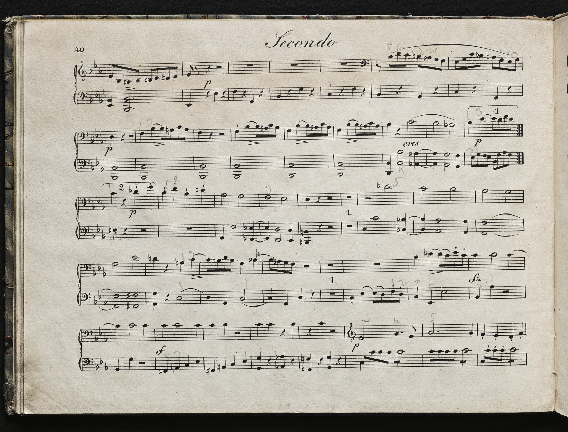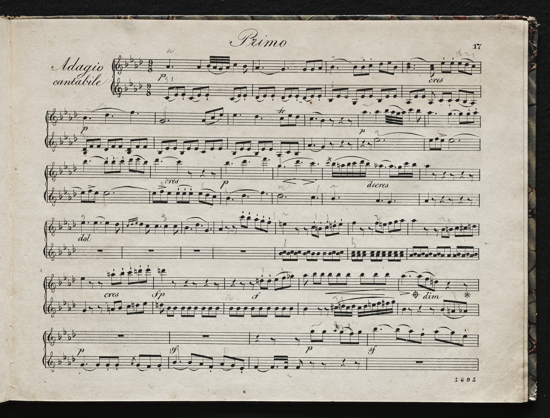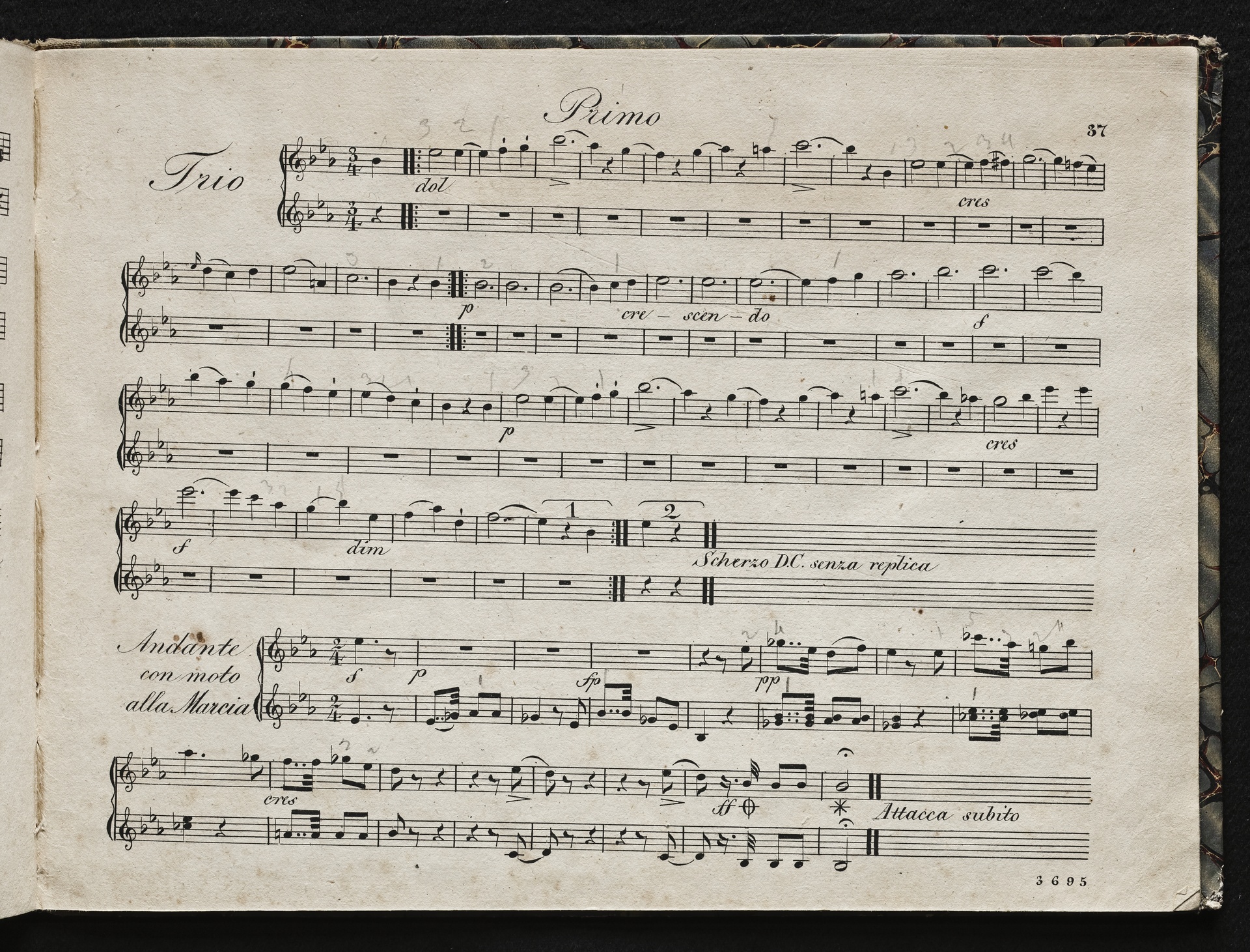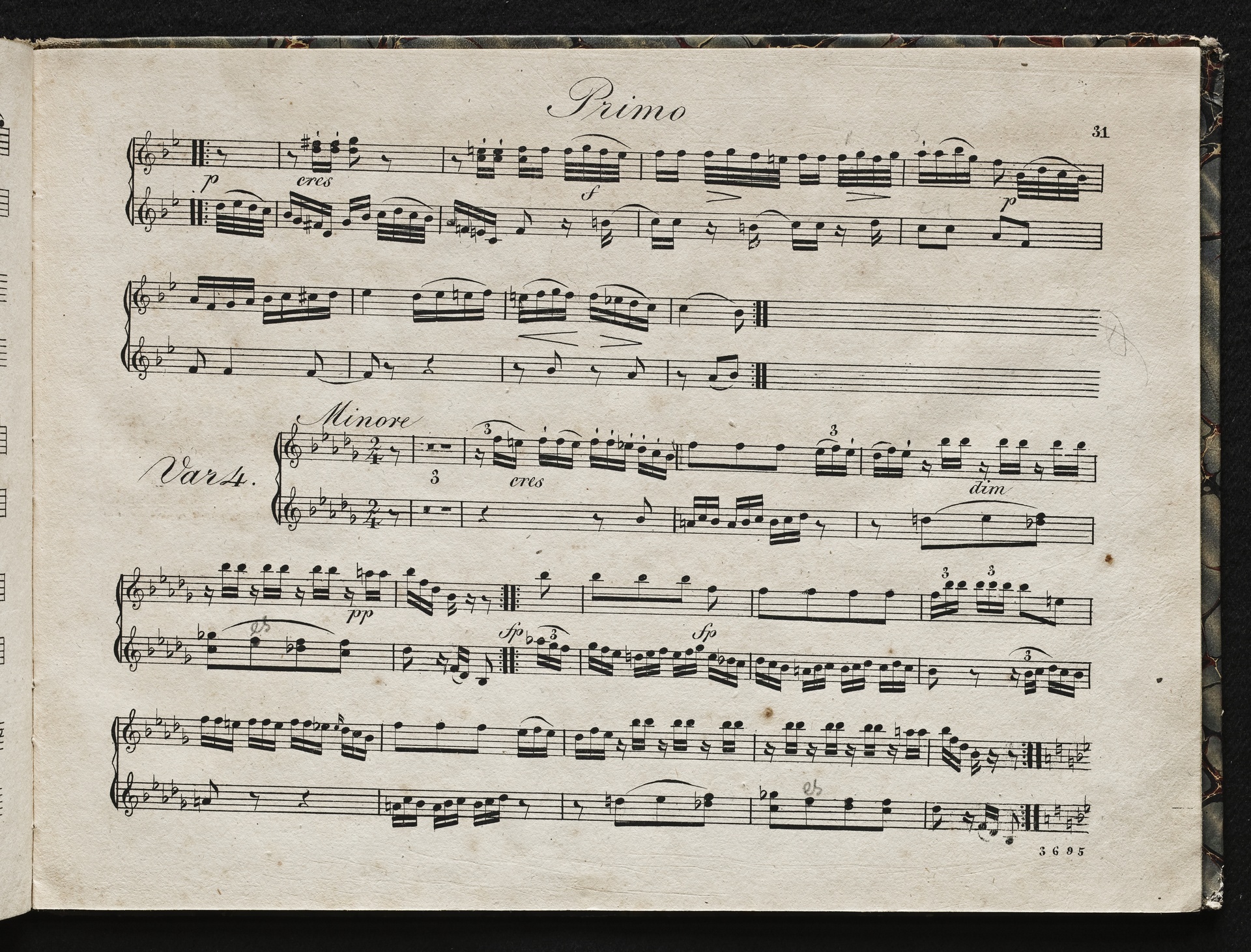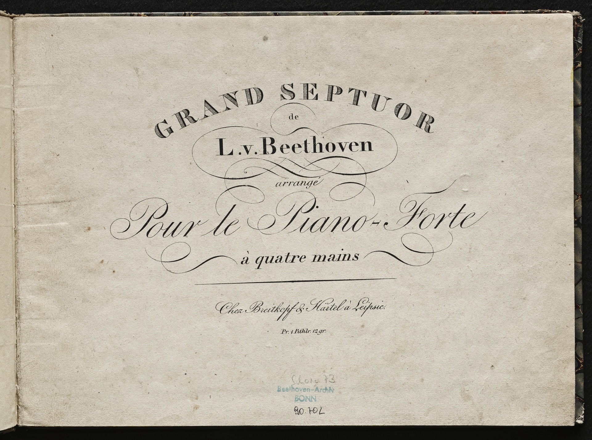 Ludwig van Beethoven, Septett für Violine, Viola, Klarinette, Horn, Fagott, Violoncello, Kontrabass (Es-Dur) op. 20, Bearbeitung für Klavier zu 4 Händen, Breitkopf und Härtel, 3695