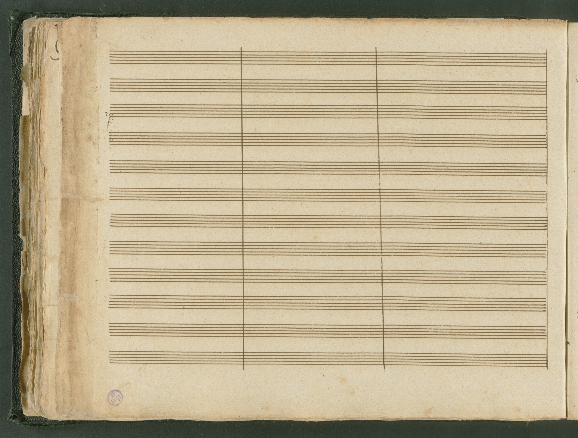 Wie bei vielen seiner Partiturmanuskripte verwendete Beethoven Notenpapier, das er schon vor Beginn der Arbeit vorbereitete, indem er jede Seite mit dem Lineal in drei große Takte einteilte. Diese Großtakte konnte er bei Bedarf von Hand noch weiter unterteilen, sie erleichterten ihm aber den Schreibfluß. Bei der Niederschrift der Partitur begann Beethoven zunächst mit den wichtigen, tragenden Stimmen, den sog. Führungsstimmen. Er notierte zunächst eine Art Gerüst, das er später auffüllte (ähnlich wie beim Bau eines Fachwerkhauses). Auf einigen Seiten hat er später auf die "Füllung" verzichtet (es genügte, mit "come sopra" anzumerken, dass die entsprechende Stelle wie eine gleiche Stelle weiter vorne sein sollte).