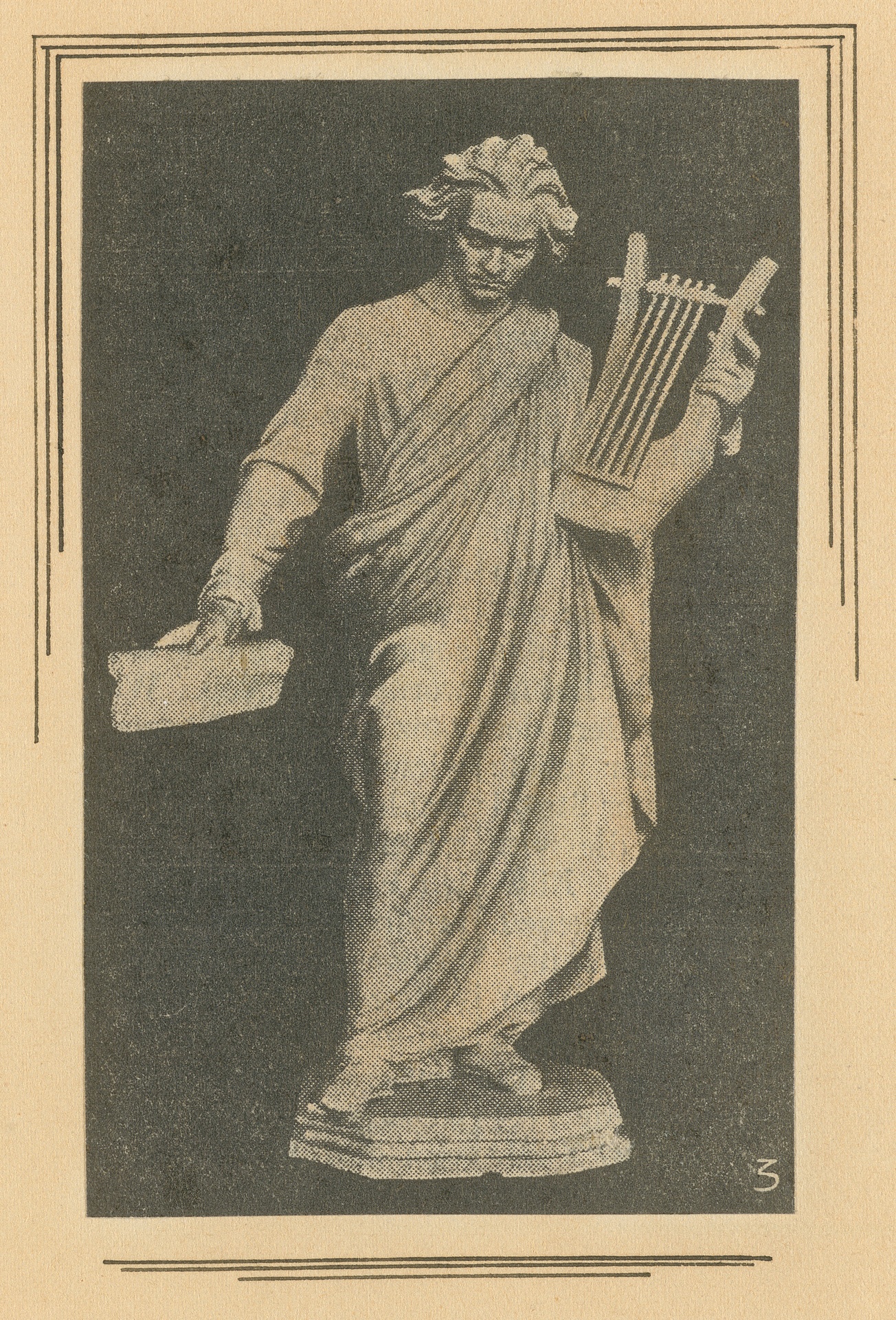 Beethoven mit Leier und Schriftrolle, in der Art des Apoll - Fotografie eines Denkmalentwurfs von Gustav Hermann Bläser