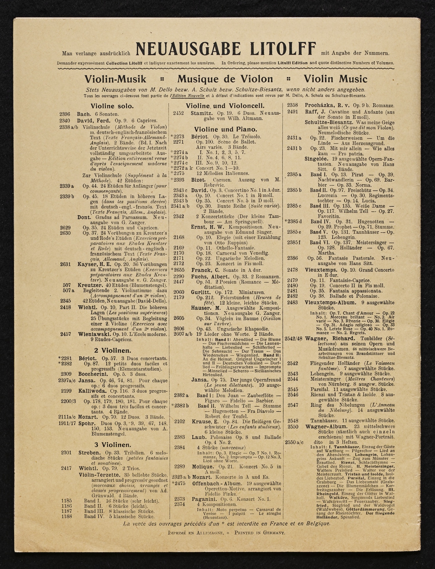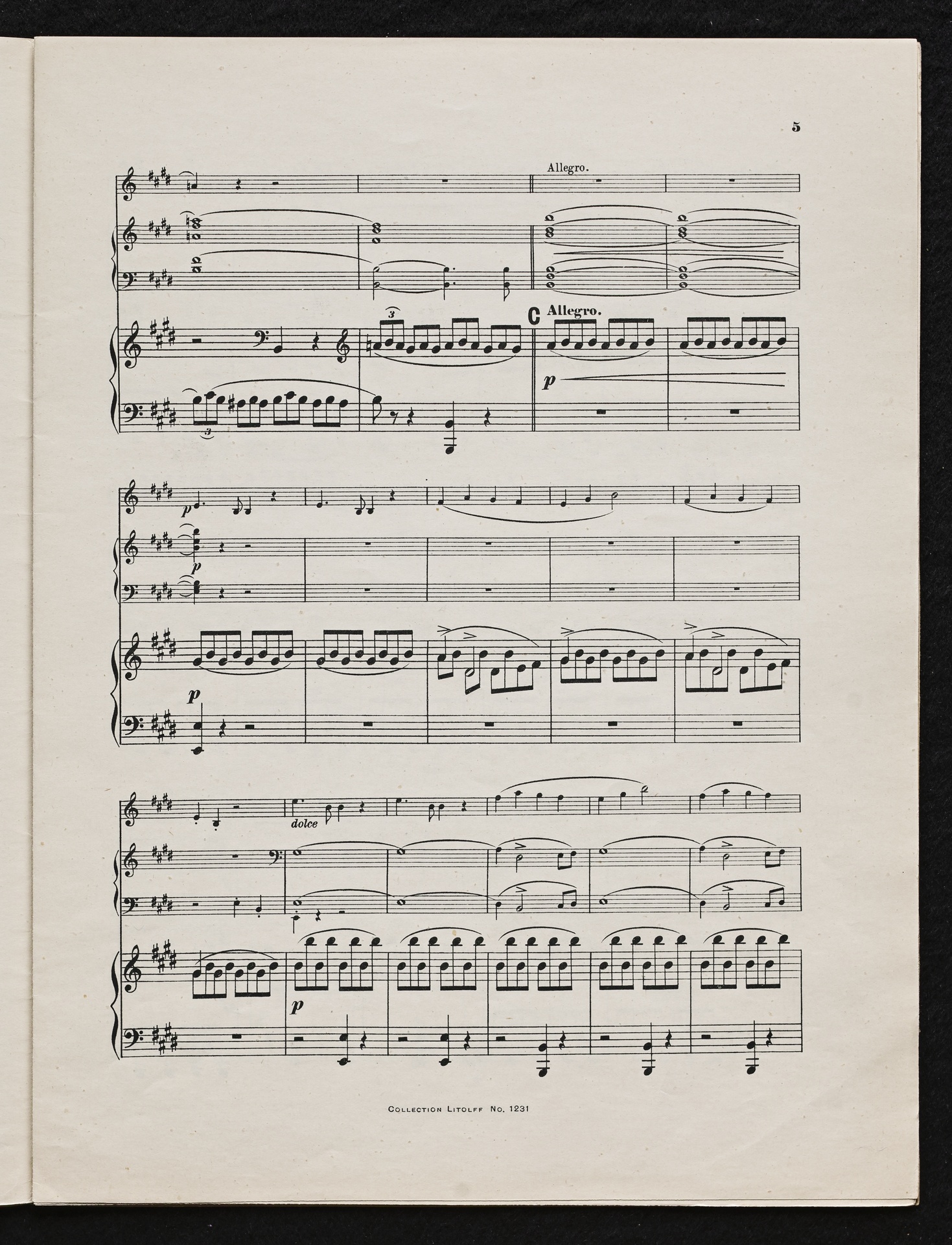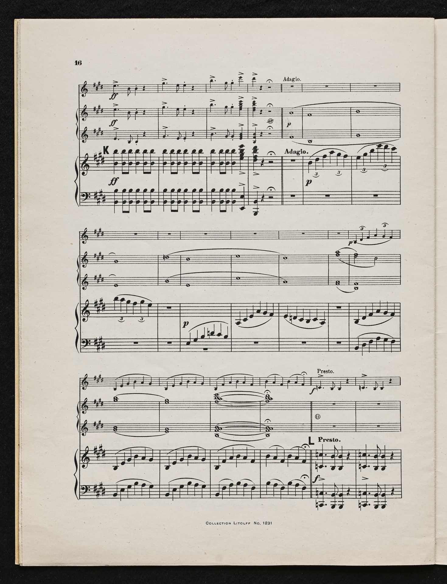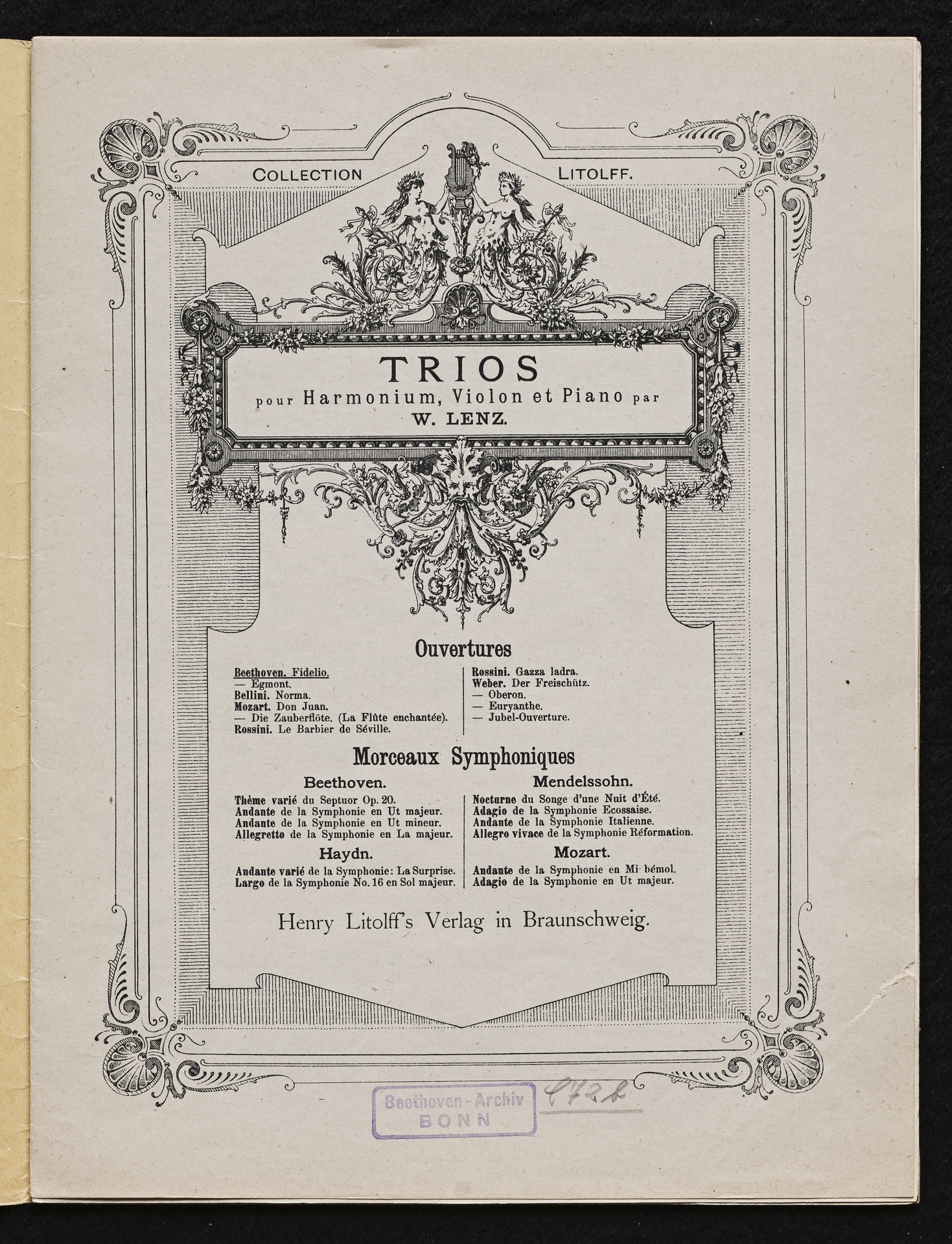 Ludwig van Beethoven, Fidelio op. 72, 3. Fassung 1814, Ouvertüre (E-Dur), Bearbeitung für Violine, Harmonium und Klavier von W. Lenz, Stimmen, Litolff, 1231