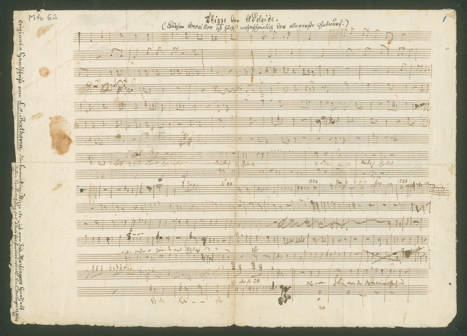 Ludwig van Beethoven, Skizzenblatt zu "Adelaide" op. 46 und Präludium zu einer Quartettfuge Hess 245, Autograph