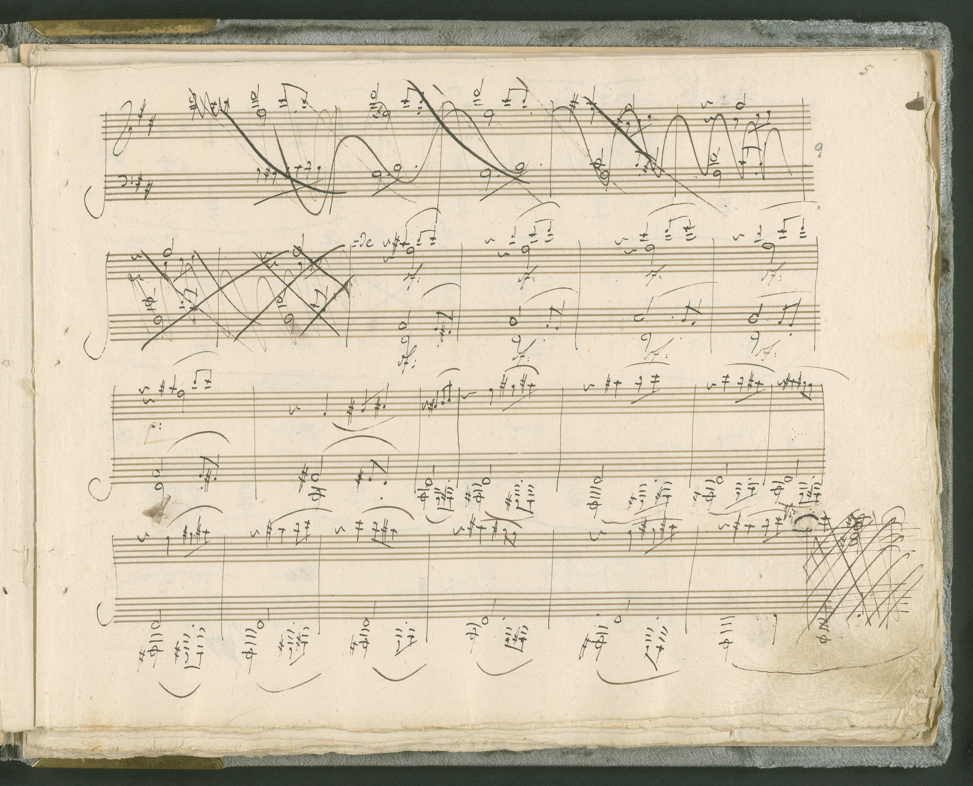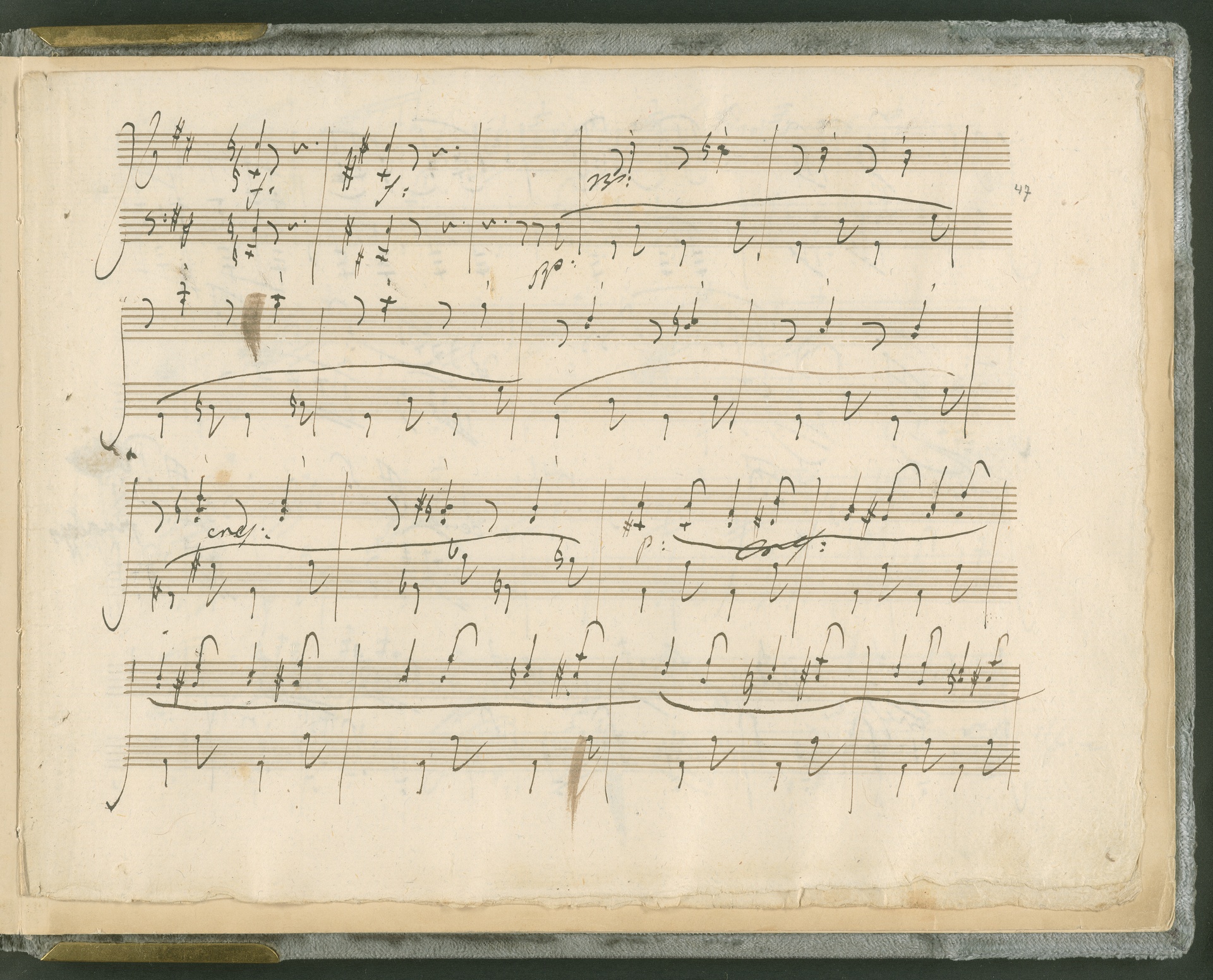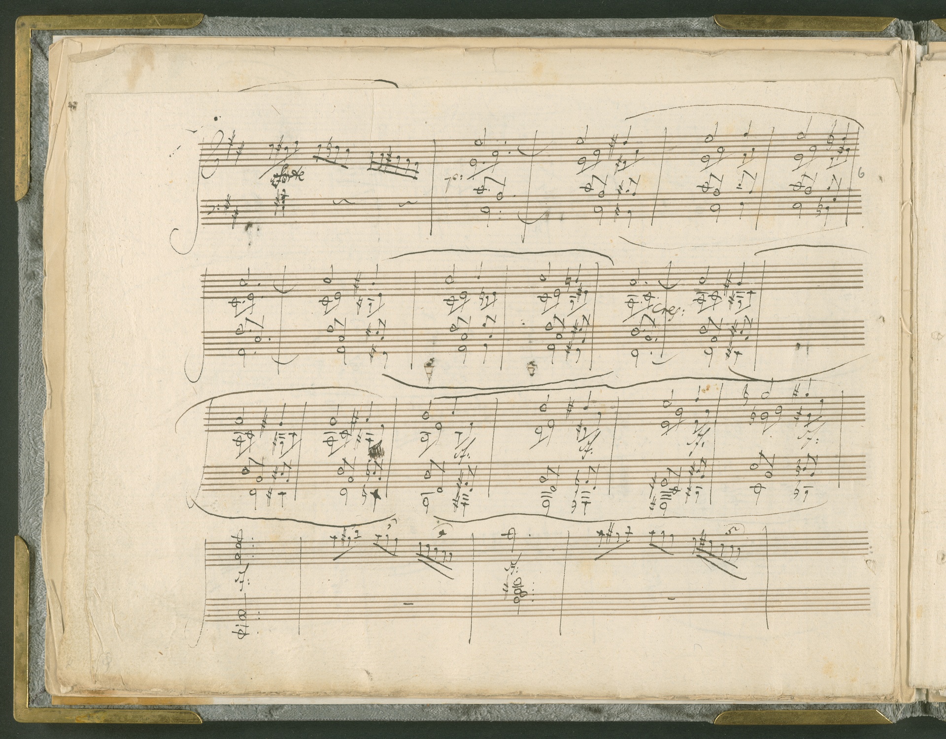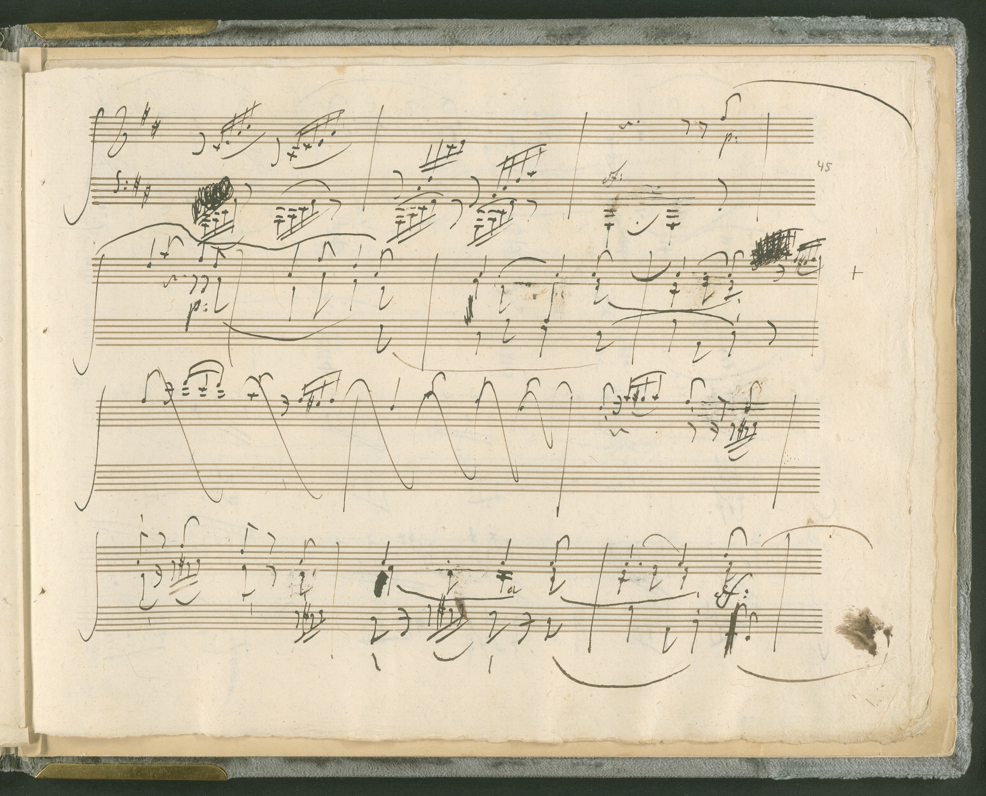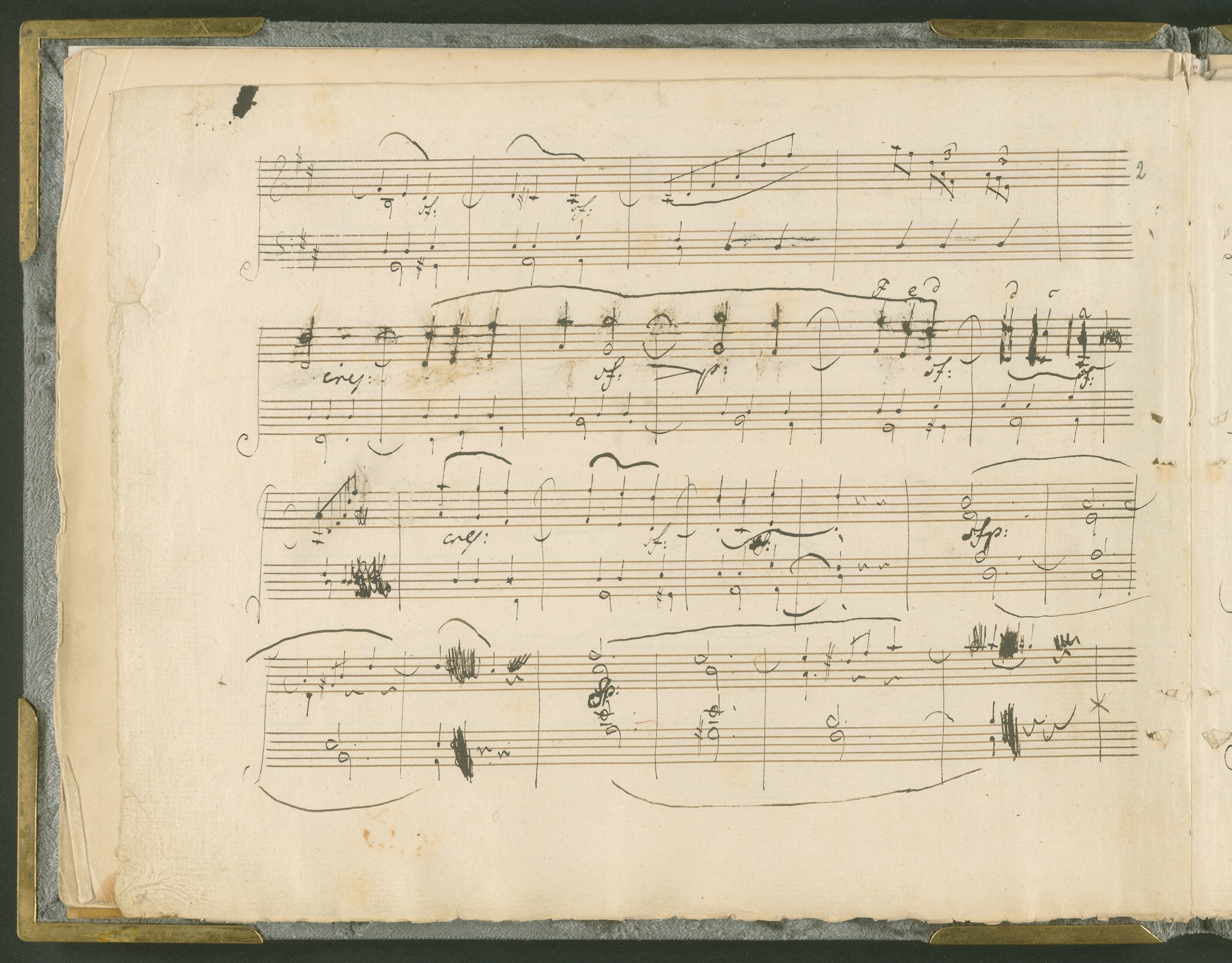 Abgebildet ist das Autograph der Klaviersonate op. 28, die Beethoven Joseph von Sonnenfels widmete. Sonnenfels (1732-1817) war Jurist, Lehrer, Aufklärer, Freimaurer und Schriftsteller, einer der führenden Köpfe der sozialen Reformen in Österreich (unter seiner Ägide wurde die Folter abgeschafft und die Polizeigewalt gezügelt). Sonnenfels war Inbegriff der aufklärerischen Ideen von Freiheit und Verehrung der Freien Künste - Prinzipien, denen Beethoven bekanntermaßen verpflichtet war. Ein Treffen des Komponisten mit Sonnenfels ist nicht nachweisbar, jedoch hatten sie gemeinsame Freunde, die ein Treffen ermöglicht haben können: Zum einen Freiherr van Swieten, ebenfalls ein Freund und Förderer der Künste. Möglicherweise hatte er Beethoven und Sonnenfels einander bei einem privaten Hauskonzert, derer er viele veranstaltete, vorgestellt. Zum anderen auch Johann Melchior von Birkenstock, Sonnenfels Schwager. In seinem Haus ging Beethoven eine Zeit lang ein und aus, weil die mit ihm befreundete Familie Brentano dort wohnte. Auch der Verlag, das Kunst- und Industrie-Comptoir, der die Sonate druckte, wird als möglicher Schnittpunkt der beiden Männer angeführt. Denkbar ist schließlich auch, daß Sonnenfels sogar Beethoven mit der Komposition der Klaviersonate beauftragte. Vielleicht war Beethoven jedoch auch schlicht beeindruckt von Sonnenfels Prinzipien und dessen Philosophie. (J.R.)