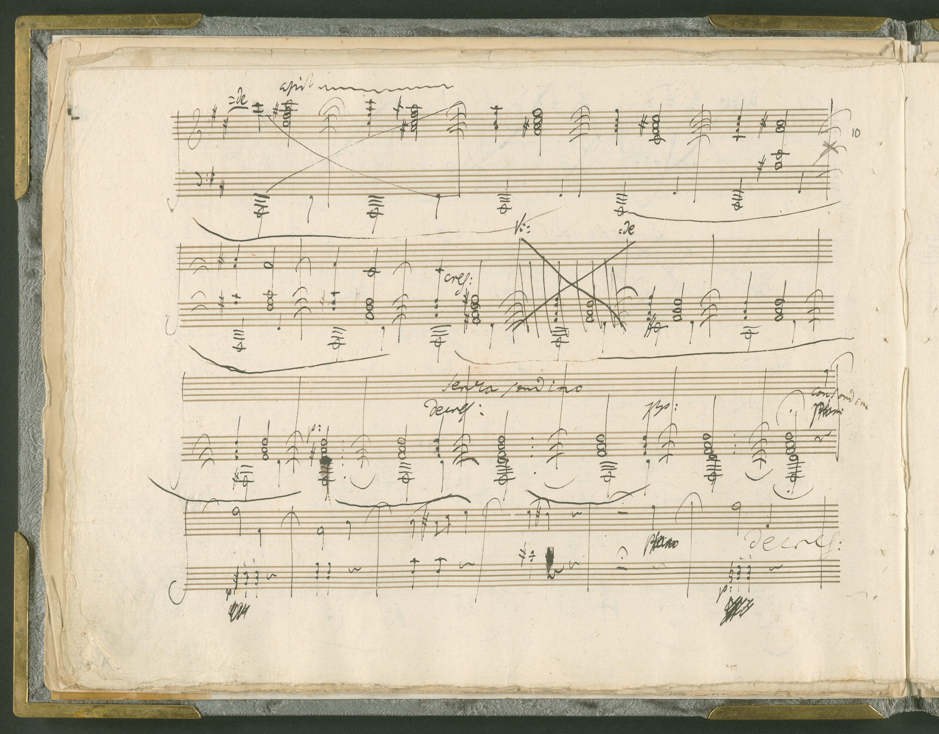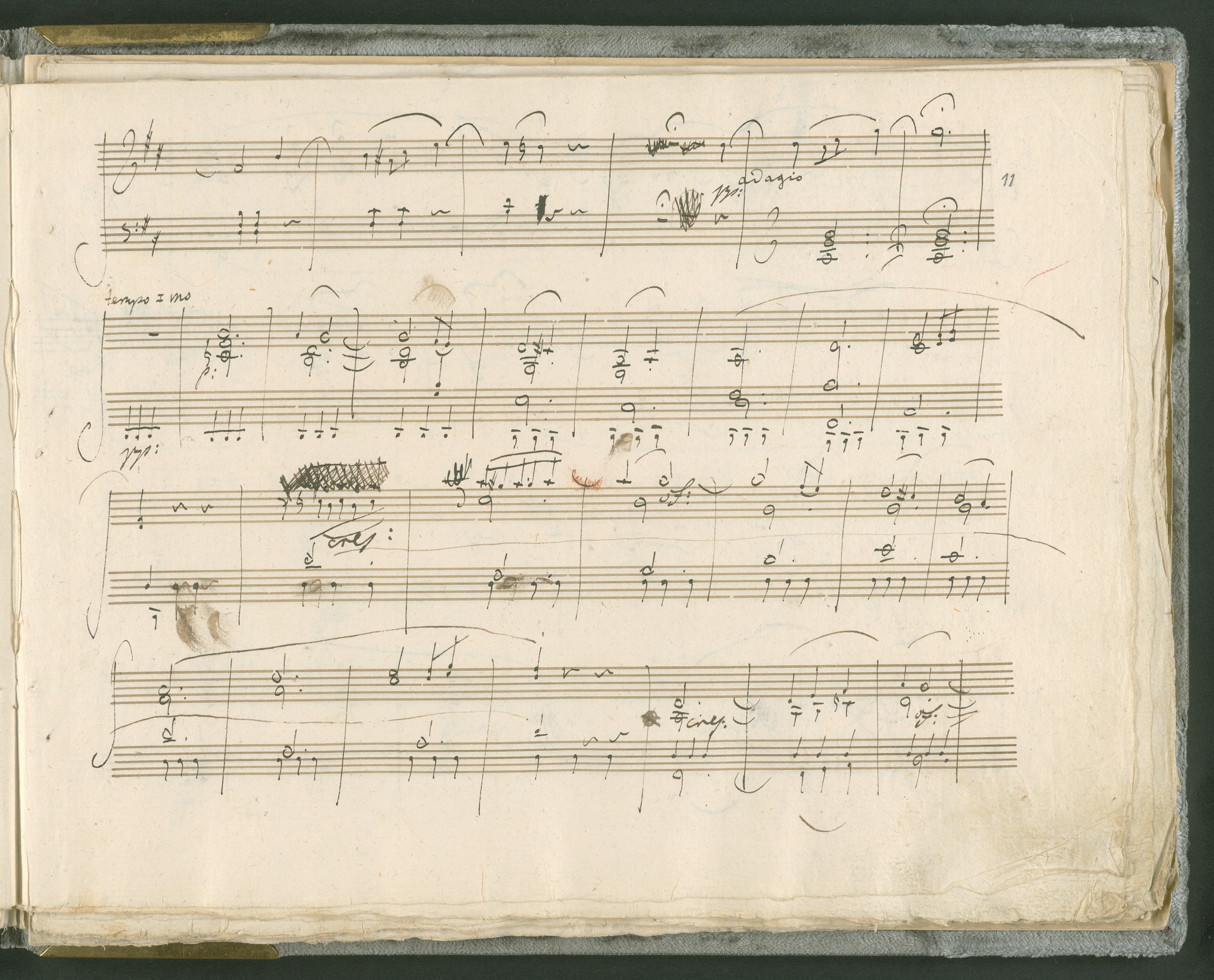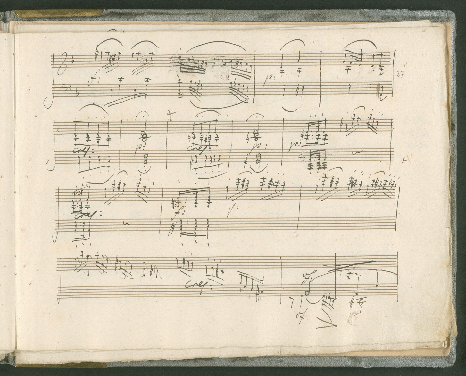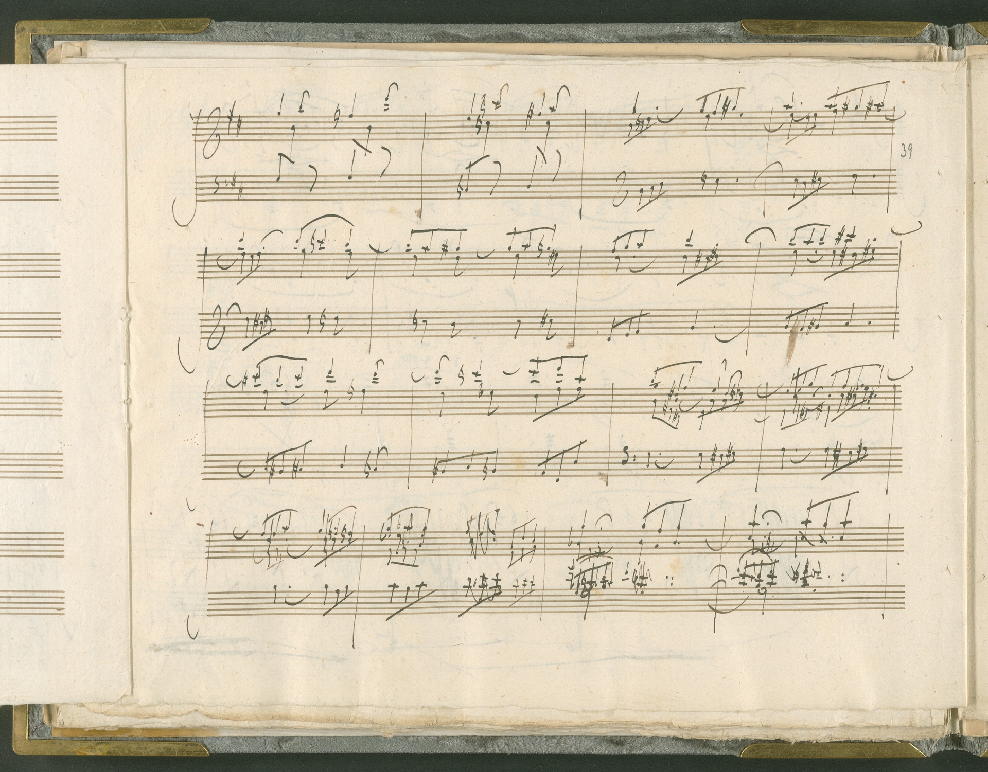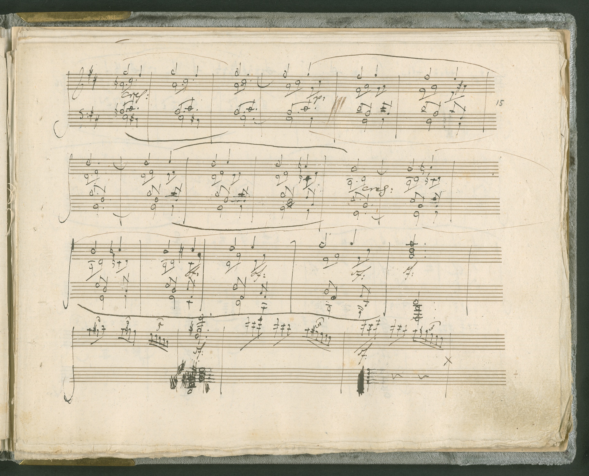 Abgebildet ist das Autograph der Klaviersonate op. 28, die Beethoven Joseph von Sonnenfels widmete. Sonnenfels (1732-1817) war Jurist, Lehrer, Aufklärer, Freimaurer und Schriftsteller, einer der führenden Köpfe der sozialen Reformen in Österreich (unter seiner Ägide wurde die Folter abgeschafft und die Polizeigewalt gezügelt). Sonnenfels war Inbegriff der aufklärerischen Ideen von Freiheit und Verehrung der Freien Künste - Prinzipien, denen Beethoven bekanntermaßen verpflichtet war. Ein Treffen des Komponisten mit Sonnenfels ist nicht nachweisbar, jedoch hatten sie gemeinsame Freunde, die ein Treffen ermöglicht haben können: Zum einen Freiherr van Swieten, ebenfalls ein Freund und Förderer der Künste. Möglicherweise hatte er Beethoven und Sonnenfels einander bei einem privaten Hauskonzert, derer er viele veranstaltete, vorgestellt. Zum anderen auch Johann Melchior von Birkenstock, Sonnenfels Schwager. In seinem Haus ging Beethoven eine Zeit lang ein und aus, weil die mit ihm befreundete Familie Brentano dort wohnte. Auch der Verlag, das Kunst- und Industrie-Comptoir, der die Sonate druckte, wird als möglicher Schnittpunkt der beiden Männer angeführt. Denkbar ist schließlich auch, daß Sonnenfels sogar Beethoven mit der Komposition der Klaviersonate beauftragte. Vielleicht war Beethoven jedoch auch schlicht beeindruckt von Sonnenfels Prinzipien und dessen Philosophie. (J.R.)