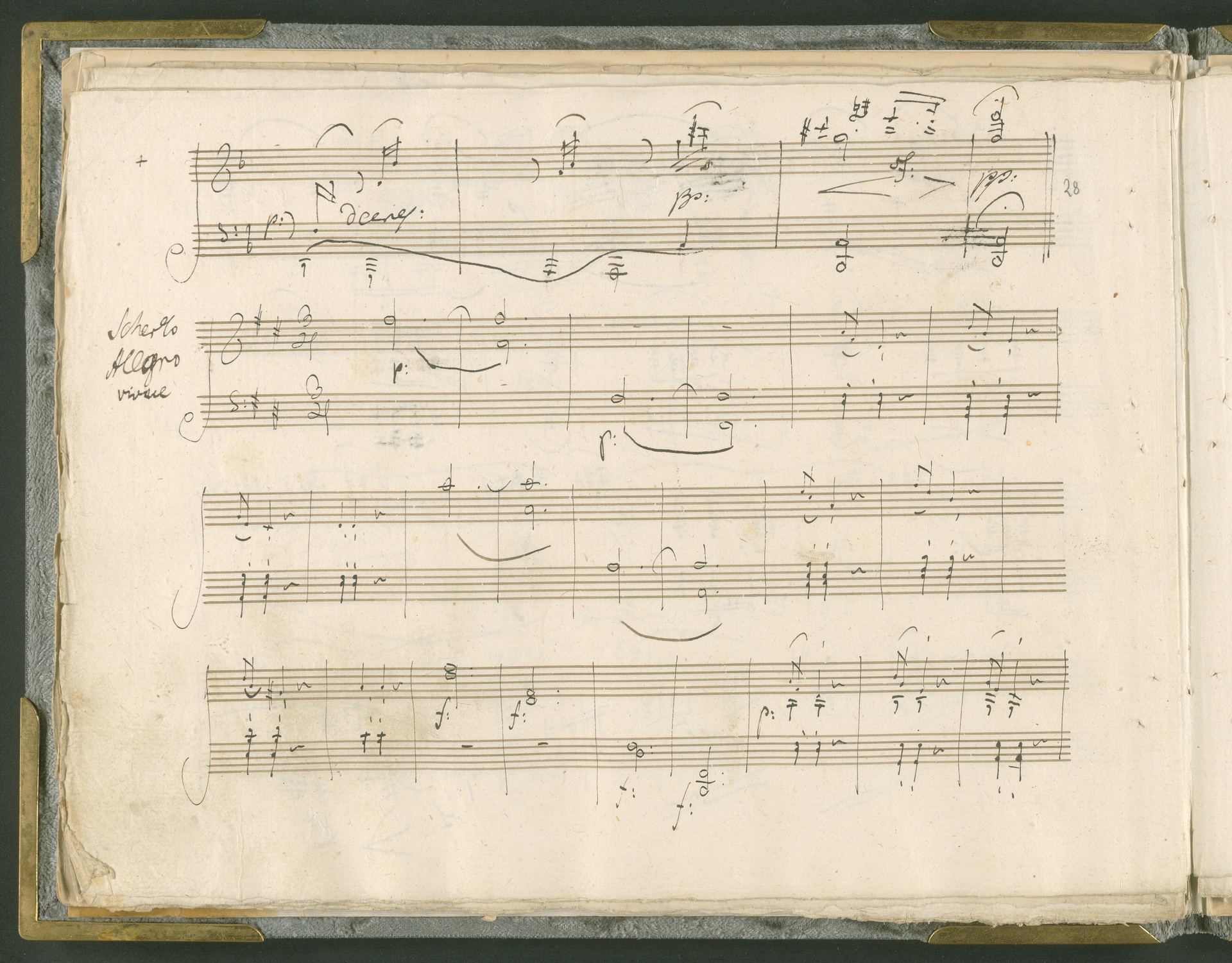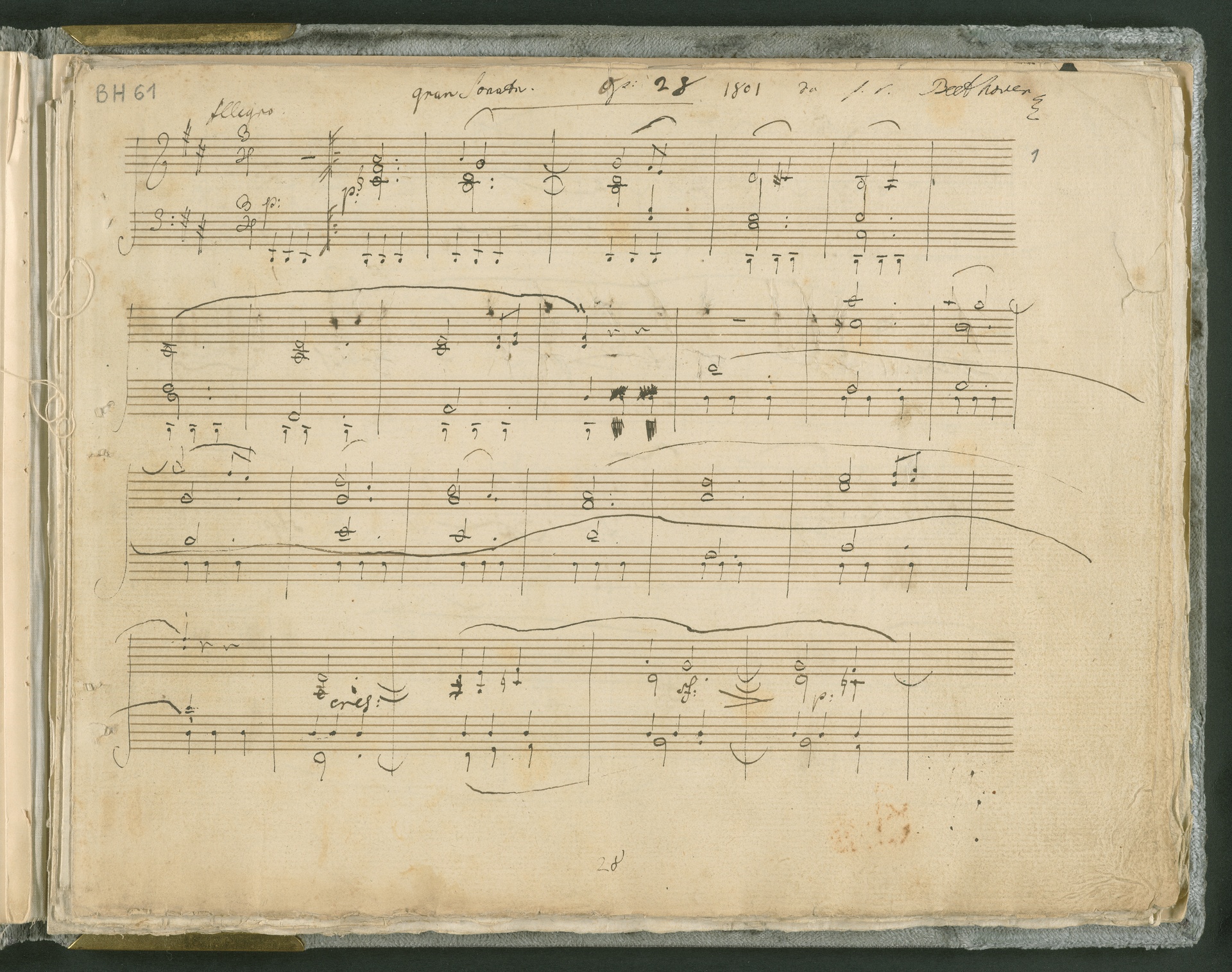 Ludwig van Beethoven, Sonate für Klavier (D-Dur) op. 28 und Musikalischer Scherz "Lob auf den dicken Schuppanzigh" WoO 100, Autograph