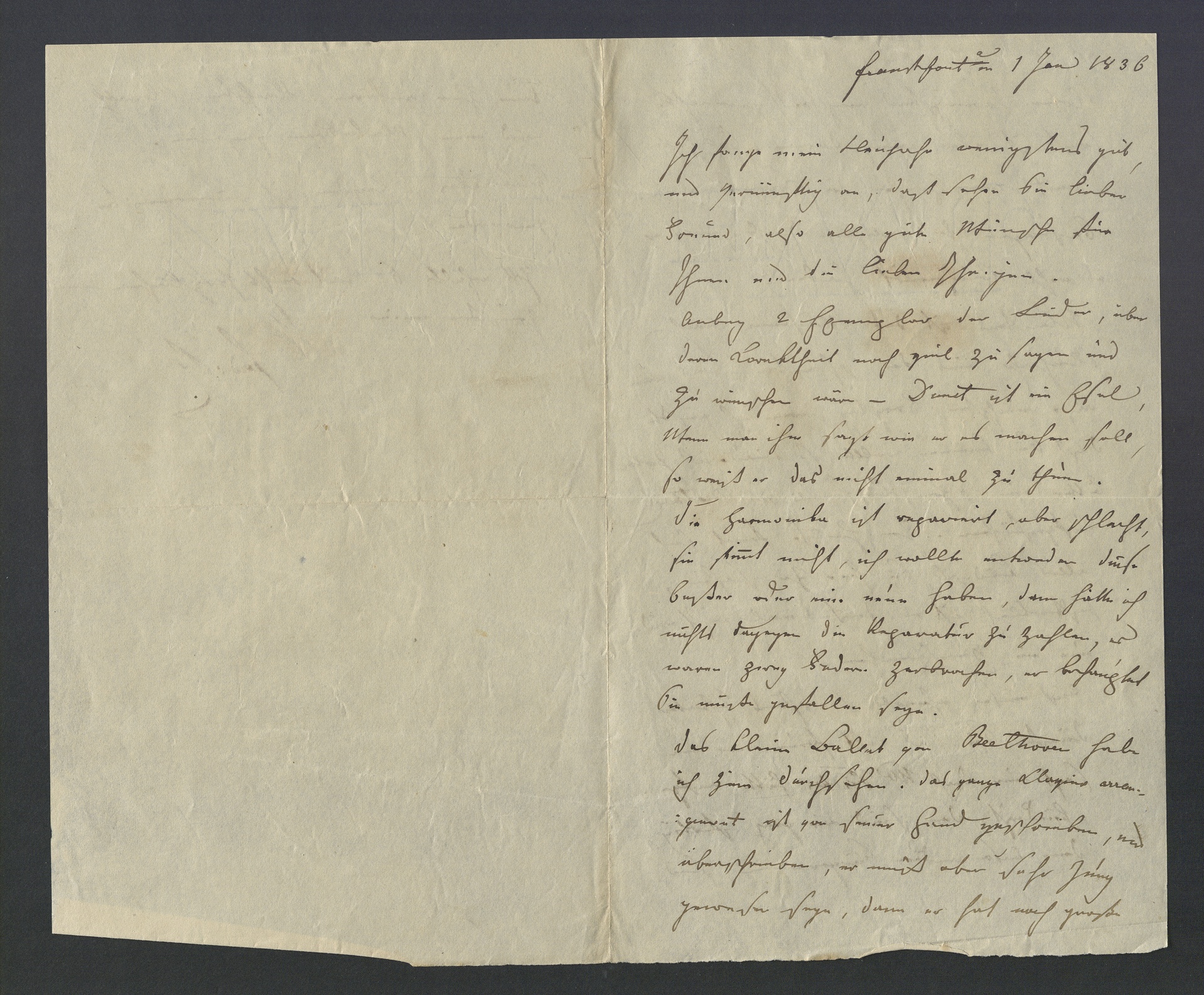 Ferdinand Ries, Brief an Franz Gerhard Wegeler in Koblenz, Frankfurt am Main, 1. Januar 1836, Autograph