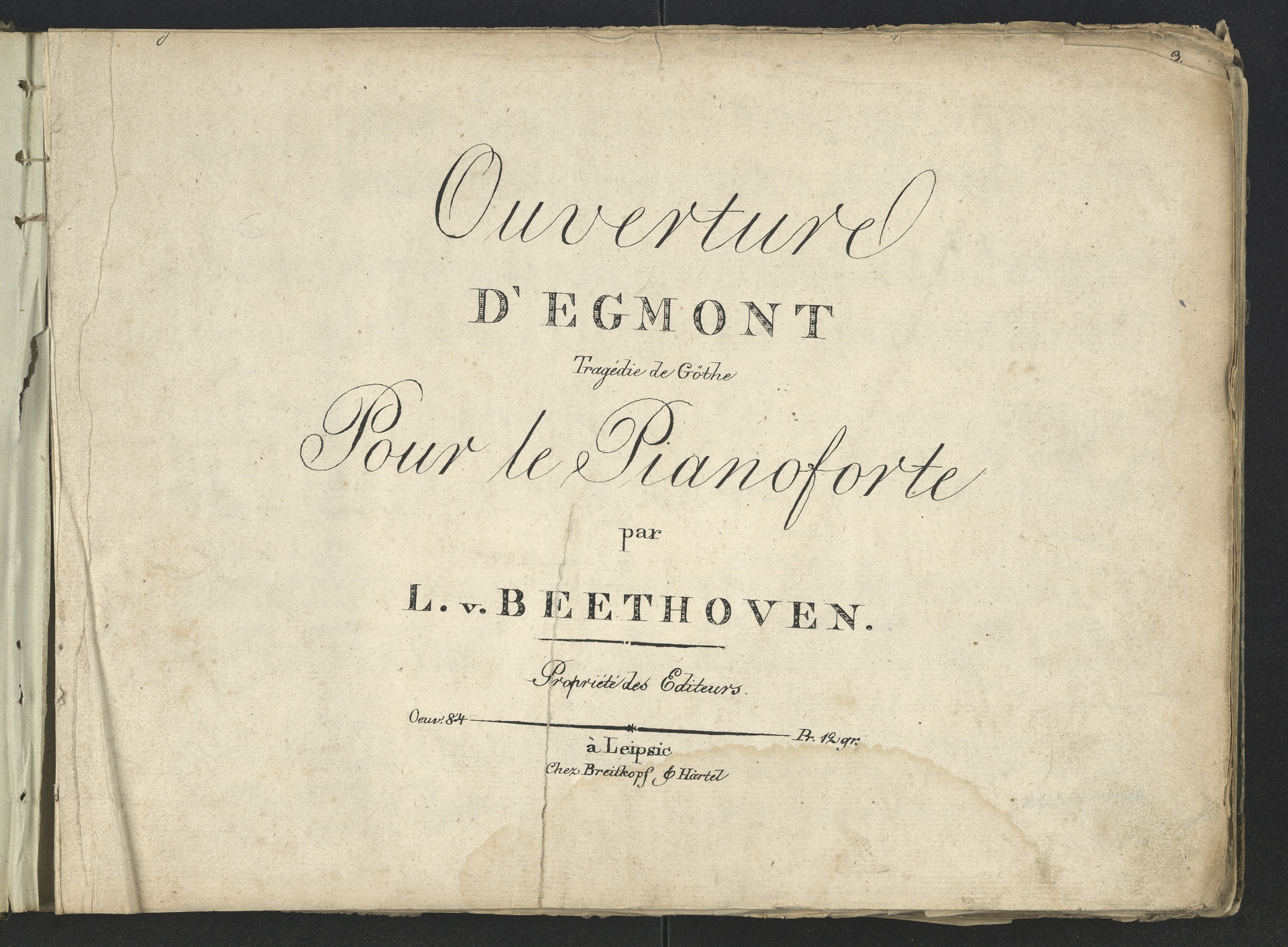 Ludwig van Beethoven, Musik zu Johann Wolfgang von Goethes Trauerspiel "Egmont" op. 84, Ouvertüre (f-Moll), Klavierauszug, Breitkopf und Härtel, 1590