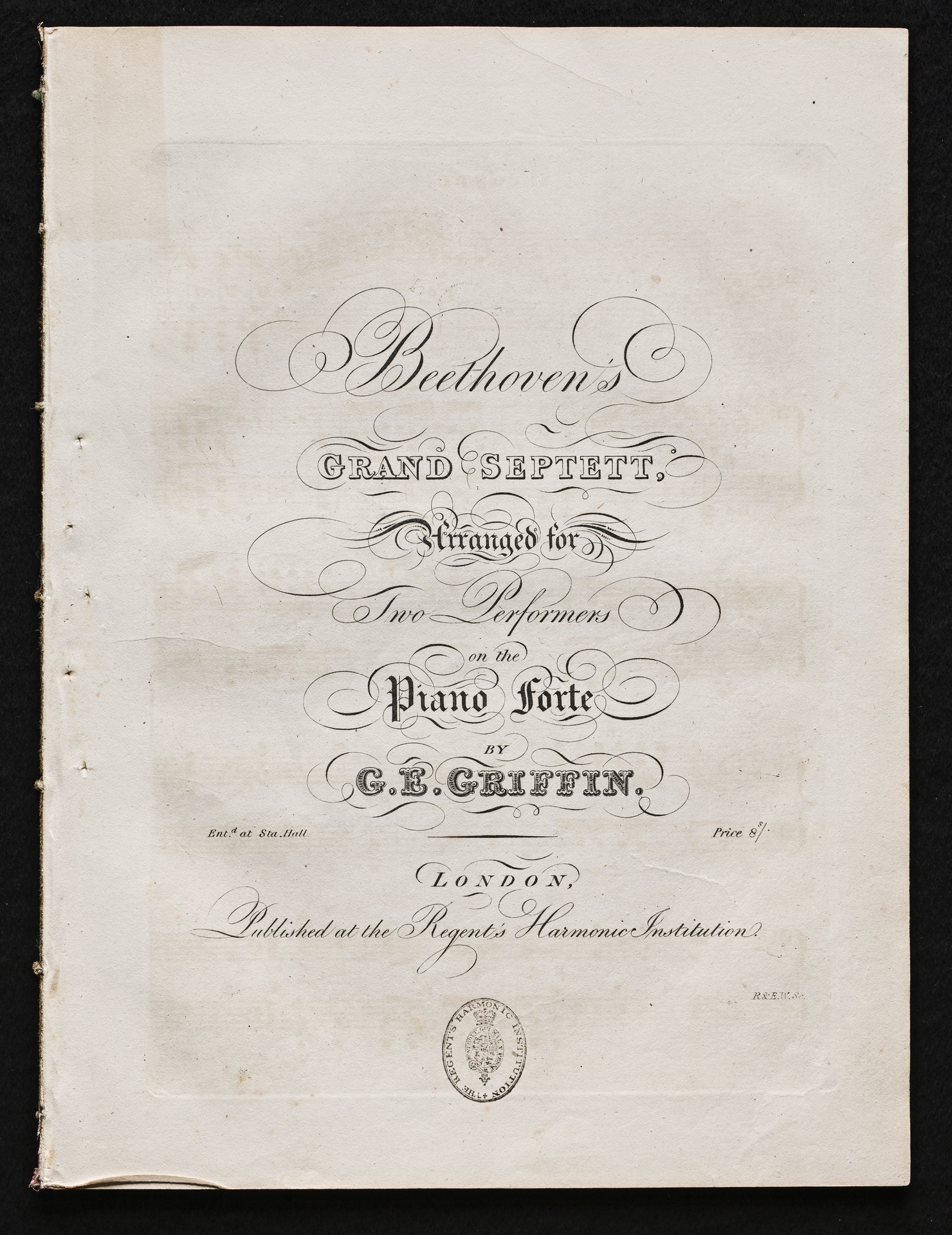 Ludwig van Beethoven, Septett für Violine, Viola, Klarinette, Horn, Fagott, Violoncello, Kontrabass (Es-Dur) op. 20, Bearbeitung für Klavier zu 4 Händen von George Eugene Griffin, Regent's Harmonic Institution, 130